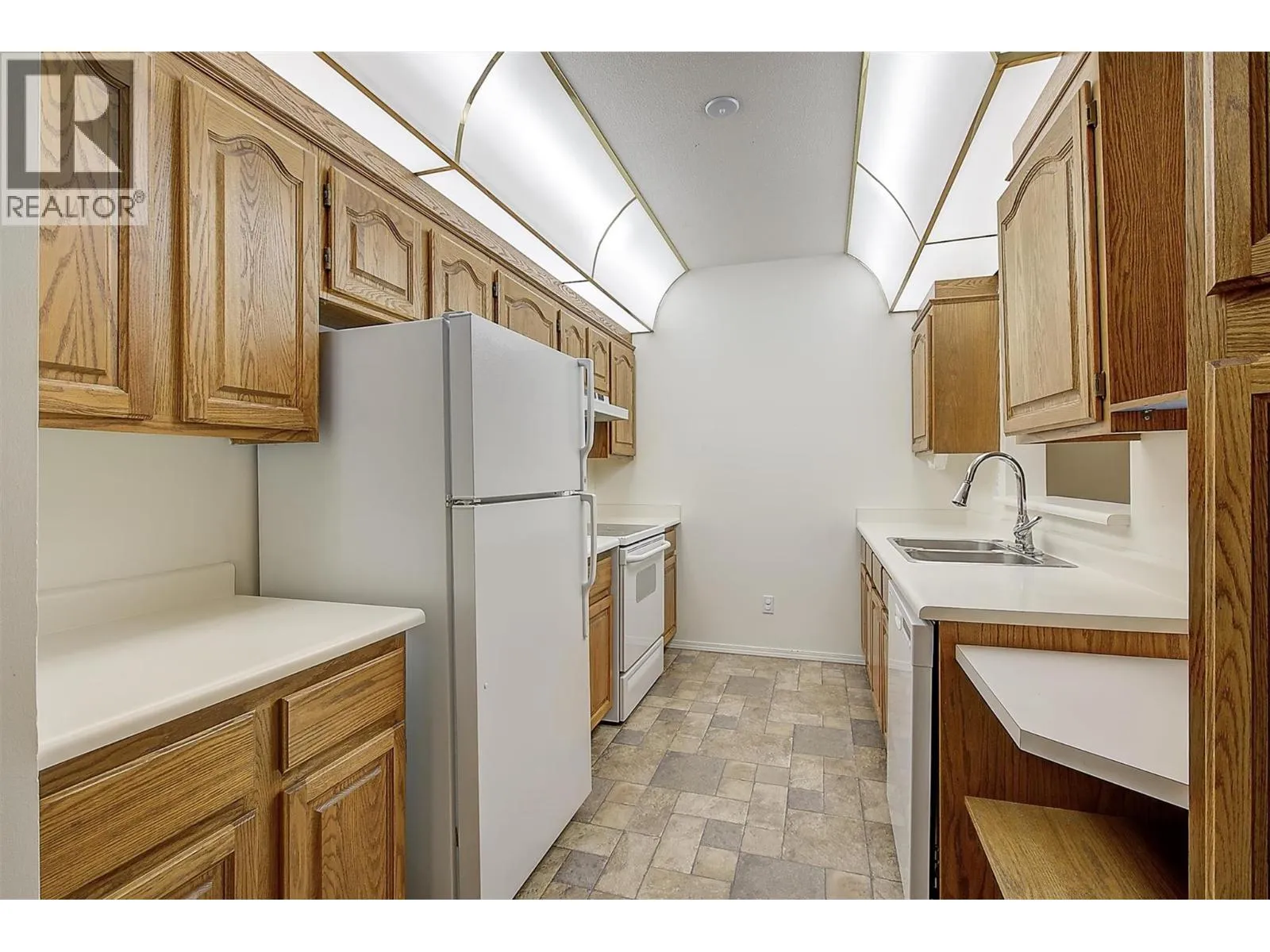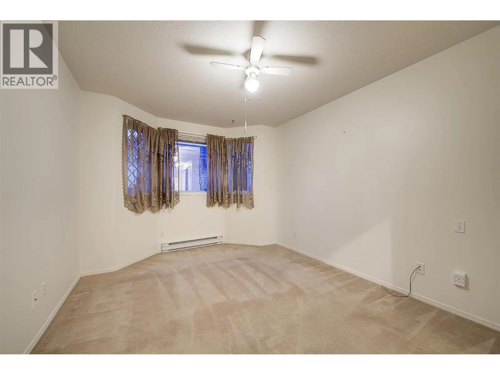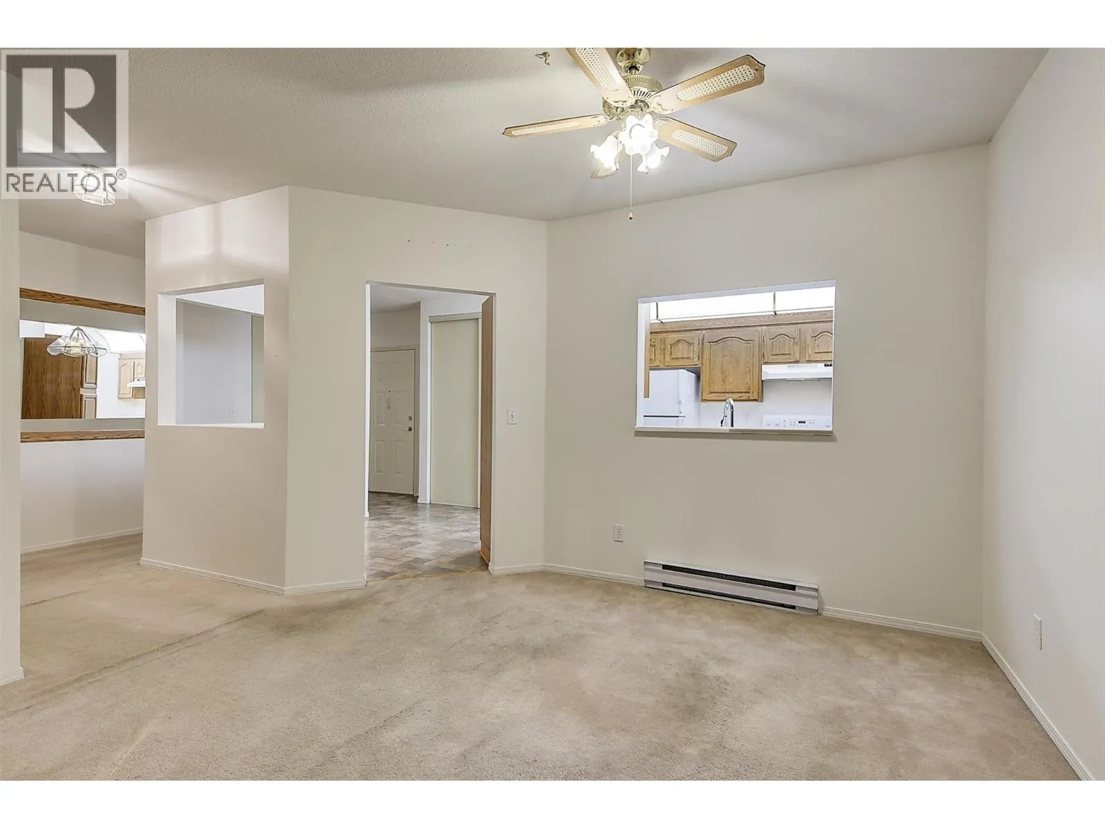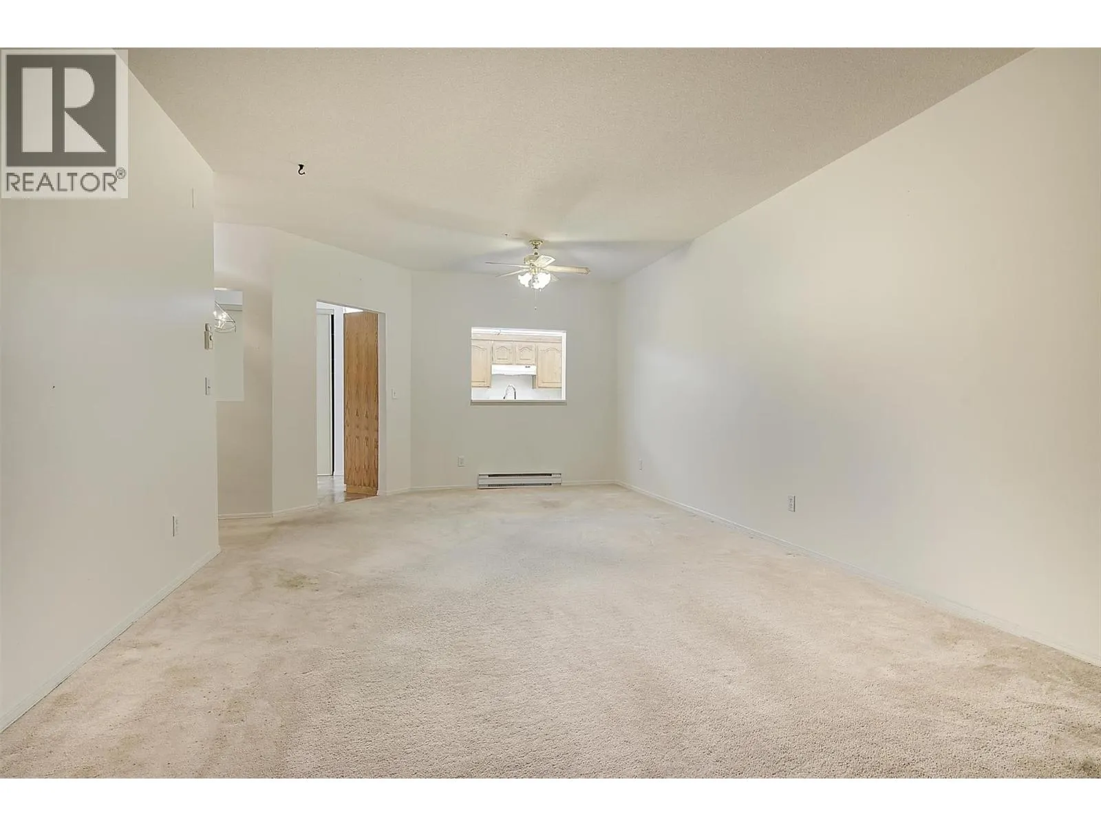 Gordon Park Housing Society east-facing, for the morning sun, ground-floor unit with 2 bedrooms & 2 bathrooms. Facing directly east this home is on the quiet side of the complex. Bring your renovation ideas, this home is currently vacant and has had long-term owners. The kitchen has a double-closet pantry, a side cupboard pantry, a dine-in area and a pass through to the dining room. The primary bedroom has double closets and a 4-piece ensuite bathroom. Carpet and linoleum flooring throughout, oak kitchen cabinets, good sized bedrooms, a large sunroom, a laundry/storage room, baseboard and AC wall unit. The main bathroom is a 3-piece with shower. There is one underground parking stall and a storage locker (on the same floor). The complex offers RV Parking (if available), a Gym, Library, Kitchen, Games Room, and Woodworking shop. An excellent yet quiet location that is a short distance to shops, parks, restaurants, medical services, public transport & Okanagan Lake. This is a 50+ complex with no rentals or pets please. A Buyer is purchasing a Membership of Gordon Park Housing Society and Exclusive Right to Occupy #106 â 1329 K.L.O. Road, Kelowna BC., and is subject to Board approval. Low property Taxes of $1,028.30 (minus grants the current owner paid close to $100 in 2024), and there is NO Property Transfer Tax. Please come and see this home in this friendly +50 complex. (id:27476)