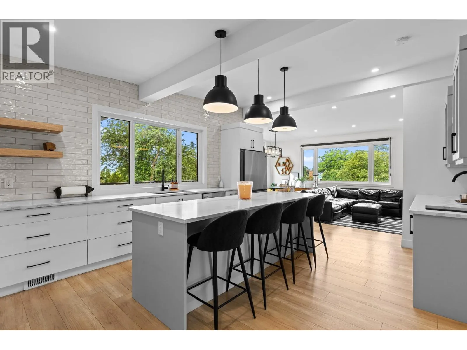 Centrally located in the heart of Glenmore, 1511 Lambert is a beautifully updated home offering modern style, comfort, and the full Okanagan lifestyle. Updated in 2021/2022, this home is bright, open, and perfect for entertaining. The main floor features a stunning open concept design with large windows and a gorgeous kitchen complete with a large island, quartz counters, and a wet bar. Ten foot bifold doors open to create seamless indoor outdoor living that leads to a private yard with a heated inground pool and all day sun, ideal for families and gatherings. The primary suite feels like a true spa with a walk in shower, freestanding tub, and dual vanity with his and her sinks. A second bedroom and full bathroom complete the main level. The lower level offers great flexibility with a rec room and bedroom for the main home plus a separate one bedroom one bathroom suite with its own entrance and laundry. This home has been extensively updated with newer windows, newer siding, newer deck and railings, and a newer hot water tank. The pool also features a new liner, cover, heater, filter, and Dolphin cleaner. The yard is fully fenced and the large driveway provides room for RV parking and extra vehicles. All of this is minutes from downtown, the airport, schools, parks, tennis courts, golf courses, shopping, and transit. A gem in one of Kelowna's most convenient and sought after neighbourhoods. Call to Schedule your showing today! (id:27476)