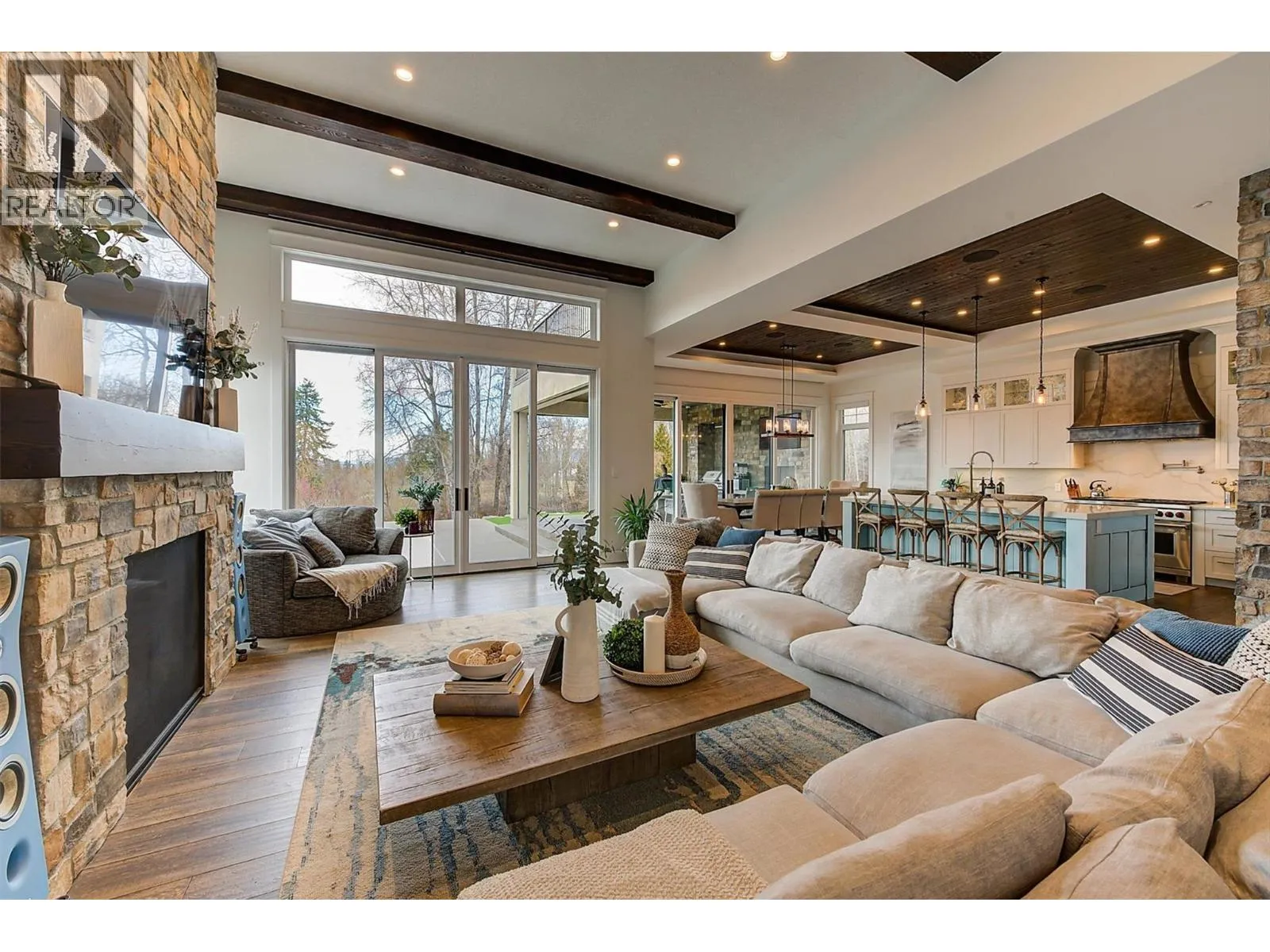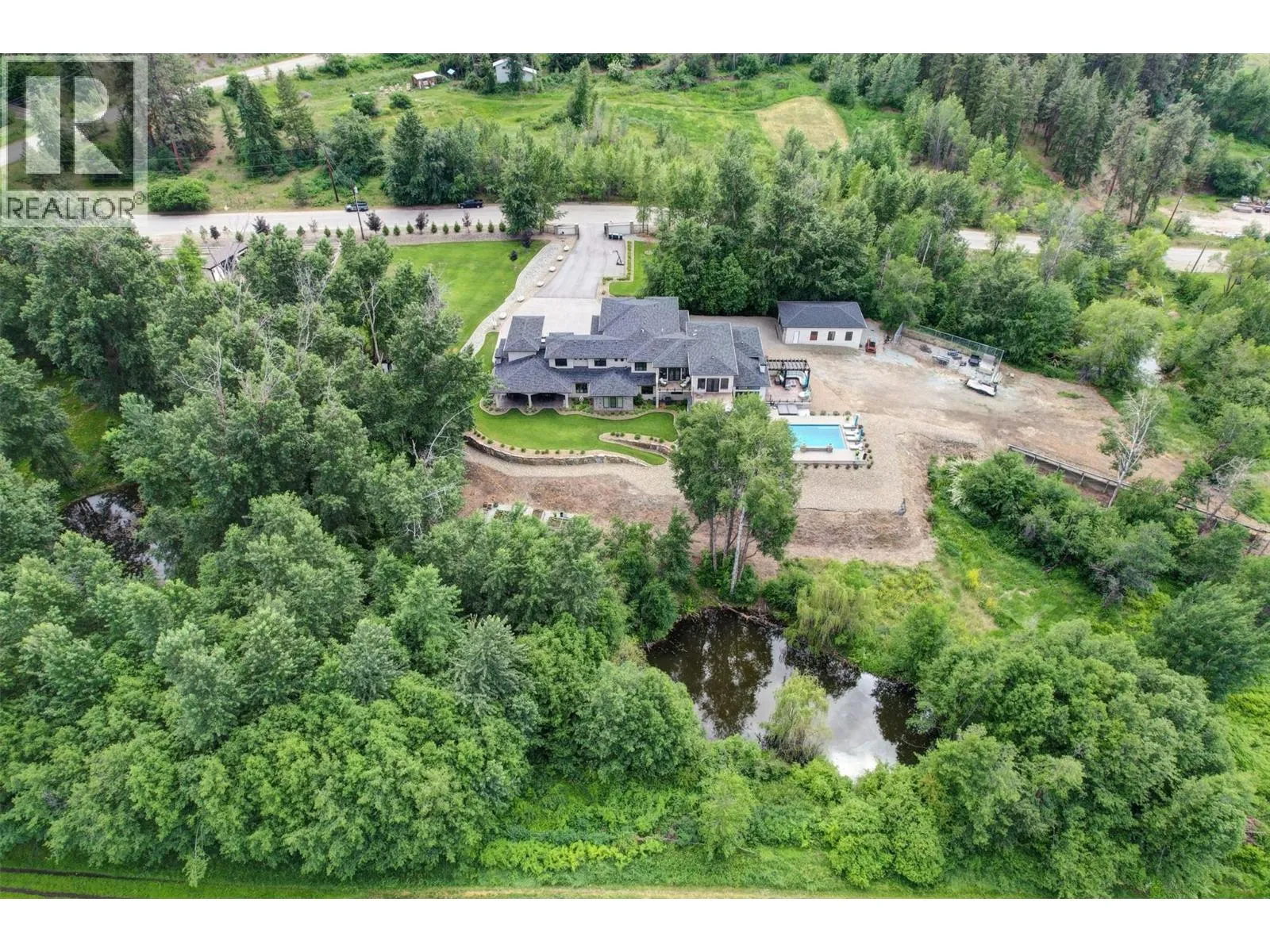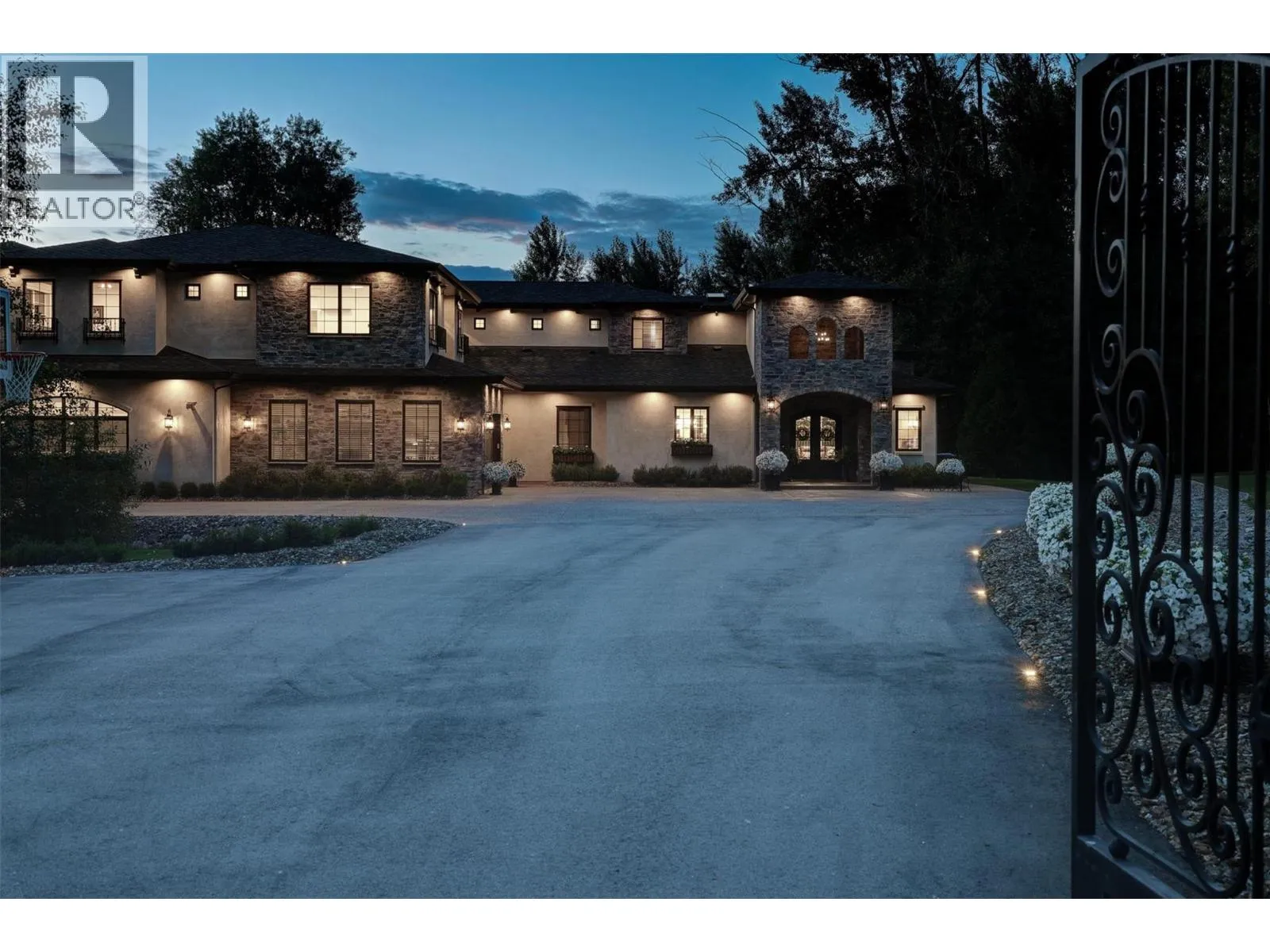 Picturesque estate in Southeast Kelowna resting on approximately 7+ pristine acres, with a Tuscan-inspired residence offering over 9000 sq. ft. of luxury living with 6 beds and 7 baths. This home has been uniquely divided into 2 separate living spaces, making it ideal for multi-generational living. Designed to be a private oasis for entertainment and tranquility, the property features a high-end concrete 20x40 saltwater pool with a Baja shelf, multiple patios for outdoor living with a fireplace & TV, an outdoor kitchen, a detached 25x40 shop, horse barn/paddock, raised garden boxes, and 3 ponds surrounding the yard, creating an exceptional ambiance. The main home has been beautifully designed for a large family; the upper level offers 4 beds, including a ""luxury hotel-like"" primary retreat with a spa-like ensuite. A custom media/home theatre and games room with deck access offer a high-end experience for the ""tech"" in the family. The separate accommodation offers quality finishes and a spacious design for the extended family/in-laws. This completely private space features 3 bedrooms, 3 bathrooms, an oversized garage, and a patio to enjoy the tranquility of the surrounding ponds. This is an excellent opportunity to enjoy a rural setting surrounded by vineyards, orchards, only minutes to Myra Canyon recreational park for hiking/biking, trail riding, and the City of Kelowna amenities. (id:27476)