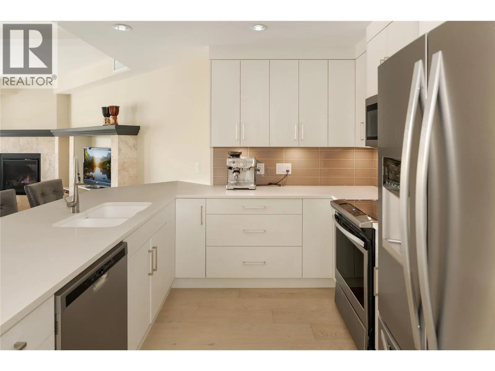 Welcome to a rare offering in one of the Lower Missionâs most coveted waterfront communities. This bright, spacious 2 bedroom + den residence delivers over 1,600 sq.ft. of refined single-level living paired with resort-style amenities and an unmatched location just steps from the lake, beaches, parks & the Greenway. The moment you walk in, the home feels calm, inviting, and exceptionally well cared forâan ideal match for a downsizer, professional couple or anyone seeking effortless luxury in a quiet, well-run building. The thoughtfully designed floor plan creates wonderful separation between the bedrooms while offering expansive open-concept living. Wide-plank vinyl flooring flows into the dining & living areas where large windows draw in natural light. A gas fireplace adds warmth while the covered deck extends your living outdoors. The king-sized primary bedroom is a true retreat with great natural light, ample room for additional furnishings, a walk-in closet, and a well-appointed ensuite. The second bedroom is spacious with large windows, and the versatile den works beautifully as a home office, hobby room, or quiet flex space. Residents enjoy an outdoor pool, hot tub, putting green, fitness centre, community room, library, gathering spaces, and beautifully kept common areas. Just minutes from schools, shops, wineries, and the lakeâthis home offers a rare balance of elevated living & daily convenience in one of Kelownaâs most desirable settings. (id:27476)