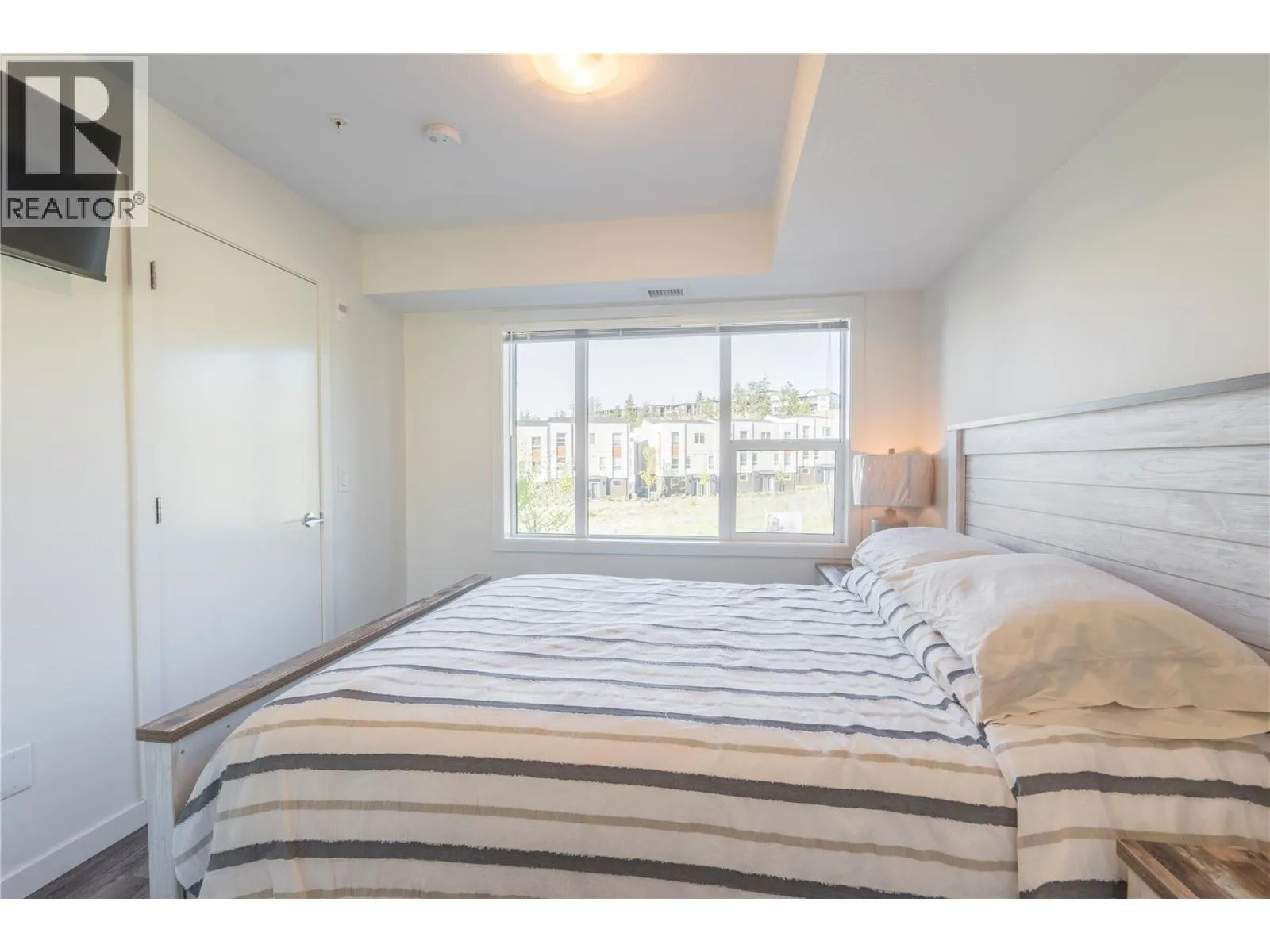 Fantastic opportunity to own this bright and spacious 2-bedroom, 2-bathroom corner unit in U Eight, the newest development near UBCO! This desirable end unit features two bedrooms, both with windows, offering great natural light and airflow throughout. Located on the second floor, it benefits from extra windows and excellent natural light. Built in 2019, the home includes stainless steel kitchen appliances, durable vinyl plank flooring, energy-efficient heating and cooling, in-suite washer and dryer, one designated parking stall, and a generous outdoor patio. Just a short walk to the UBCO campus, this is an ideal property for university living, perfect for your child to live in or to rent out to students. The building offers study rooms on multiple levels exclusively for residents. Public transit is just steps away, providing direct access to UBCO. Still under the 2-5-10 home warranty, this is a smart and secure investment in one of Kelownaâs most sought-after student living communities. (id:27476)
