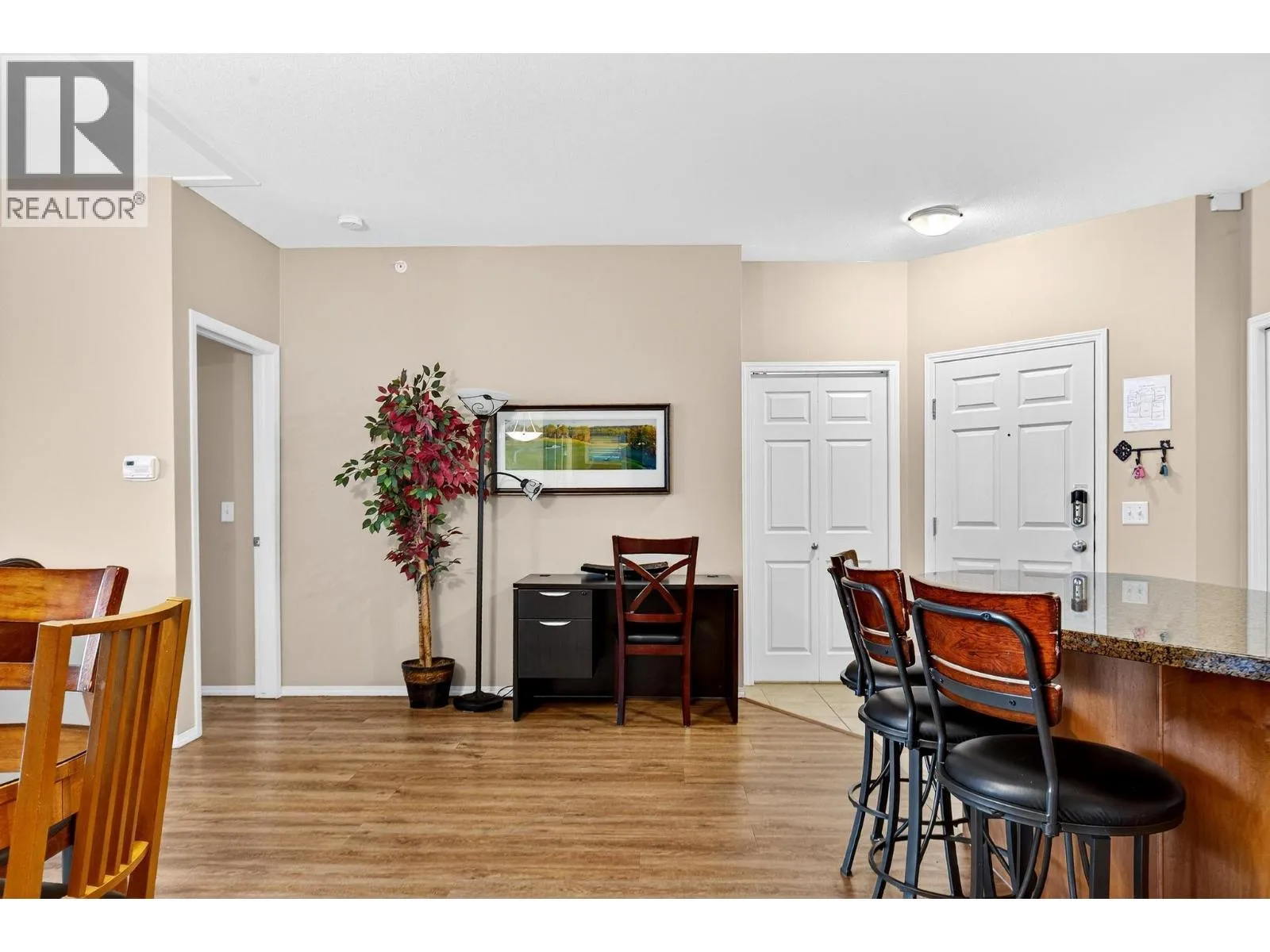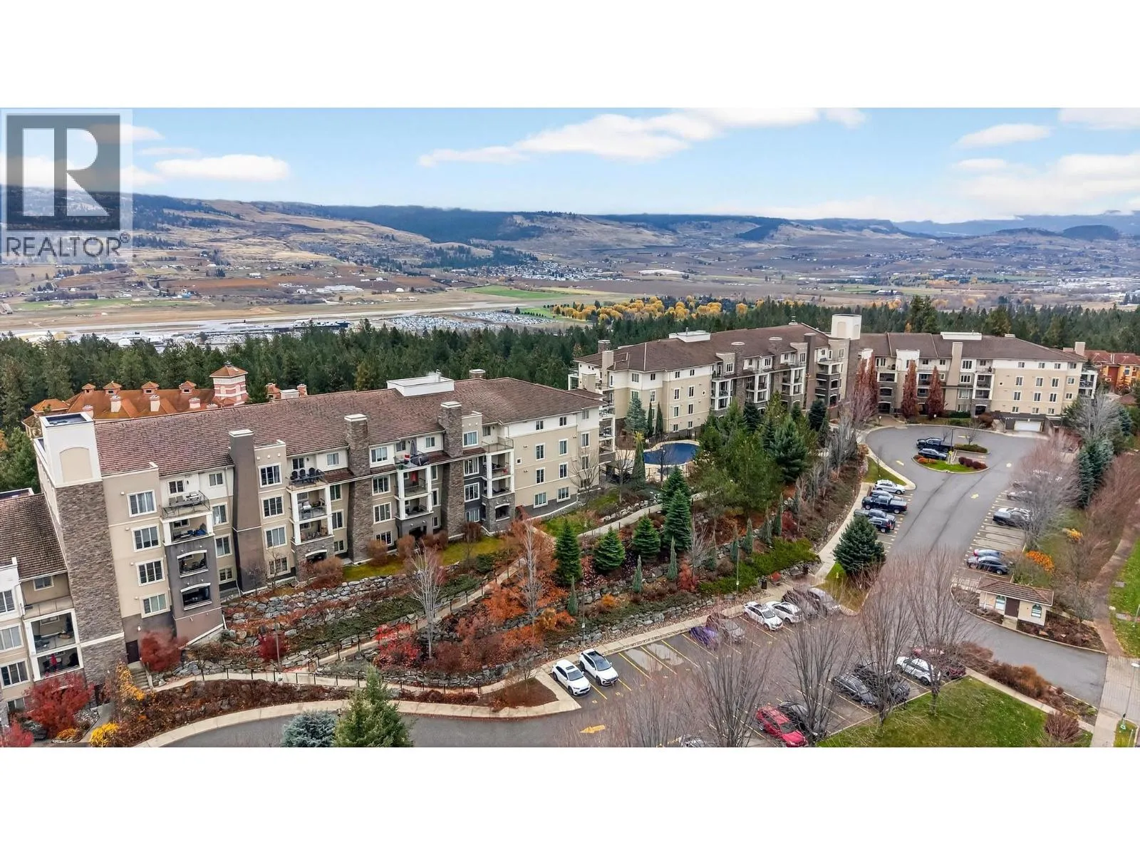 Welcome to Pinnacle Pointe! Spacious and rarely available top floor three bedroom two bath corner unit offering 1,277 sq. ft. of well planned living space. This bright home features an open concept kitchen with upgraded cabinetry, granite countertops, and an eat in bar, along with a cozy corner fireplace, central heating and cooling that is included in the strata fees, and gorgeous mountain views throughout. The primary bedroom includes its own ensuite, and all three bedrooms are thoughtfully separated by the large great room layout. Enjoy an expansive deck with sweeping views, ideal for relaxing or entertaining. The unit comes fully furnished, complete with all appliances, furnishings, accessories, and a convenient storage room, making it completely turnkey. Pinnacle Pointe sits on two championship golf courses, just minutes from UBCO which makes it perfect for students, and only moments from the Kelowna International Airport. Residents enjoy a pool, hot tub, fitness centre, and secure underground parking. A great investment property or an excellent choice for a first time buyer. (id:27476)
