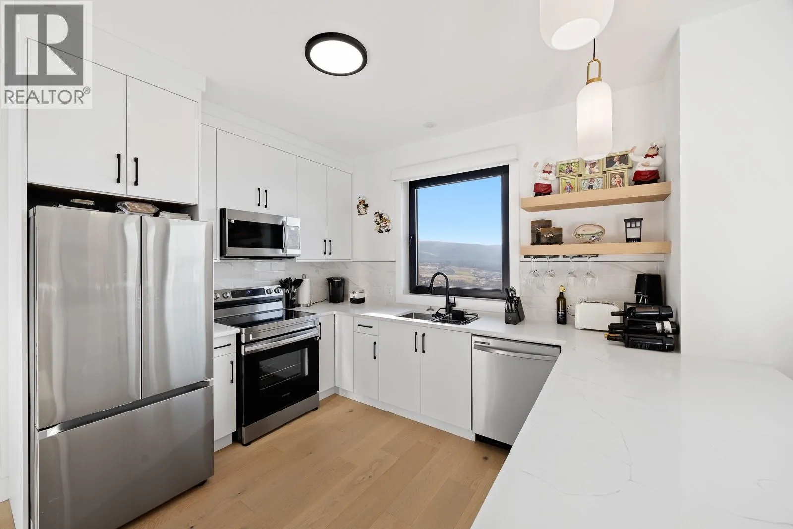 Better Than New! Step into this modern, custom-built masterpiece, meticulously designed for those who appreciate living at the highest level. Expansive south-facing windows illuminate the 30-foot ceilings, showcasing a chefâs kitchen with an oversized island that flows effortlessly onto the spacious covered patio, perfect for taking in the panoramic views. This residence seamlessly blends grand scale with exquisite finishes, including engineered hardwood, custom cabinetry, high-end appliances, & a kitchenette in the bright pantry with access to an additional cooking patio. Outdoors, enjoy low-maintenance syn lawn with a covered swim spa & hot tub, complemented by an outdoor shower, ready for outdoor BBQ kitchen dreams. Live in style on the lower level with a sleek wet bar & media room, plus large sliding doors that create a seamless connection to the outdoors. The triple car garage offers extended ceilings, epoxy floors, built-in storage, with a dog wash to elevate functionality. Upstairs, a private 1-bed legal suite with a full kitchen, patio, and stair lift offers versatile accommodation for your family, guests, or rental potential. Sophisticated tech, including various media zones & exterior cameras, helps to ensure your comfort. From expansive entertaining areas to thoughtfully designed family amenities, this home epitomizes elevated living with unparalleled Black Mountain prestige, offering a rare combination of scale, functionality & refined sophistication. GST paid (id:27476)