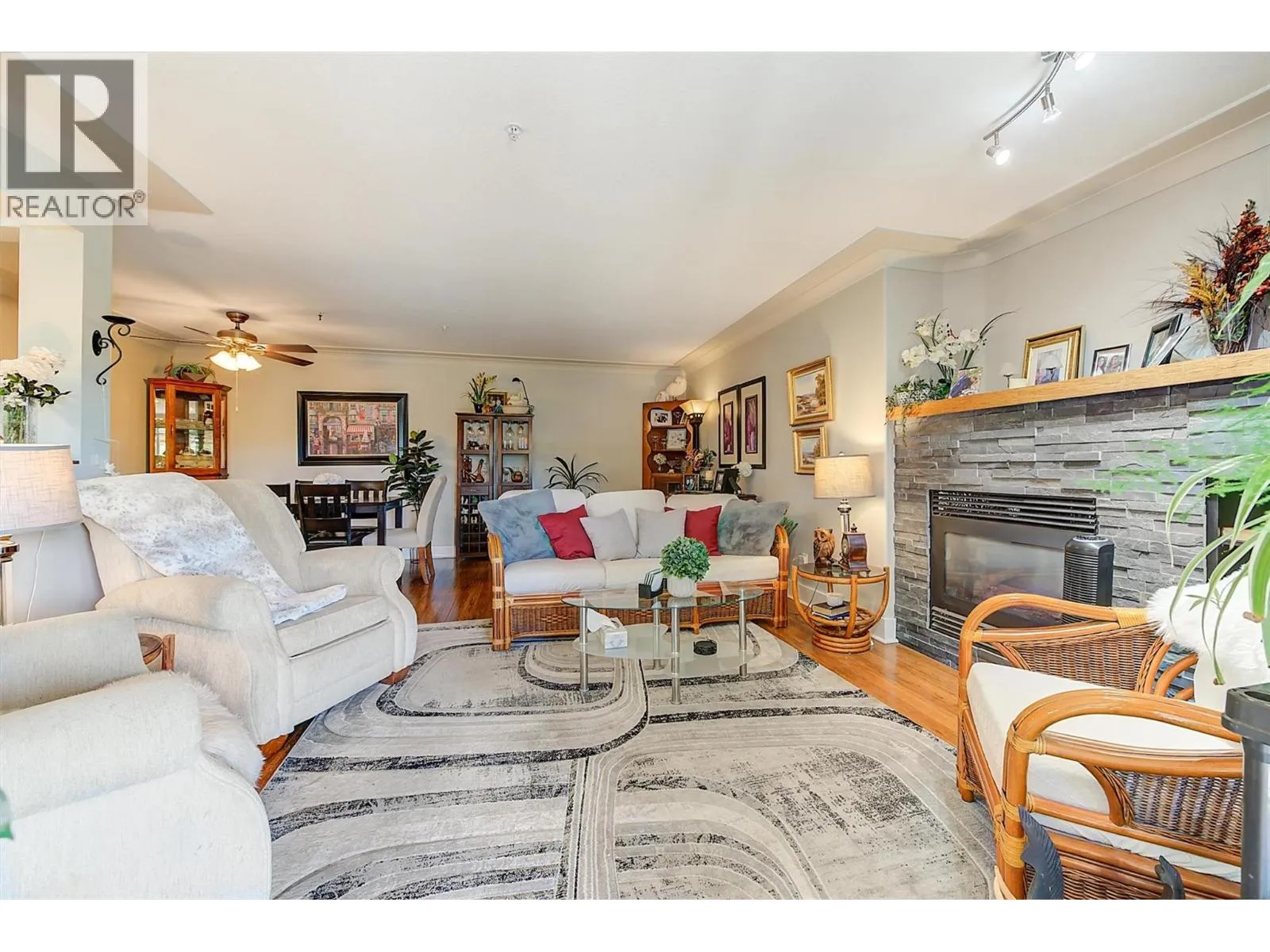 Welcome to your dream homeâa spacious 2-bedroom, 2-bathroom condo designed for comfort, convenience, and a vibrant lifestyle. Perfectly tailored for those seeking an easy, low-maintenance living experience, this home combines modern elegance with a warm, inviting ambiance. Step into an open concept living space that feels both expansive and cozy, featuring gleaming bamboo floors and stylish tile throughout. The heart of the home is the luxurious living room, anchored by a stunning gas fireplace that creates a welcoming atmosphere. The kitchen is a chefâs delight, boasting stainless steel appliances, sleek quartz countertops, an undermount sink, and a versatile mobile prep island. The master suite is a true retreat, offering generous space, a massive walk-in closet, and a private 4-piece ensuite for ultimate comfort and convenience. Step outside to your massive private wrap-around deck, a serene oasis perfect for morning coffee. Located in a resort-like complex, this home offers an unparalleled lifestyle. Enjoy the heated pool, vibrant clubhouse, hobby room, gym, and convenient guest suite for visiting family or friends. The complex is centrally located, just steps from shopping, restaurants, and essential amenities, yet feels like a private retreat. A spacious storage locker on the same floor adds extra convenience, and the homeâs thoughtful layout ensures ease of movement for all. Schedule your private tour today and discover why this is the perfect place to call home. (id:27476)