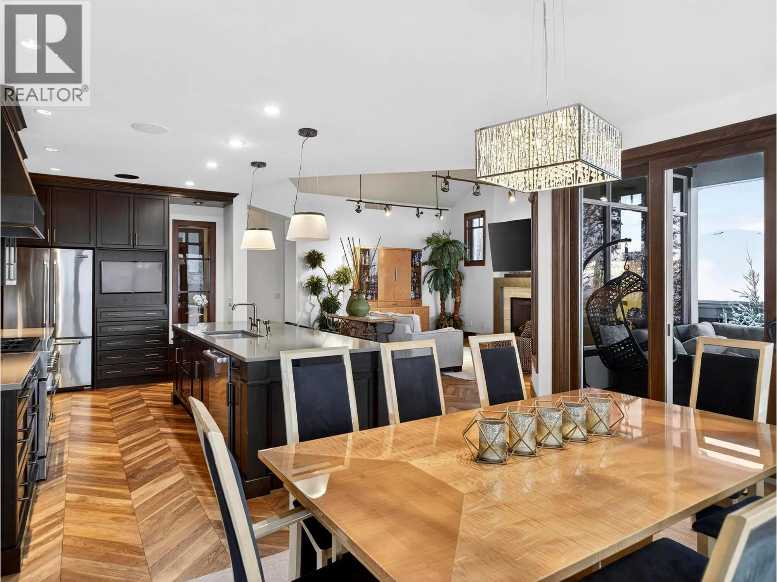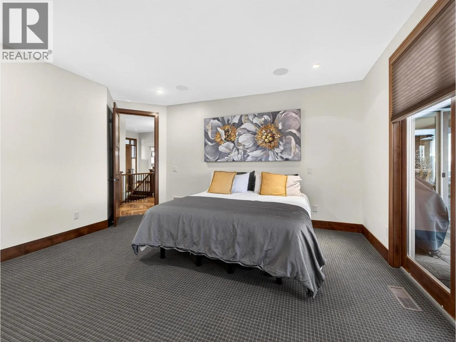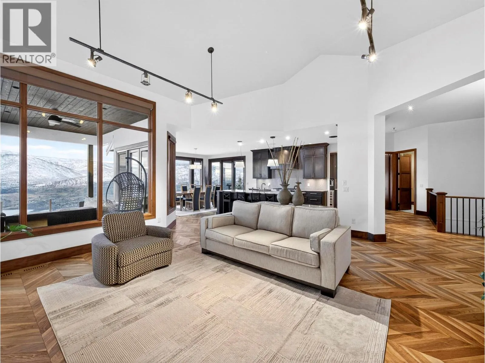 This stunning 4 Bedroom + Den residence blends luxury with timeless modern design and unobstructed panoramic lake views. Gorgeous herringbone hardwood floors, soaring ceilings, and a cozy gas fireplace create an inviting yet elevated atmosphere in the great room, enhanced by expansive windows that frame the surrounding scenery. The open-concept layout flows into a spacious dining area and gourmet kitchen featuring a massive island, high-end Jenn-Air stainless steel appliances, and a fully equipped butlerâs pantry. The oversized sundeck - with glass railings - offers breathtaking lake views and effortless indoor/outdoor living. The main level hosts two bedrooms, each with its own ensuite, including the primary retreat with a deluxe 5 piece spa-like ensuite, walk-in closet, and direct sundeck access. A stylish powder room and full laundry room complete the main floor. The fully finished basement adds two additional bedrooms and bathrooms, a large rec room with a wet bar, and 2 large flex spaces (perfect for a home office, crafts, play room, hobby room, gym) and in-floor heat! A Sonos sound system and remote blinds add a nice touch to the finishings. The rec room opens to a covered patio leading to the expansive backyard with an in-ground pool (with waterfall features) and hot tub. A recent landscape refresh made this incredible space even more beautiful. An oversized triple garage provides ample room for vehicles, storage, and toys. This is Okanagan luxury living at its finest! (id:27476)