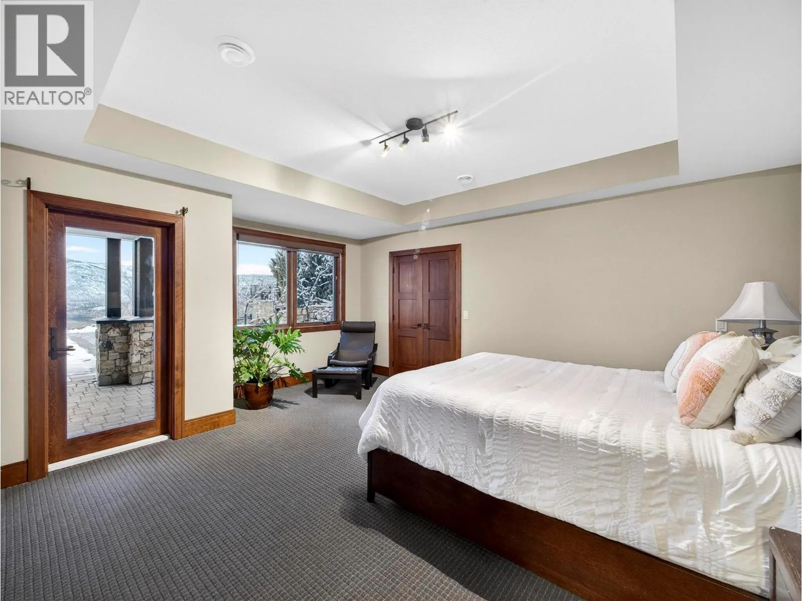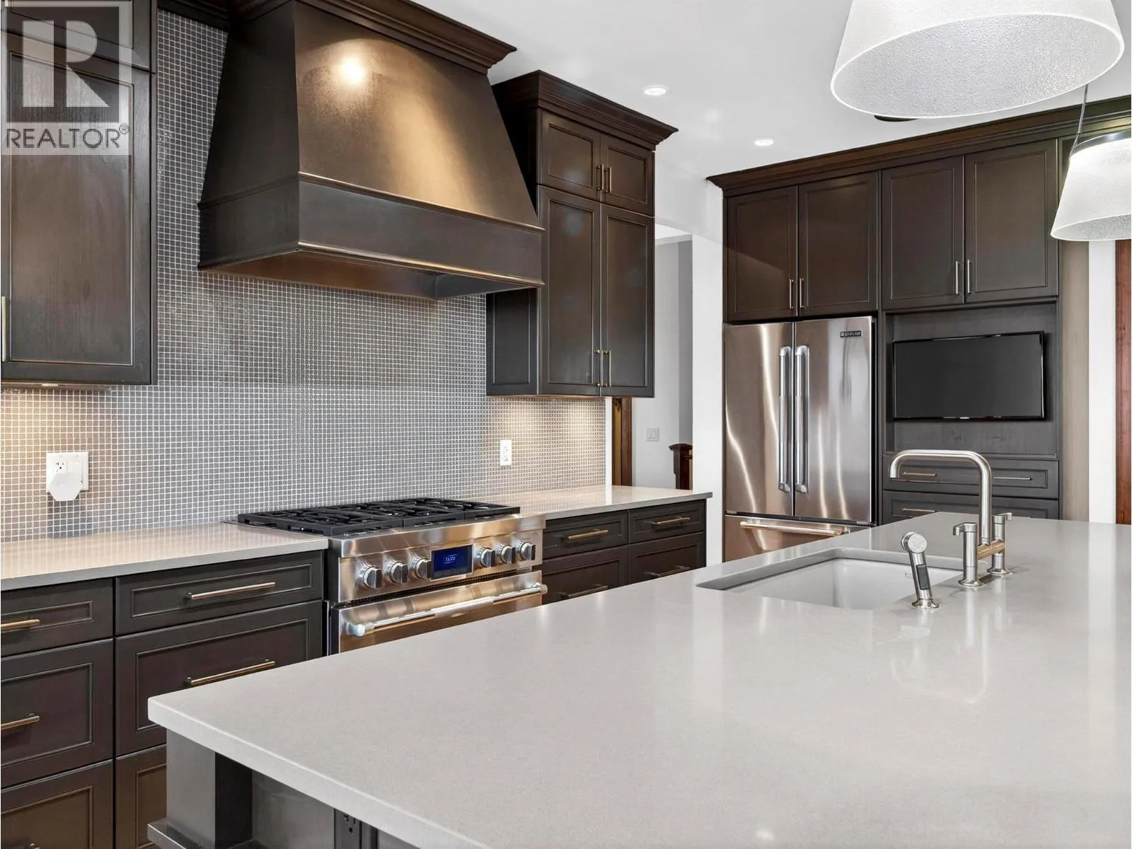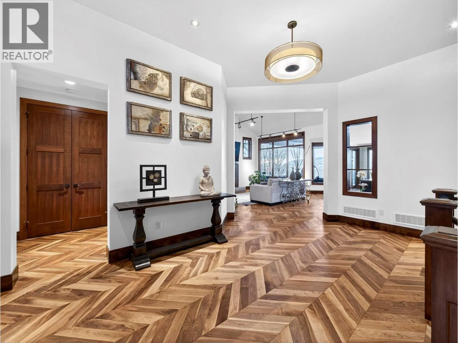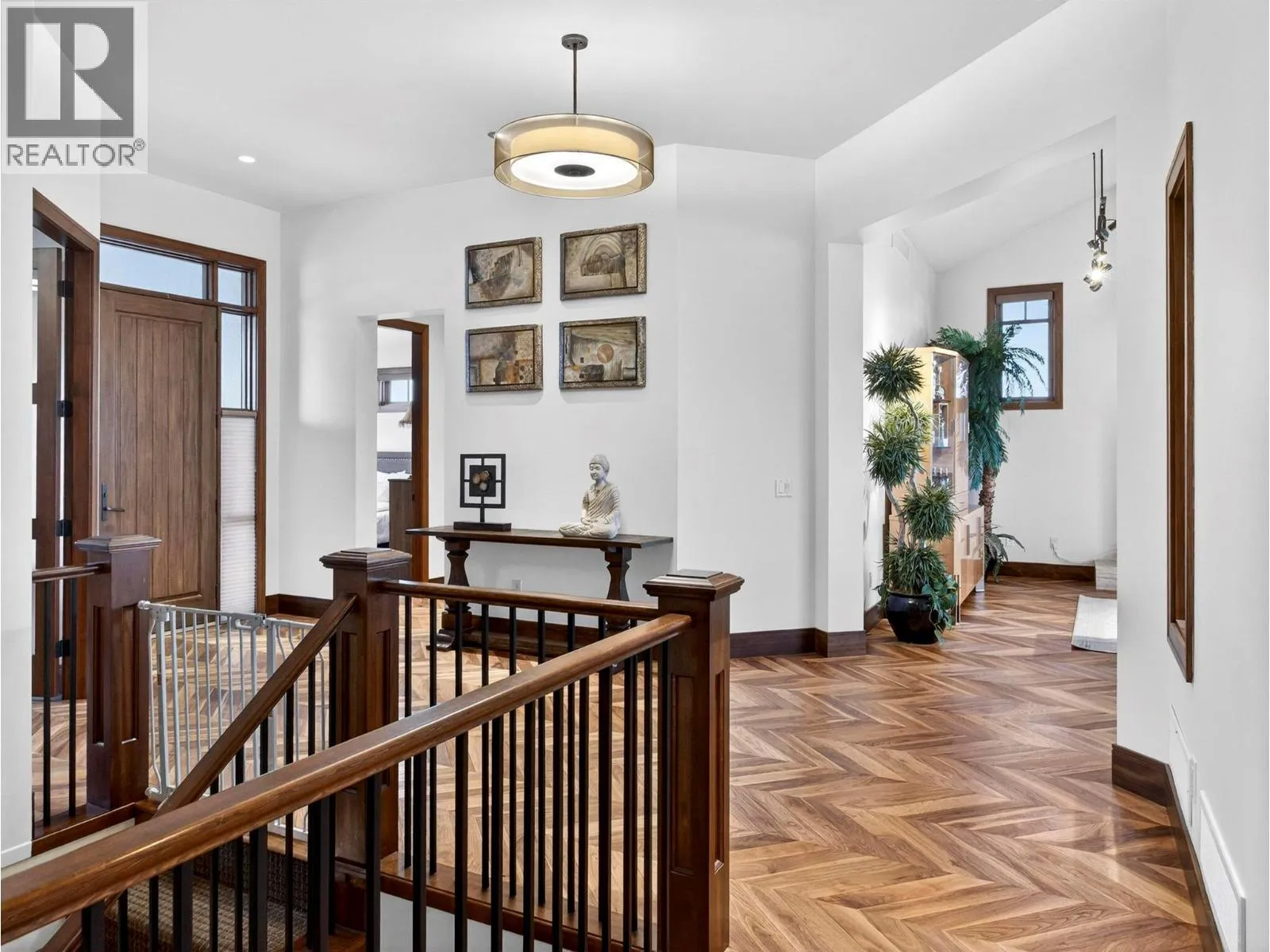 This stunning 4 Bedroom + Den residence blends luxury with timeless modern design and unobstructed panoramic lake views. Gorgeous herringbone hardwood floors, soaring ceilings, and a cozy gas fireplace create an inviting yet elevated atmosphere in the great room, enhanced by expansive windows that frame the surrounding scenery. The open-concept layout flows into a spacious dining area and gourmet kitchen featuring a massive island, high-end Jenn-Air stainless steel appliances, and a fully equipped butlerâs pantry. The oversized sundeck - with glass railings - offers breathtaking lake views and effortless indoor/outdoor living. The main level hosts two bedrooms, each with its own ensuite, including the primary retreat with a deluxe 5 piece spa-like ensuite, walk-in closet, and direct sundeck access. A stylish powder room and full laundry room complete the main floor. The fully finished basement adds two additional bedrooms and bathrooms, a large rec room with a wet bar, and 2 large flex spaces (perfect for a home office, crafts, play room, hobby room, gym) and in-floor heat! A Sonos sound system and remote blinds add a nice touch to the finishings. The rec room opens to a covered patio leading to the expansive backyard with an in-ground pool (with waterfall features) and hot tub. A recent landscape refresh made this incredible space even more beautiful. An oversized triple garage provides ample room for vehicles, storage, and toys. This is Okanagan luxury living at its finest! (id:27476)
