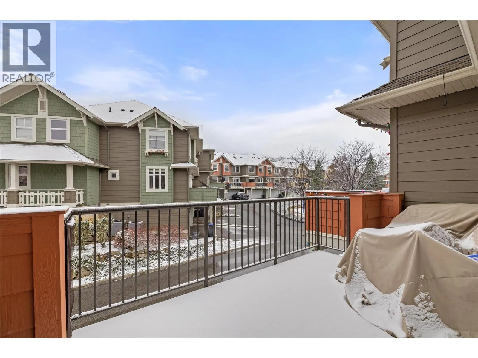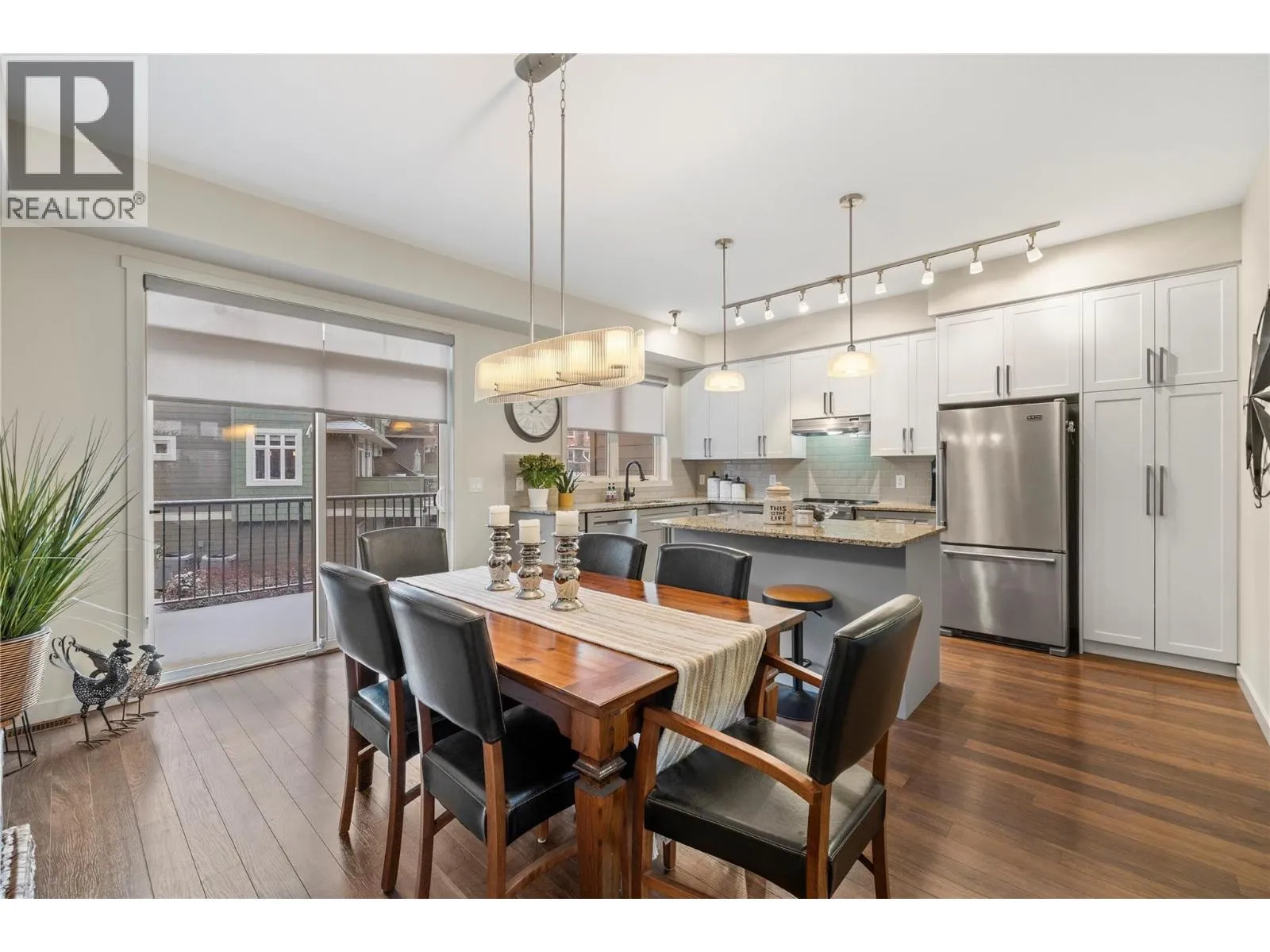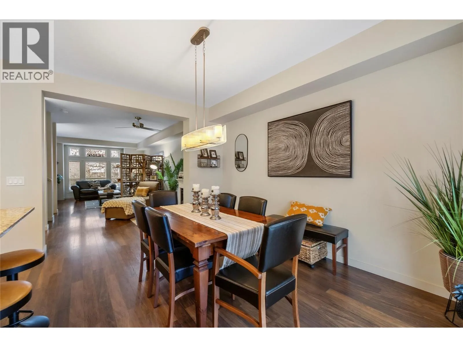 Discover this beautifully updated family townhome in the desired Amberhill community of Kettle Valley. Designed with practicality and comfort in mind, the ideal floor plan features three bedrooms on the upper level, including a generous primary suite complete with a walk-in closet and a spacious ensuite with double vanity and a soaker tub. A full main bathroom and a well-sized laundry room with extra storage complete the upper floor. The main level offers bright, easy everyday living with 8-foot ceilings, large windows with custom roller shades, and an inviting open-concept layout. The kitchen impresses with granite countertops and an oversized islandâperfect for cooking, entertaining, or gathering with family. From here, step out onto your private patio, and enjoy the convenience of a guest powder room, dedicated dining space, and a warm, light-filled living room. The lower level adds valuable flexibility with a fourth bedroom, a full bathroom, and direct access to the double attached garage. Outside, the fully fenced, grassy front yard is ideal for kids or pets, and you're just steps to neighbourhood parks, playgrounds, and everything that makes Kettle Valley such a beloved family community. (id:27476)
