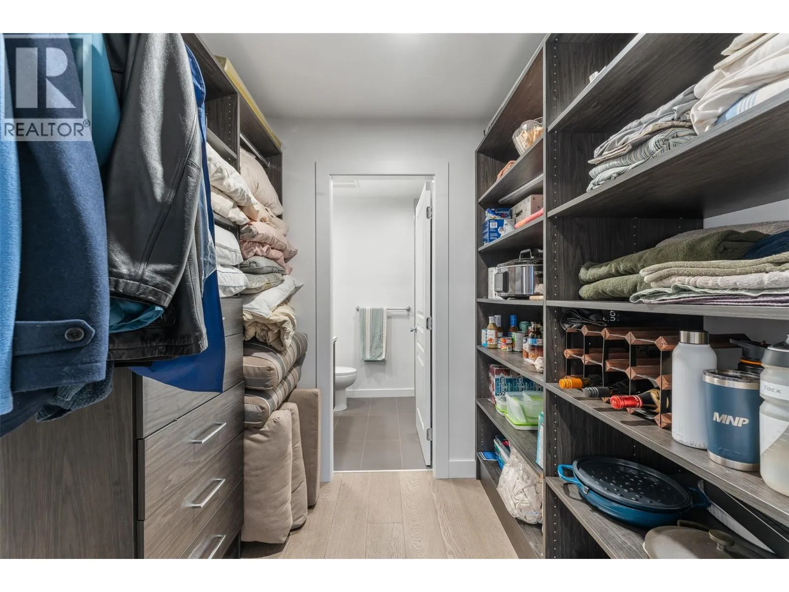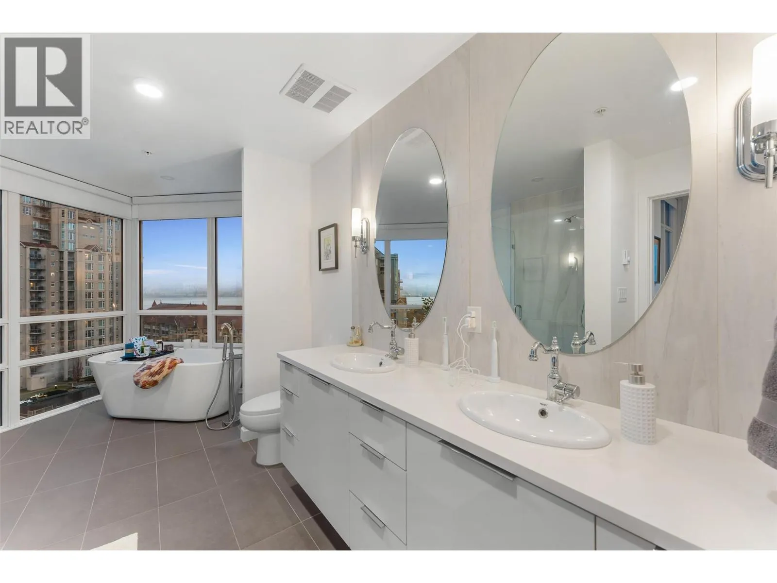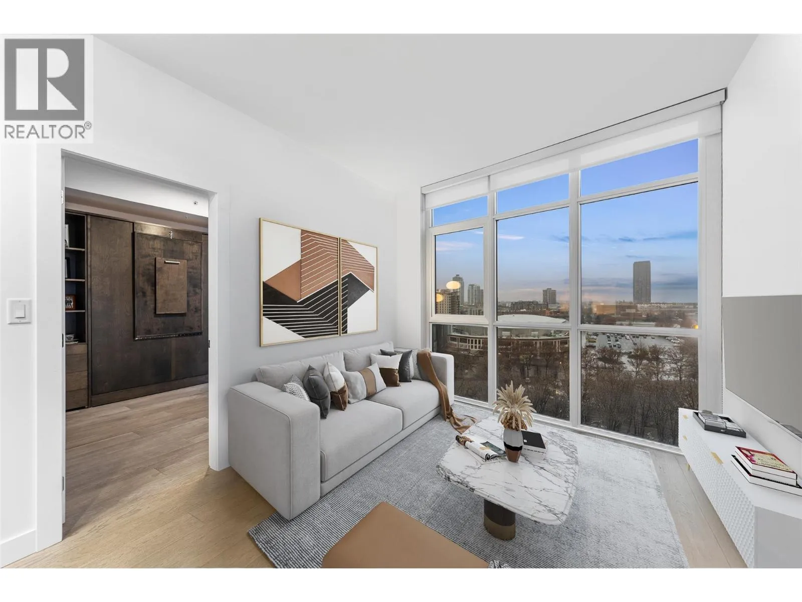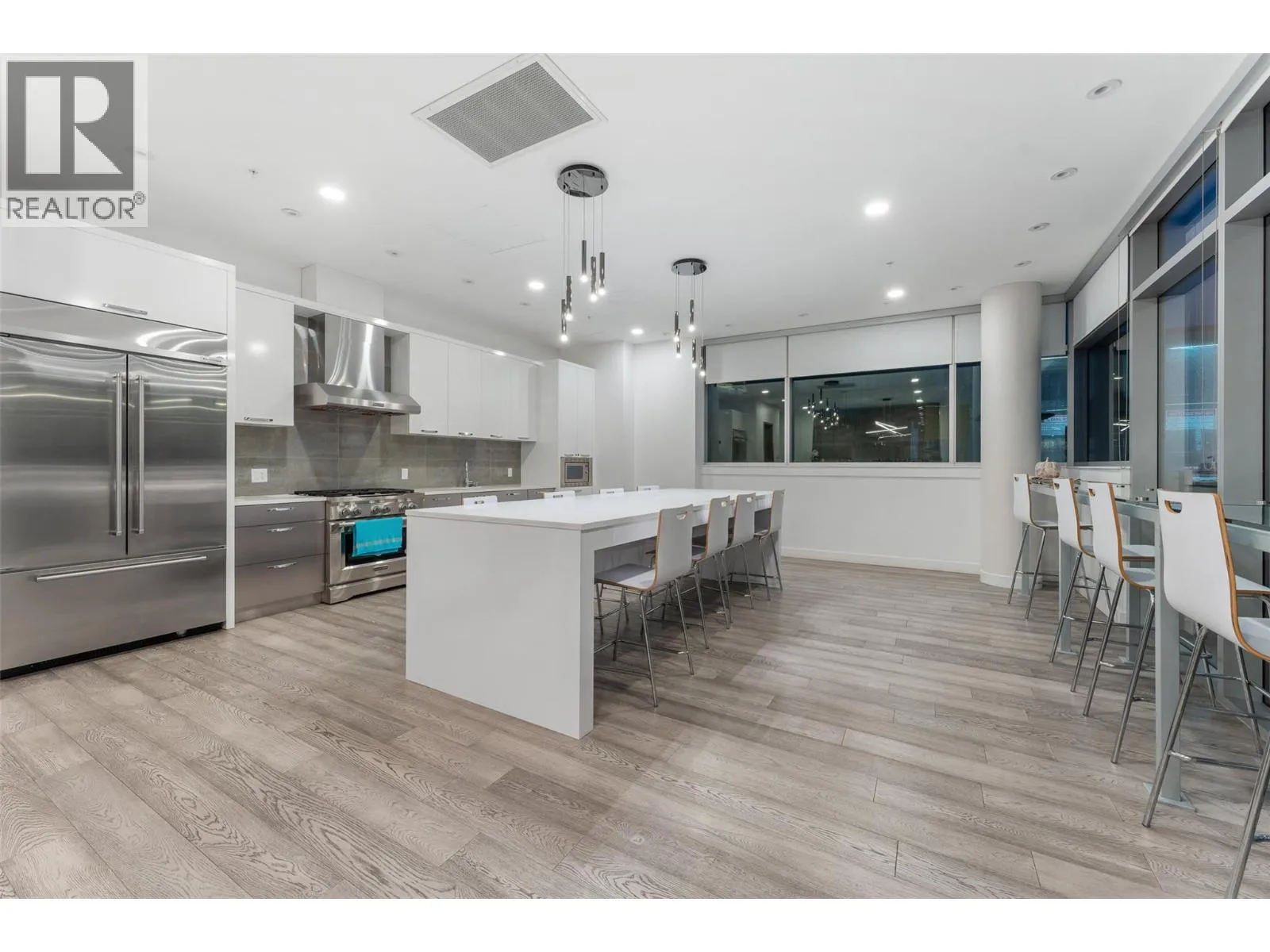 Beautifully updated 2 bedroom, 3 bath residence set in the heart of downtown Kelowna, just steps from the waterfront, dining and cultural amenities. Framed by floor-to-ceiling windows, the home captures sweeping views of the lake, bridge, mountains and city skyline, creating an effortless connection to the Okanagan lifestyle. Thoughtfully updated in 2020, the home features custom closets, a redesigned pantry, modern Murphy bed with integrated desk, and new washer/dryer. Lutron smart lighting enhances the ambiance throughout. The contemporary kitchen is a standout with quartz countertops, a waterfall-edge island with seating for 4, soft-close two-tone cabinetry, and premium Whirlpool appliances including a gas range. The open-concept living and dining area flows seamlessly to a generous covered deck, an exceptional outdoor extension with gas, power, and panoramic views. The primary suite offers private deck access, a custom walk-in closet, and a spa-inspired 5-piece ensuite with a freestanding tub positioned before a wall of glass. A well-appointed guest suite includes a walk-through closet and its own 4-piece bath. A sliding-door den, ample in-suite storage, and central A/C add to the comfort. Residents enjoy access to various amenities including a plunge pool, gym, and meeting room. 2 parking stalls. With its refined finishes, thoughtful upgrades, and unmatched walkability, this home offers the best of downtown living paired with gorgeous Okanagan views. (id:27476)