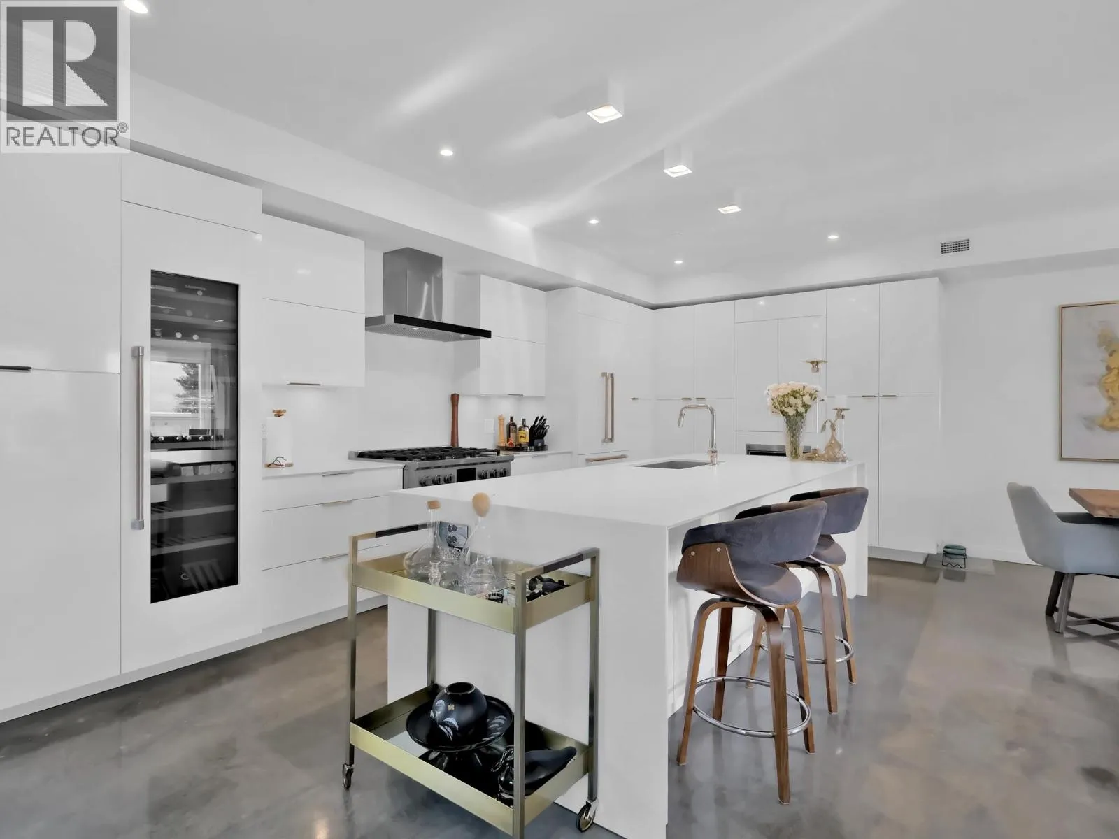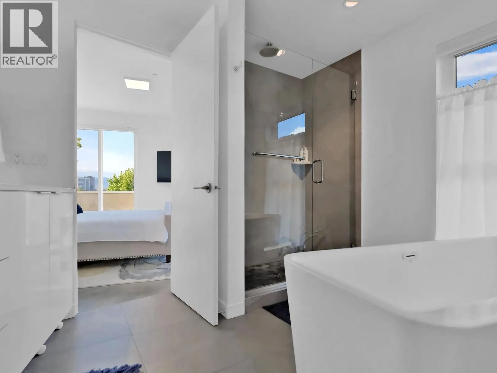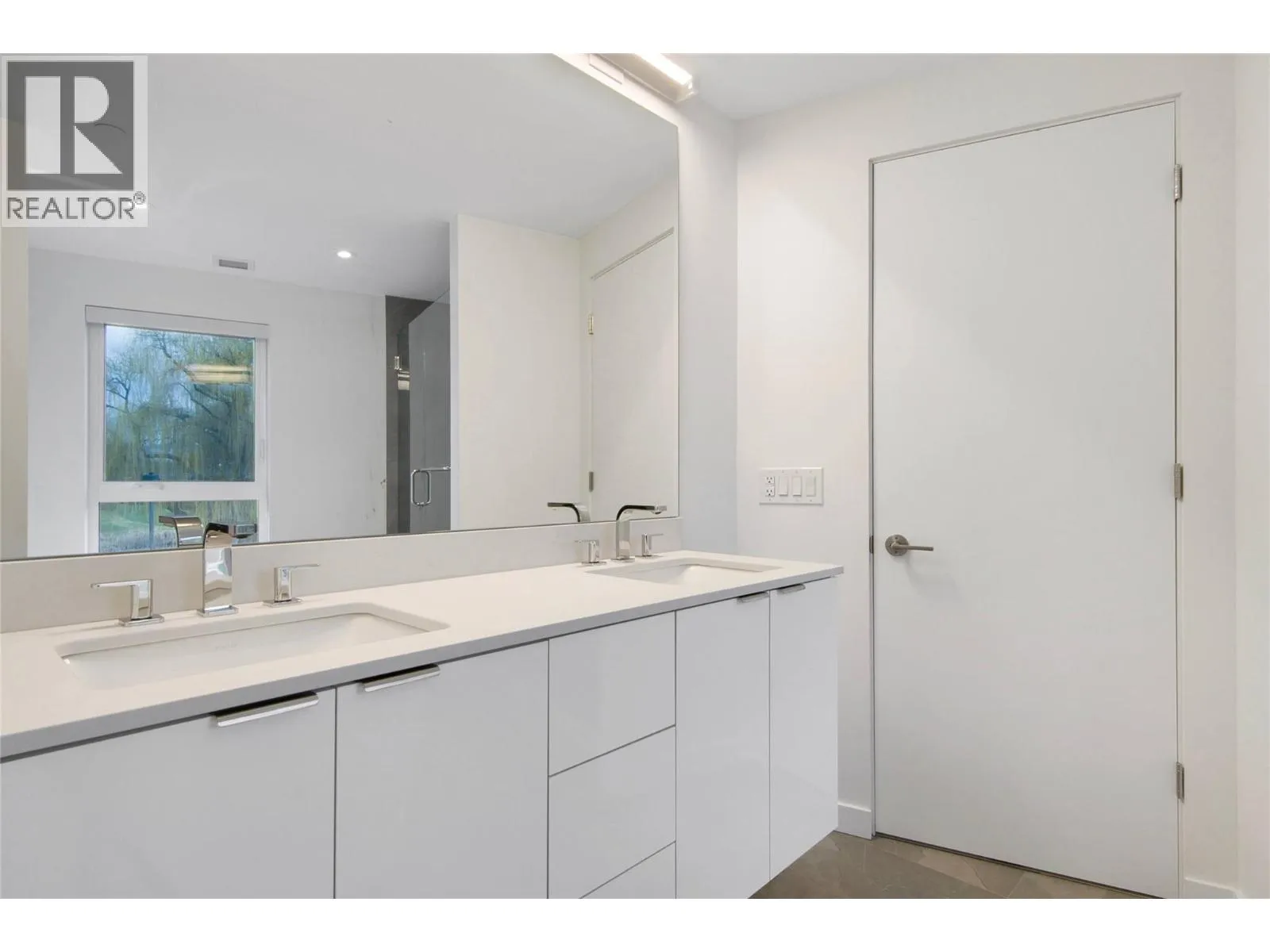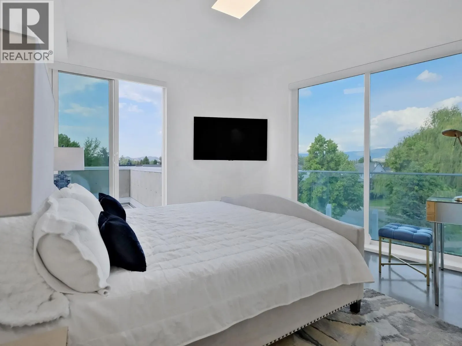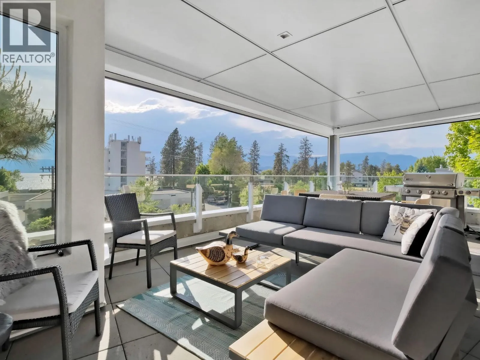 Welcome to Unit 201, 4071 Lakeshore Rd - A Rare Lakeside Retreat. This 3 bed, 2.5 bath luxury condo offers 1,829 sq ft of refined, modern living in an exclusive 8-residence boutique building. Enjoy private elevator access, a heated double garage and wellness-focused amenities including a 60-ft lap pool and gym. The sleek kitchen features integrated Fisher & Parker appliances and a 80-bottle wine fridge. All bedrooms open to the outdoors, with both a covered and expansive open patio showcasing lake, mountain and park views. Flooded with natural light, the open-concept interior is finished in a soft, sophisticated palette - just 300m from Okanagan Lake. Co listing Agent is related to Seller. (id:27476)