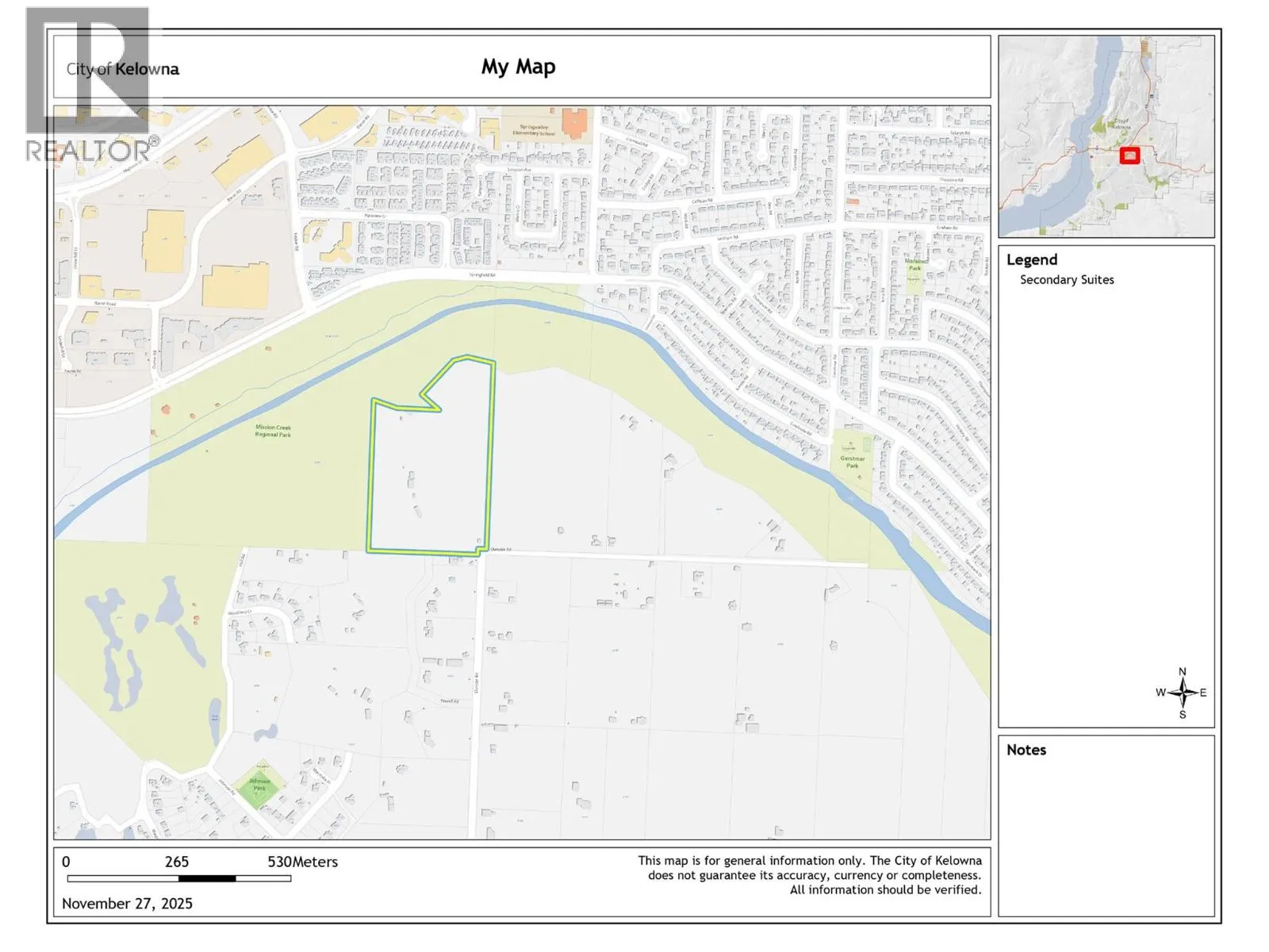 Private Acreage with a view in the heart of Kelowna, over 900 meters along the Mission Park Green Way. Total property +/- 27 acres currently +/- 14 acres planted in Cherry's and +/- 7 Acres in Apples. Home was built in the 1920's with the addition of sq ft in the 1980's now totaling 4,300 sq ft with triple car garage. Home is currently rented, Appointments a must to view. Please note: These photos were taken before the tenants moved in. (id:27476)
