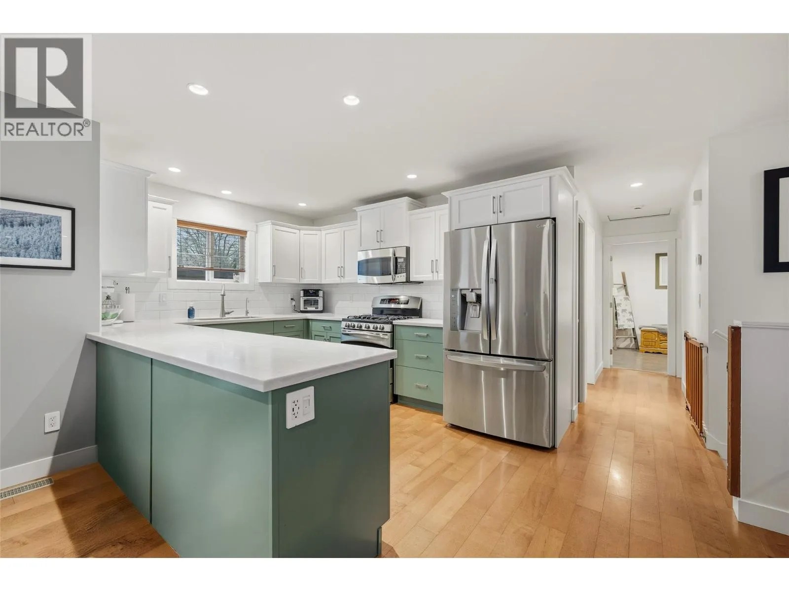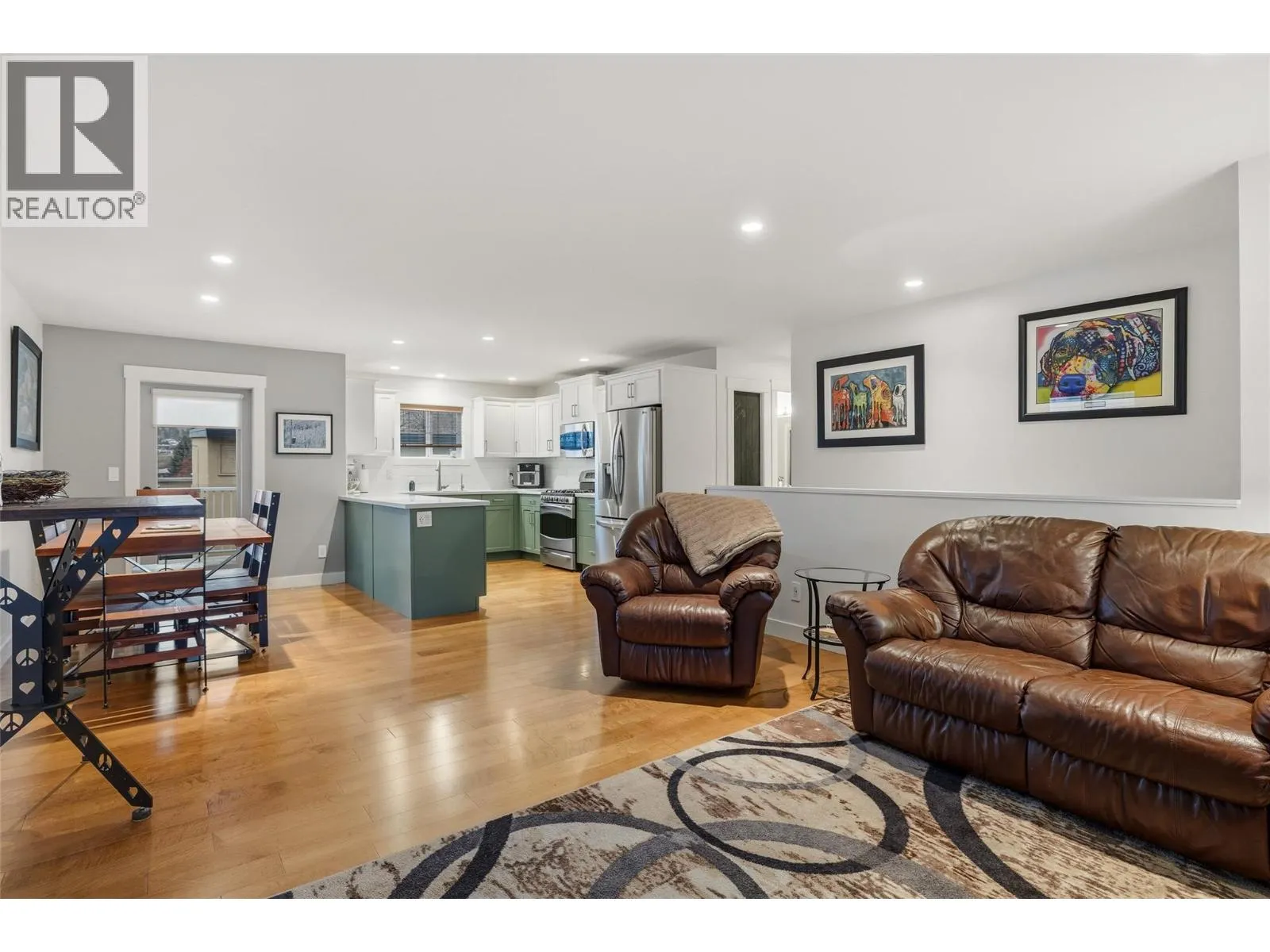 This stunning property is located in downtown Kelowna, just a short walk away from shopping, dining, green spaces, and designated walking and biking paths. The main level features a versatile bedroom/office and ample storage space. One bedroom, one bath private entry suite, with new carpets, laundry facilities, and a private patio. The upper level showcases a bright, open-concept layout that includes a spacious dining and living area, complete with a cozy fireplace perfect for chilly winter days. The upgraded kitchen features stainless steel appliances, ample cupboard space, and wraparound counters ideal for meal prep and baking. The large balcony off the dining area is perfect for entertaining. The large primary suite offers custom closet space, laundry facilities, and a four-piece ensuite bathroom. Additionally, there is another bedroom and bathroom, completing the floor. The property also includes a two-car garage, two tandem parking spots for the suite or RV or boat storage, and extra parking on the left side of the house. (id:27476)