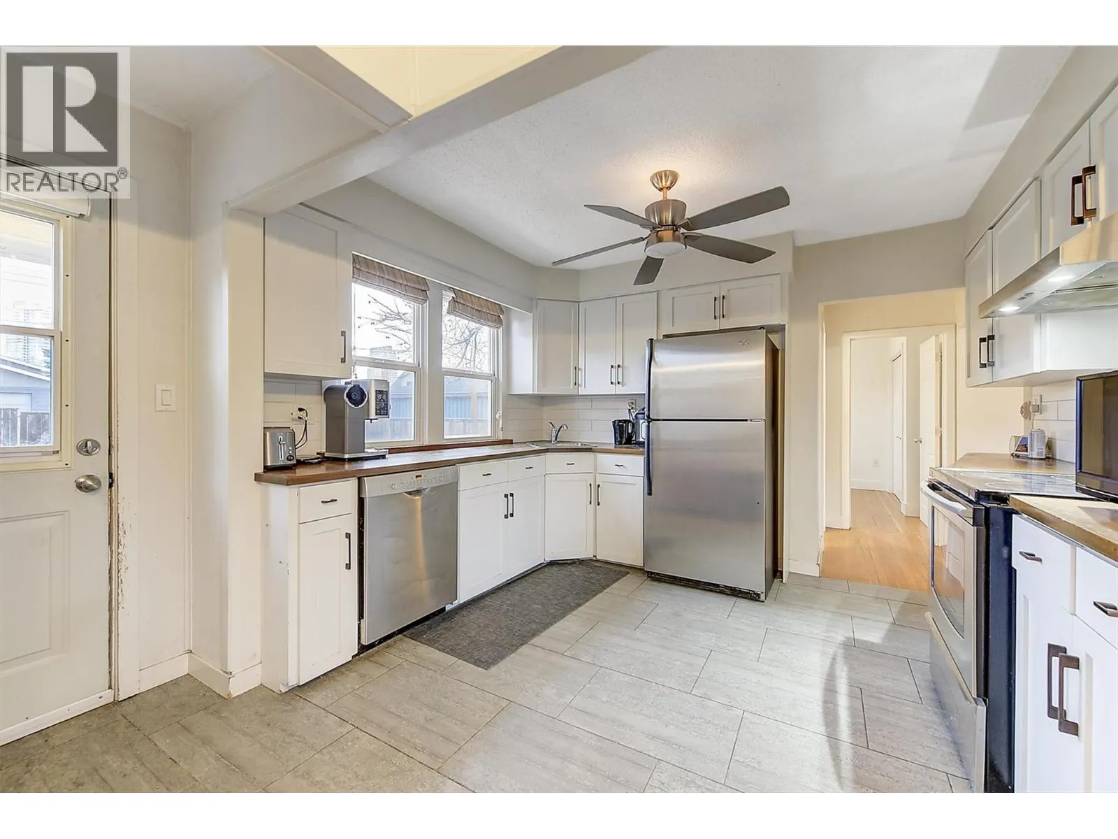 Move-in or use as a rental property, this Downtown Kelowna home offers long term investment value and future development possibilities. Situated on .14 acres in a vibrant downtown location, this 2-bedrooms, 1-bathroom home marks an excellent investment opportunity. Located a block from the beach, and close to Knox Mountain, the vibrant Brewery and Cultural Districts, Prospera Place, restaurants, cafes, and shopping you can easily enjoy both outdoor activities and downtownâs rich cultural, city lifestyle. One level living flows across 772 sqft from a bright kitchen with stainless steel appliances and light wood counters into a comfortable living area centered by a freestanding metal gas fireplace. The home includes two well-sized bedrooms, a full bathroom, and laundry. The spacious back deck and large yard create plenty of room to relax, garden, or plan future ideas, supported by a storage shed and fenced outdoor space. The propertyâs home, location, lot size and land value make this buy even more appealing. A smart choice for investors looking for lifestyle and long-term possibilities in a central Kelowna address. (id:27476)