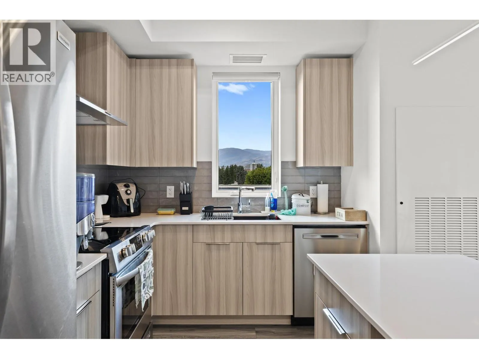 4th-Floor Corner unit Gem with Panoramic Views in Lower Missionâs Premier Address! Wake up to sweeping mountain views, stroll to the beach, and live the Okanagan dream in this stunning 2 bed, 2 bath home at Green Square Vert. Sun-filled wrap-around windows frame gorgeous city and mountain vistas, while the spacious covered patio with gas BBQ hookup is perfect for outdoor living. Inside, enjoy quartz countertops, full-height cabinetry, premium stainless steel appliances, and a serene primary suite with walk-in closet & spa-inspired ensuite. Exceptional amenities include a rooftop patio, community garden, fitness centre, dog/bike wash, and secure bike storageâplus secure underground parking. Just steps to Gyro Beach, H2O Centre, Mission Creek Greenway, shopping, dining, wineries & golf, this is luxury, convenience, and lifestyle all in one perfect package (id:27476)