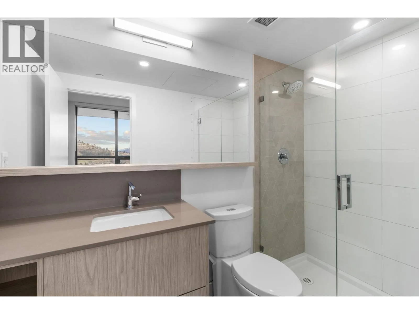 Welcome to Bertram Block â a brand-new 2024 2 bed, 2 bath condo set high on the 28th floor in the heart of downtown Kelowna, with stunning lake, city, and valley views. This bright CORNER unit offers 805 sq. ft. of smart, comfortable living with a split-bedroom layout for privacy, air conditioning, large windows, and a sleek modern kitchen featuring quartz countertops and stainless steel appliances. Step onto your covered deck and take in the view â the perfect backdrop for slow mornings and golden-hour evenings. Resort-style amenities include a rooftop heated pool and spacious hot tub with 360-degree views, outdoor BBQ and lounge areas, bocce ball court, community gardens, fitness centre, dog run and dog wash, secure bike room, plus multiple indoor lounges and workspaces. One secure parking stall and a dedicated storage locker are included. This home is VACANT and ready for QUICK POSSESSION, making it an ideal fit for a couple craving an effortless downtown lifestyle or a first-time home buyer looking for modern value in a prime, walkable location. Built by Mission Group, youâre steps to the lake, waterfront paths, groceries, shopping, Pilates, and Kelownaâs best restaurants and cafes. Elevated views. Unbeatable walkability. Downtown living done right. Book Your Showing Today! (id:27476)