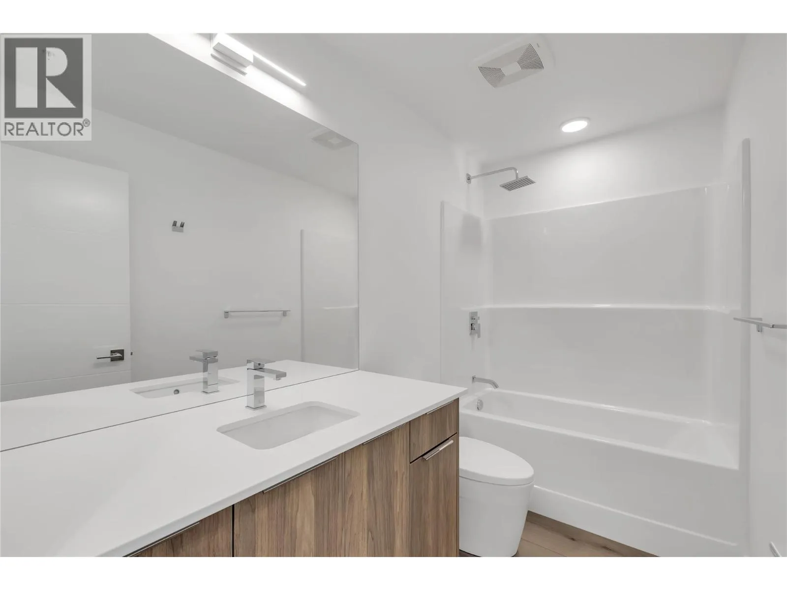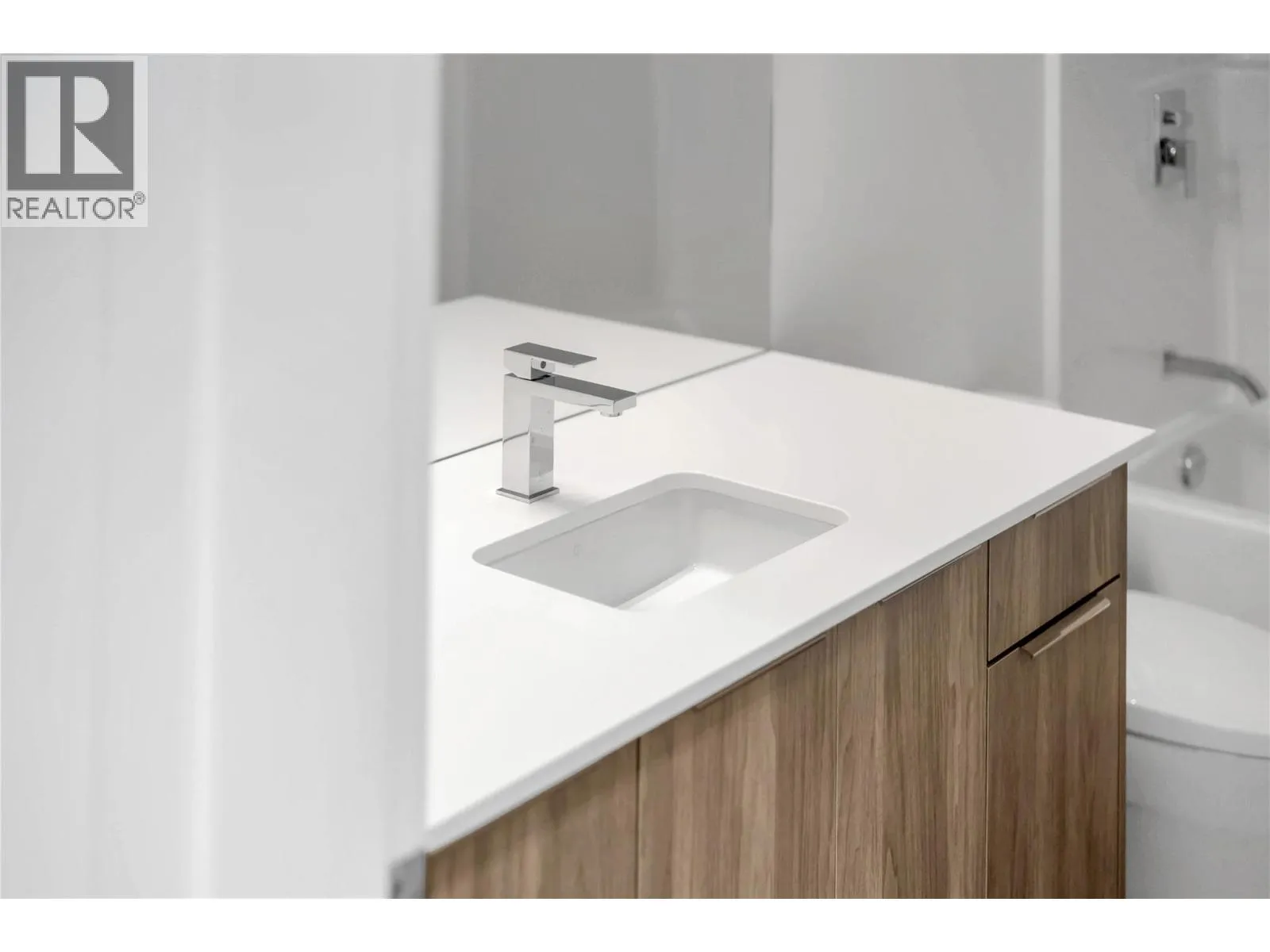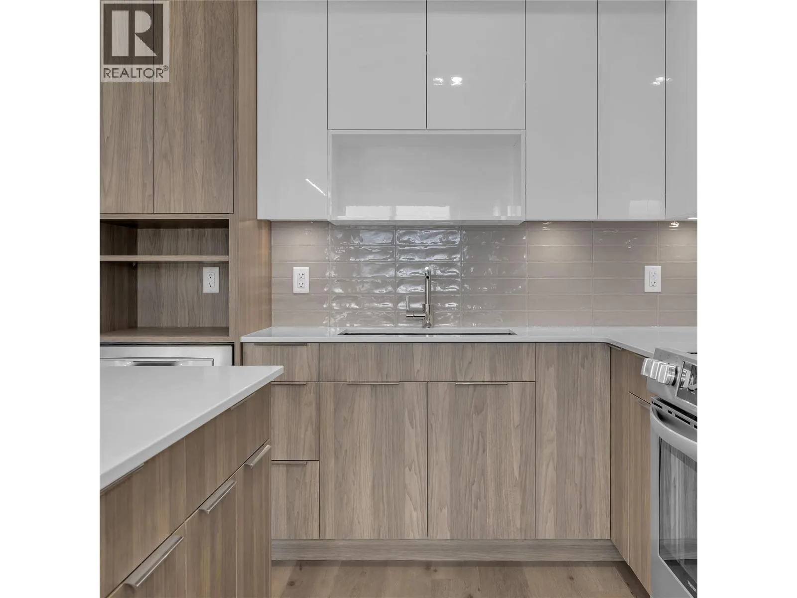 DEVELOPER PROMO NO STRATA FEES FOR 3 YEARS!! Welcome to Green Square Vert in Kelownaâs Lower Mission. This brand-new condo features the largest floor plan available at 960 sq. ft., with 2 bedrooms, 2 bathrooms, and 2 parking stalls. The open concept design maximizes natural light and offers lake and mountain views. Interior finishes include quartz countertops, European-inspired flat panel cabinetry, stainless steel appliances, and chrome fixtures, creating a modern and functional living space. The large northwest facing patio comes equipped with a gas BBQ hookup, ideal for outdoor living. Residents of Green Square Vert enjoy access to a rooftop patio, fitness facility, community garden, secure bike storage, and a dog/bike wash station. The location offers quick access to beaches, restaurants, schools, and shopping a true Lower Mission lifestyle. GST applicable. First-time home buyers may qualify for the BC new construction GST exemption. (id:27476)