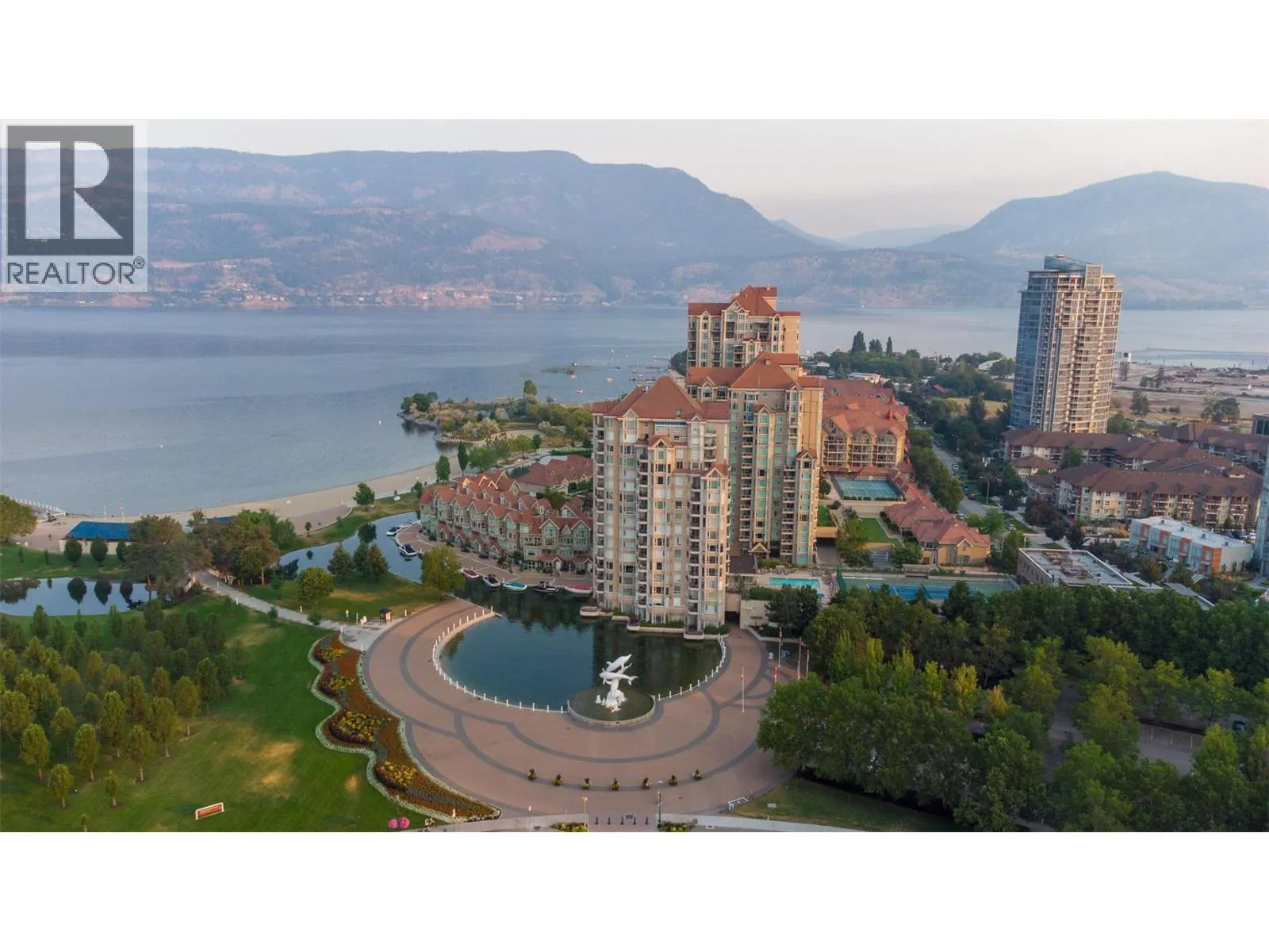 Experience Lakeside Living in Downtown Kelowna. Welcome to this fully furnished, south-facing 2-bedroom pls den condo in the exclusive Sunset Waterfront Resort, located on the shores of Okanagan Lake. Enjoy resort-style amenities including two pools, a gym, and a tennis courtâjust steps from your door. This bright and spacious home features 10 ft ceilings, large windows, two decks, gas fireplace, gas range, BBQ hookup, stainless steel appliances, new hardwood floors, new countertops, and a brand-new heat pump. Perfect for full-time living or as a rental investment, the unit is pet-friendly and allows short-term rentals. Walk to restaurants, breweries, shopping, the arena, and Kelownaâs Cultural District. Boat slips are available annually at the front entrance. Come live the vibrant downtown lifestyle and see why Kelowna is one of Canada's fastest growing cities. (id:27476)