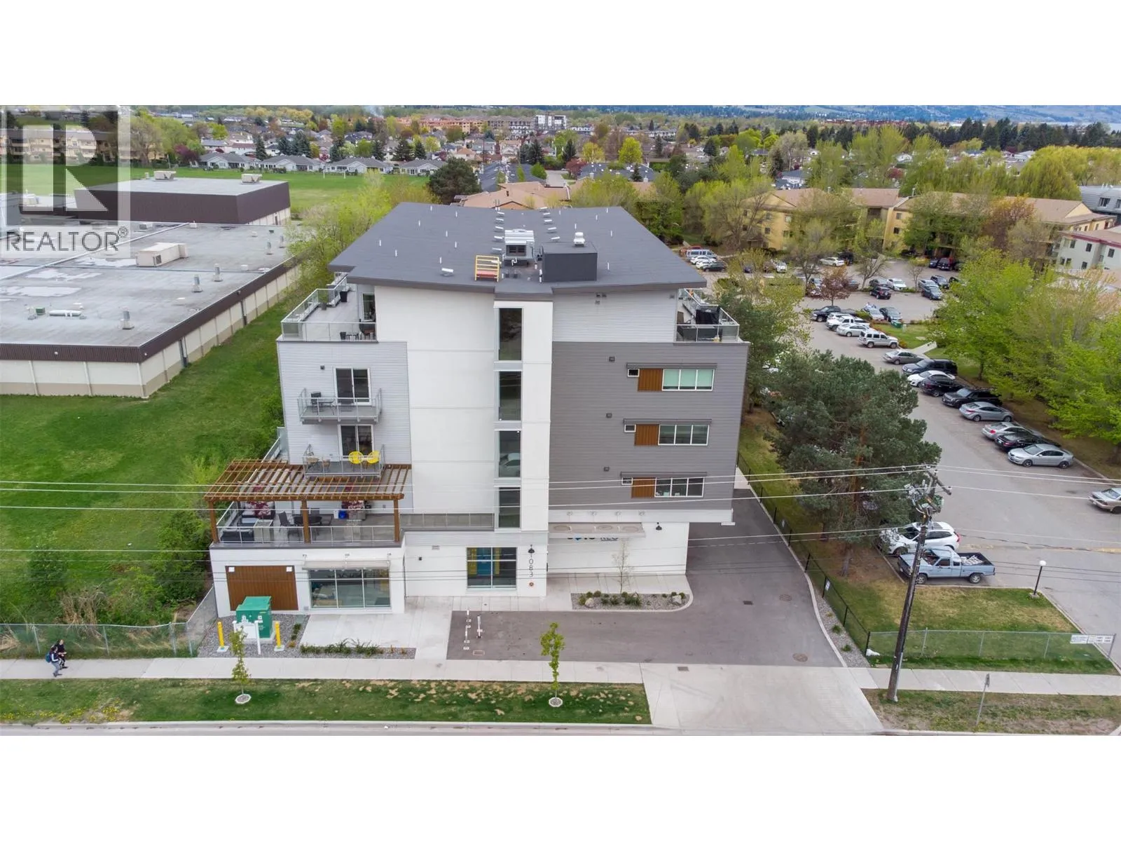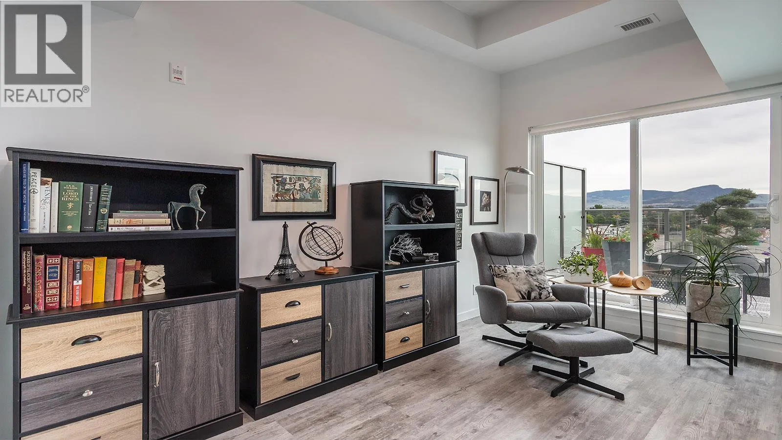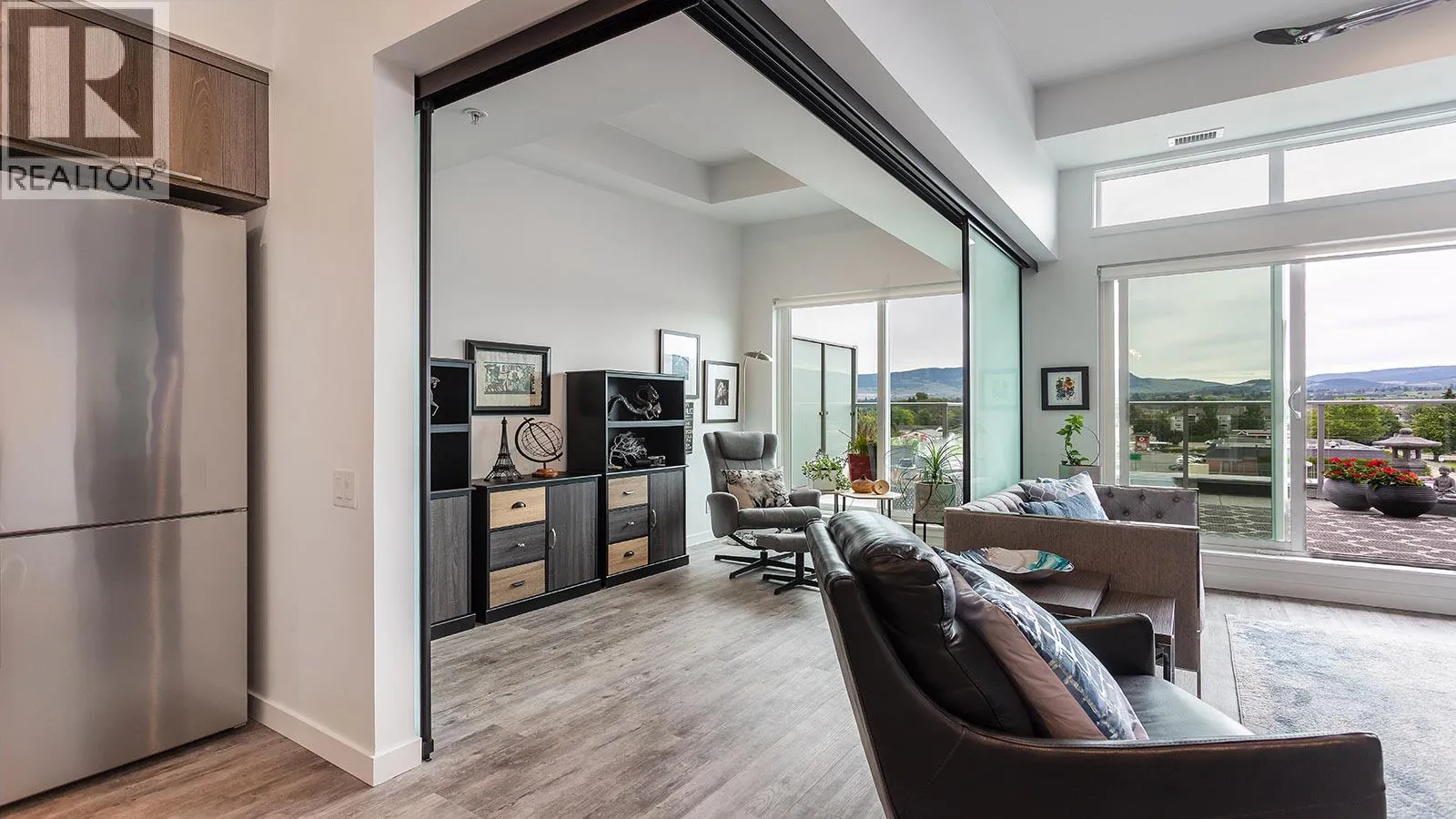 Welcome to SOLE on KLO â a bright, contemporary retreat perfectly positioned in the heart of the Lower Mission. This 1 bedroom plus den, 1 bathroom residence offers effortless modern living with a rare nearly 300 sq. ft. outdoor terrace capturing expansive east-facing mountain views and gentle morning light. Inside, an open-concept layout is enhanced by sleek finishes, including quartz countertops, stainless steel appliances, modern cabinetry, and durable vinyl plank flooring. The spacious den provides valuable flexibility, easily functioning as a second sleeping area with room for a queen Murphy bed, ideal for guests or hybrid living needs. The bedroom is paired with a well-appointed bath featuring clean, modern lines and a glass-enclosed shower. Large windows and sliding doors draw natural light throughout the home while seamlessly connecting the interior living space to the oversized terrace, perfect for outdoor dining, relaxing, and taking in the panoramic landscape. Additional features include in-suite laundry and a generously sized parking stall. Located directly across from Okanagan College and moments from the boutiques, cafes, and waterfront pathways of Pandosy Village, this residence offers exceptional walkability and a vibrant urban lifestyle. (id:27476)
