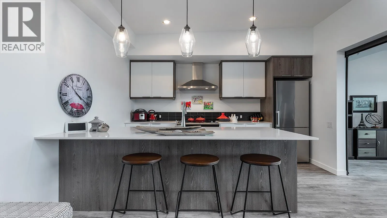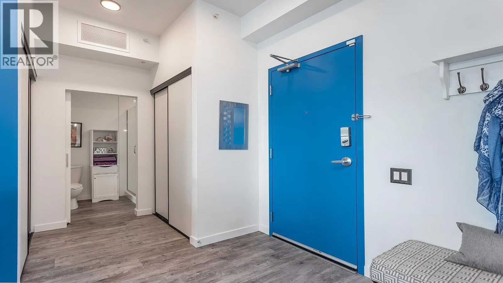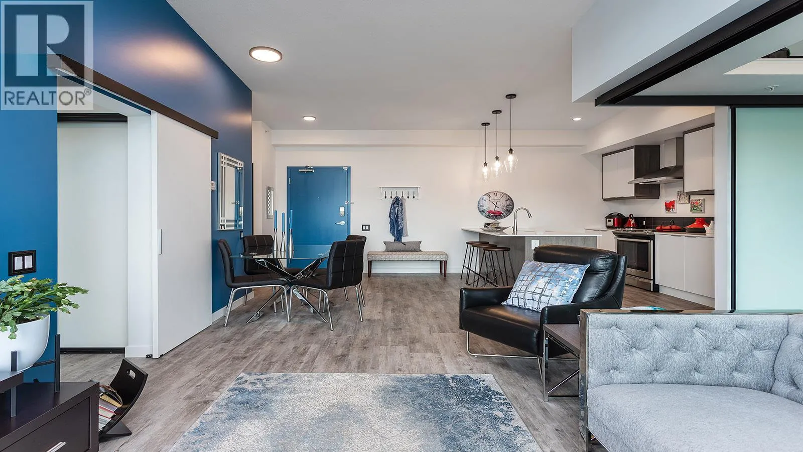 Welcome to SOLE on KLO â a bright, contemporary retreat perfectly positioned in the heart of the Lower Mission. This 1 bedroom plus den, 1 bathroom residence offers effortless modern living with a rare nearly 300 sq. ft. outdoor terrace capturing expansive east-facing mountain views and gentle morning light. Inside, an open-concept layout is enhanced by sleek finishes, including quartz countertops, stainless steel appliances, modern cabinetry, and durable vinyl plank flooring. The spacious den provides valuable flexibility, easily functioning as a second sleeping area with room for a queen Murphy bed, ideal for guests or hybrid living needs. The bedroom is paired with a well-appointed bath featuring clean, modern lines and a glass-enclosed shower. Large windows and sliding doors draw natural light throughout the home while seamlessly connecting the interior living space to the oversized terrace, perfect for outdoor dining, relaxing, and taking in the panoramic landscape. Additional features include in-suite laundry and a generously sized parking stall. Located directly across from Okanagan College and moments from the boutiques, cafes, and waterfront pathways of Pandosy Village, this residence offers exceptional walkability and a vibrant urban lifestyle. (id:27476)
