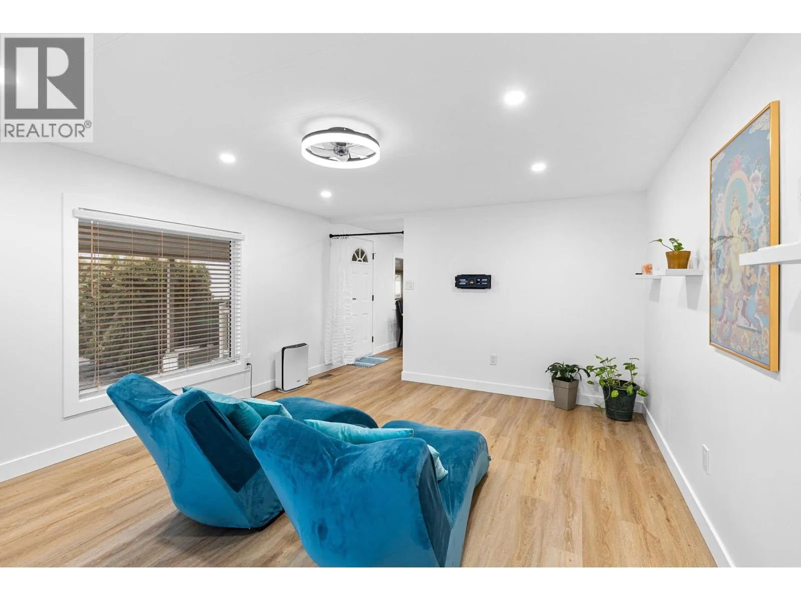 Fully Renovated 2 Bedroom + Den unit in Family Friendly Belaire Estates MHP. Home has a functional layout with a great size Kitchen and dining space. Kitchen has been completely updated with New Oven, Stove, Refrigerator, Microwave, Washer, Dryer, Dishwasher and Reverse osmosis water filtration system. Kitchen leads to a large living room which captures tons of natural light through bay windows. First washroom is 4 piece with a large bathtub / shower. The primary bedroom has a half washroom for convivence and connects to the Den / Office space. Second bedroom is a great size with a large closet. The home has had wall strips replaced with drywall throughout, has been freshly painted, and had Italian hardwood fiberboard installed throughout giving it a sleek, modern look. The expansive sunroom is ready and waiting for buyer's chosen revamp, could be used as a spa room or entertaining space depending on buyers plans. Home has a Large enclosed private yard which can be accessed through the sun room or front gate. New Hot Water Tank installed 2024. Roof and gutter maintenance and repair in 2025. Covered Parking. Belaire Estates MHP is pet friendly allowing for small dog or indoor cat (1 pet per household) and is just minutes drive from Lake Country's Restaurants, cafes and shops. (id:27476)