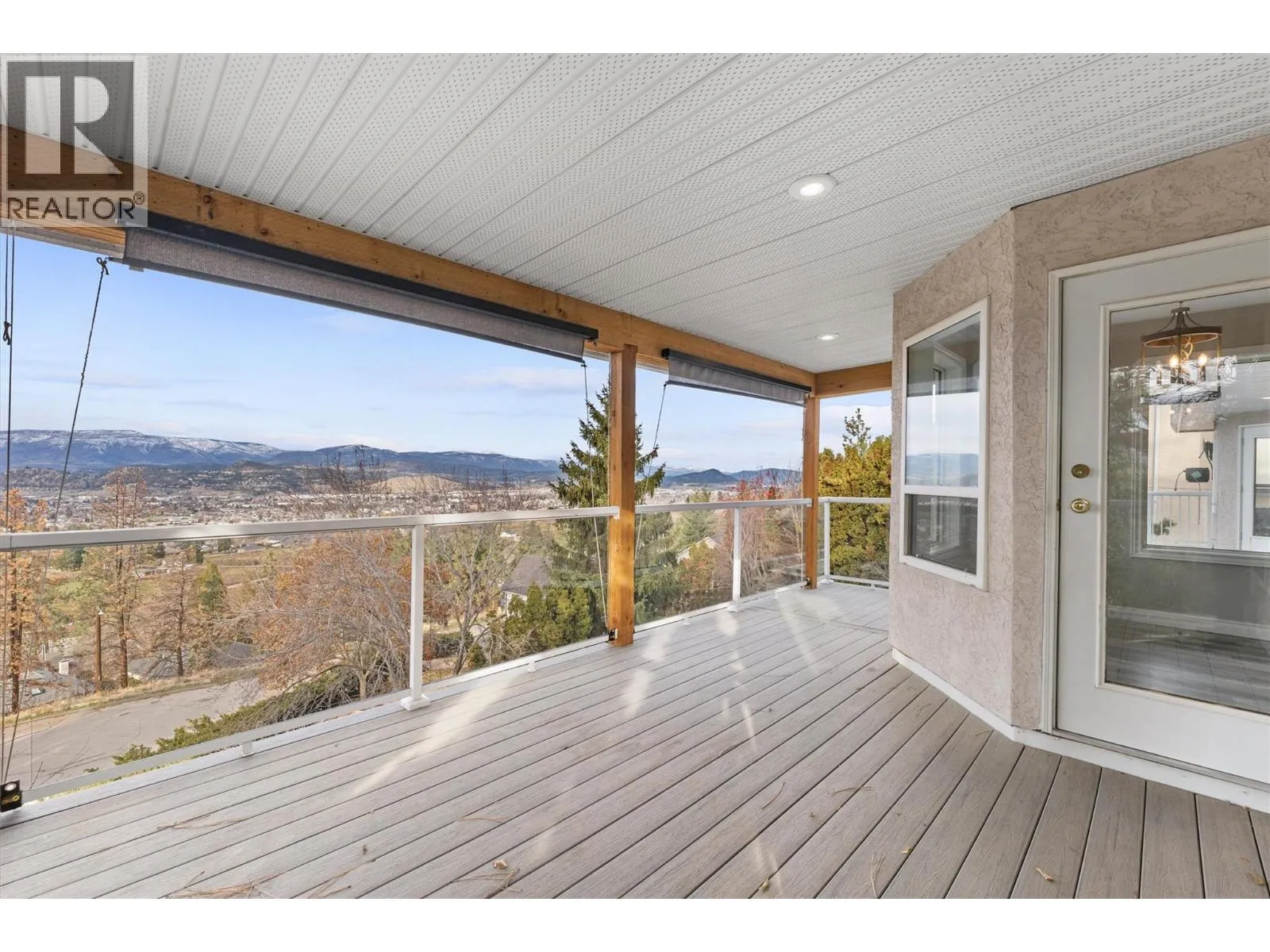 Welcome to this beautifully updated Black Mountain home offering true one-level living with panoramic lake, mountain, and city views. Set on a generous .25-acre lot, this 3-bedroom home plus main-floor office features 2,621 Sq Ft of finished living space, with an additional 700 Sq Ft of unfinished area ready for your ideas. Everything you need is conveniently located on the main floor, including the primary bedroom, laundry, and officeâmaking it an ideal option for growing families, empty nesters, or down sizers looking for comfort without compromise. Recent updates include new flooring, fresh paint, and an impressive $30,000 deck featuring durable composite boardsâperfect for entertaining or simply soaking in the views. As the sun sets, enjoy watching the skyline come alive from your expansive outdoor space. Built in 1993 and thoughtfully refreshed, this home blends solid construction with modern touches. Located just minutes from wineries, Black Mountain Golf Course, parks, schools, dining, and shopping, this neighbourhood offers an active, family-friendly lifestyle. Big White Ski Resort is only 40 minutes away for winter adventures, while summer brings endless hiking and biking opportunities. A rare combination of views, functionality, and locationâthis is a home youâll love coming back to every day. (id:27476)