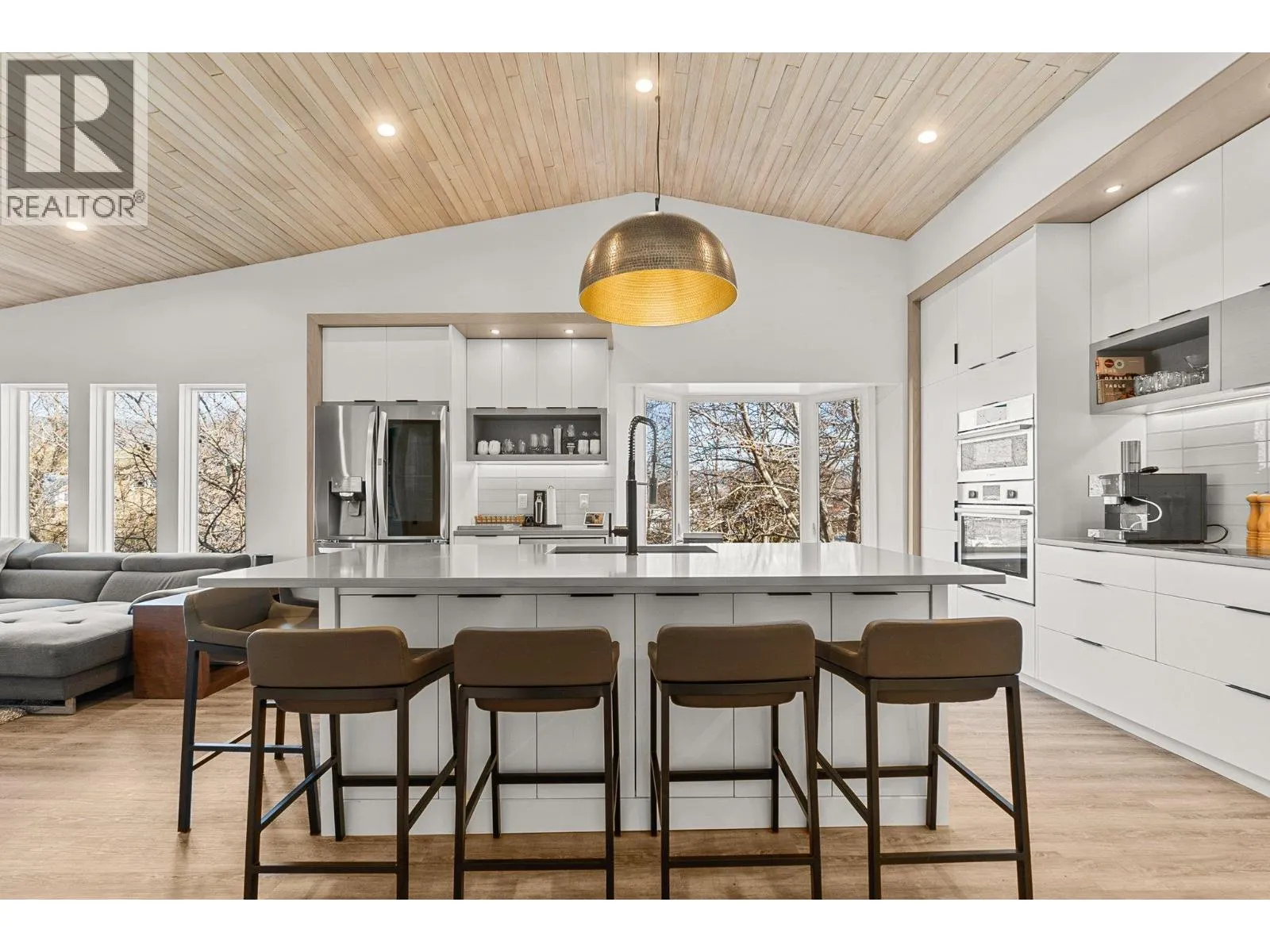 Welcome to the best kept secret on the waterfront in the heart of Pandosy Village area! Must sought after area and this complex is a hidden gem! Located on Lake Okanagan with 350 feet of beachfront this complex offers the finest waterfront experience while being affordable. This unit is completely renovated, open floor plan with 3 bedrooms that accommodates 8 sleeping comfortably, 2 full baths including a steam shower in the primary suite. Enjoy the most of summer living with the outdoor pool, hot tub, generous grass area and your own private boat slip with lift. Top floor unit with soaring vaulted cedar lined ceiling. A complete renovation in 2021 includes high end kitchen with quartz countertops, stainless steel appliances, wine fridge, induction stove, heated tile bathroom floors, electric fireplace...no details were overlooked. The attic provides for additional storage and accommodates all the mechanical units. Come take a look today and join the other 30 owners living the Okanagan dream!! (id:27476)