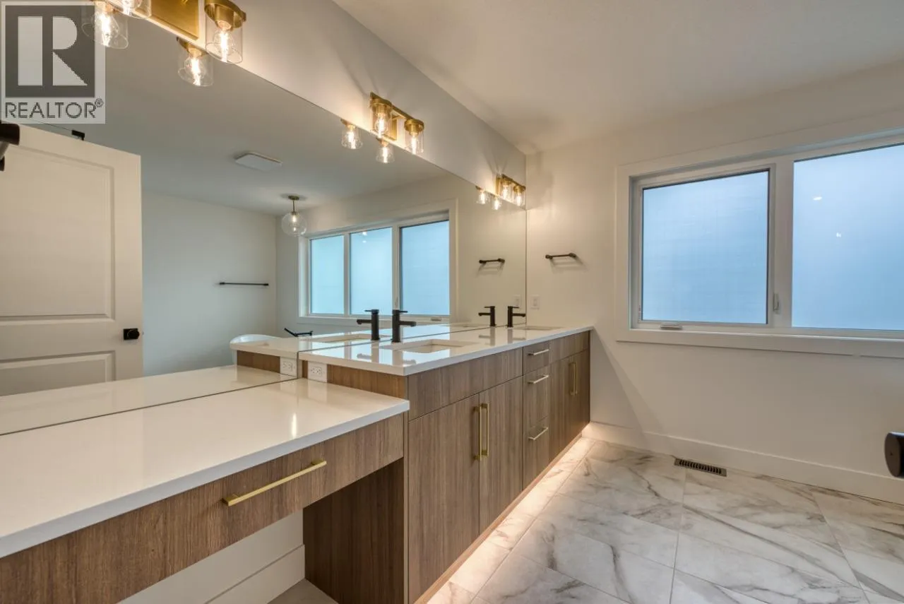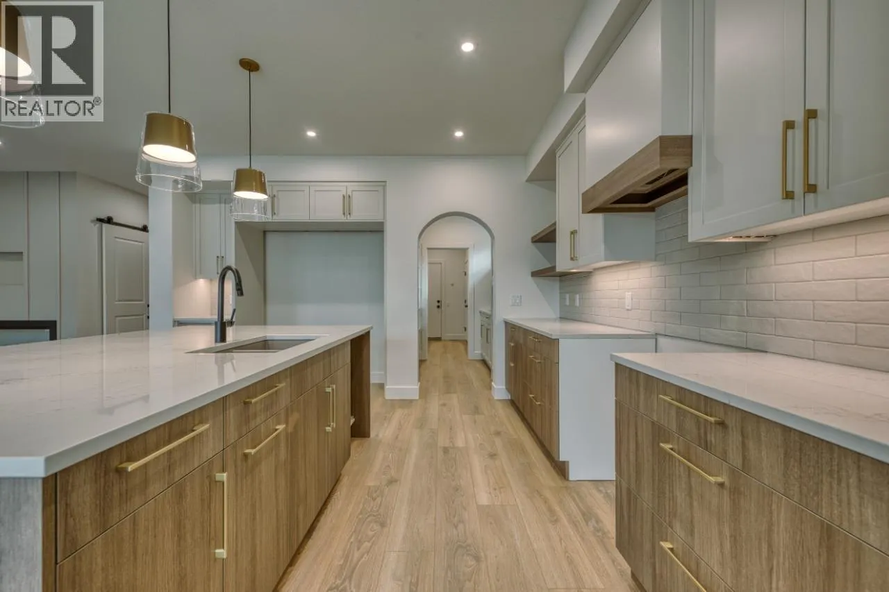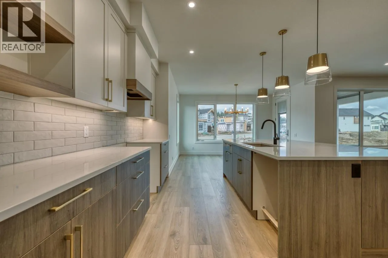 The Olive, a modern farmhouse by Carrington Home, is a stunning new build located in the Orchard in the Lower Mission. Designed with a soft, inviting color palette, this thoughtfully laid-out home offers the perfect balance of style and function. The spacious open-concept living area features custom arches and a striking double-sided electric fireplace that connects the great room and home office. The chefâs kitchen includes a large island, plenty of cabinets, and a 10pc appliance package. A butlerâs pantry and mudroom enhance organization and convenience. Upstairs, the luxurious primary bedroom boasts vaulted ceilings, a faux-wood beam, and electric fireplace, enjoy a spa-like ensuite with dual vanities, and a walk-in closet. Two additional bedrooms, a full bath, and a bonus room complete the upper level. The finished basement includes a rec room with an electric fireplace and is roughed in for a potential future development. The Olive offers timeless elegance and modern living. GST Applicable (id:27476)