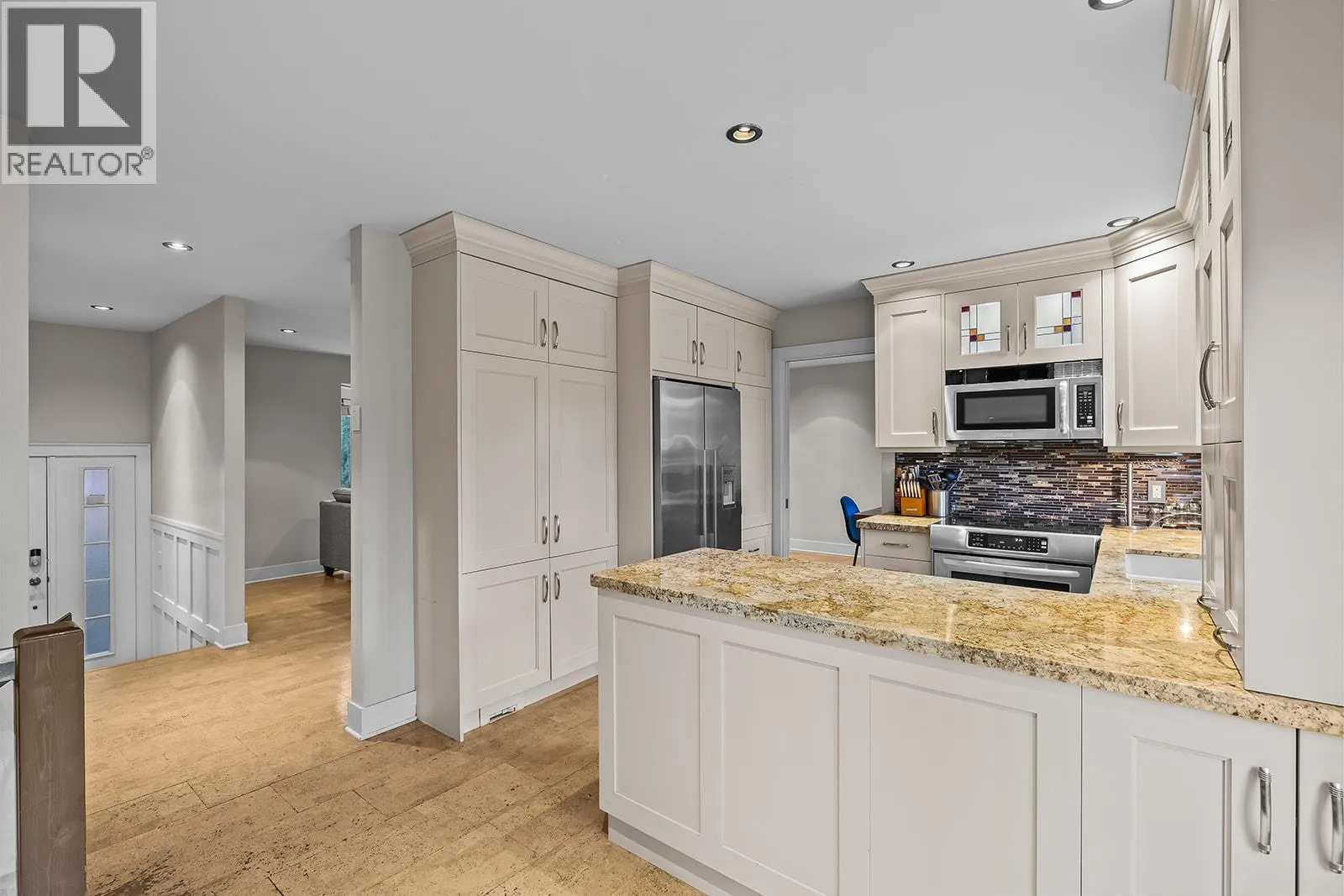 Beautifully updated family home in the heart of Kelownaâs sought-after Lower Mission. This 2,520 sq ft split-level residence offers a functional layout with multiple living areas and a private, fully fenced backyard built for entertaining. The kitchen features shaker cabinetry, granite countertops, stainless steel appliances, and a peninsula island with seating that flows into the breakfast nook and out to the pool and hot tub area. A formal dining room and living area with a gas fireplace and bay window provide bright, welcoming spaces, while a sunken family room off the kitchen offers direct access to the backyard. Upstairs are three spacious bedrooms, including a large primary with a 3-piece ensuite and walk-in shower. The lower level adds flexibility with space for a home theatre, office, or gym. The outdoor area is a standout â complete with a separately fenced inground pool, hot tub, pool house, covered patio, kidsâ play area, and RV parking. A double garage with epoxy floors and overhead storage adds functionality. Set on a quiet .234-acre lot near Mission Ridge Park and Bellevue Creek Elementary, this home combines practical family living with one of the best locations in the city. (id:27476)