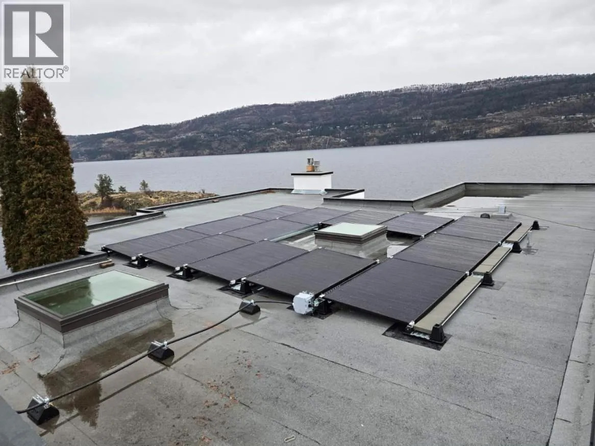 A rare opportunity to own an architectural gem on Okanagan Lake. Welcome to 15 Traders Cove Road. This striking home offers over 70 ft of private lake frontage with panoramic, unobstructed views across Traders Cove Regional Park. Thoughtfully renovated, the residence features vaulted ceilings and oversized windows that invite natural light and frame breathtaking views. The modern kitchen includes quartz counters, a gas range, and custom cabinetry. Multiple lake-facing decks create seamless indoor-outdoor living, while well a custom stair well leads to a private dock with deep-water moorage, a lakeside fire pit, and a kayak launch area. The lower-level suite, with its own kitchen and entrance, is perfect for guests, extended family, or a B&B. Surrounded by parkland, the home enjoys exceptional privacy and is alive with wildlife: birds, deer, and more. At the top of the lot, there may be potential to build a detached garage or carriage house, offering even more flexibility for future use (buyer to verify with municipality). Outside the Speculation & Vacancy Tax zone, this turn-key property is ideal as a full-time residence or seasonal getaway. Newly installed solar panels bring down operating costs and are a great compliment to the electric heat. Peaceful Traders Cove is just minutes by car or boat from downtown Kelowna. (id:27476)