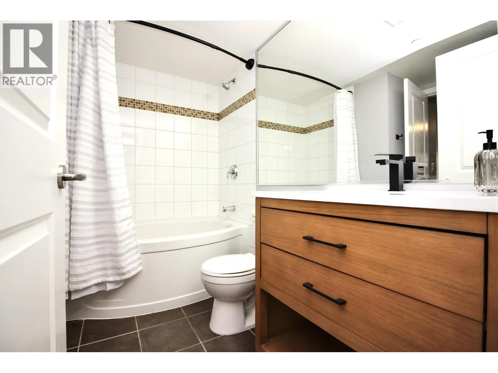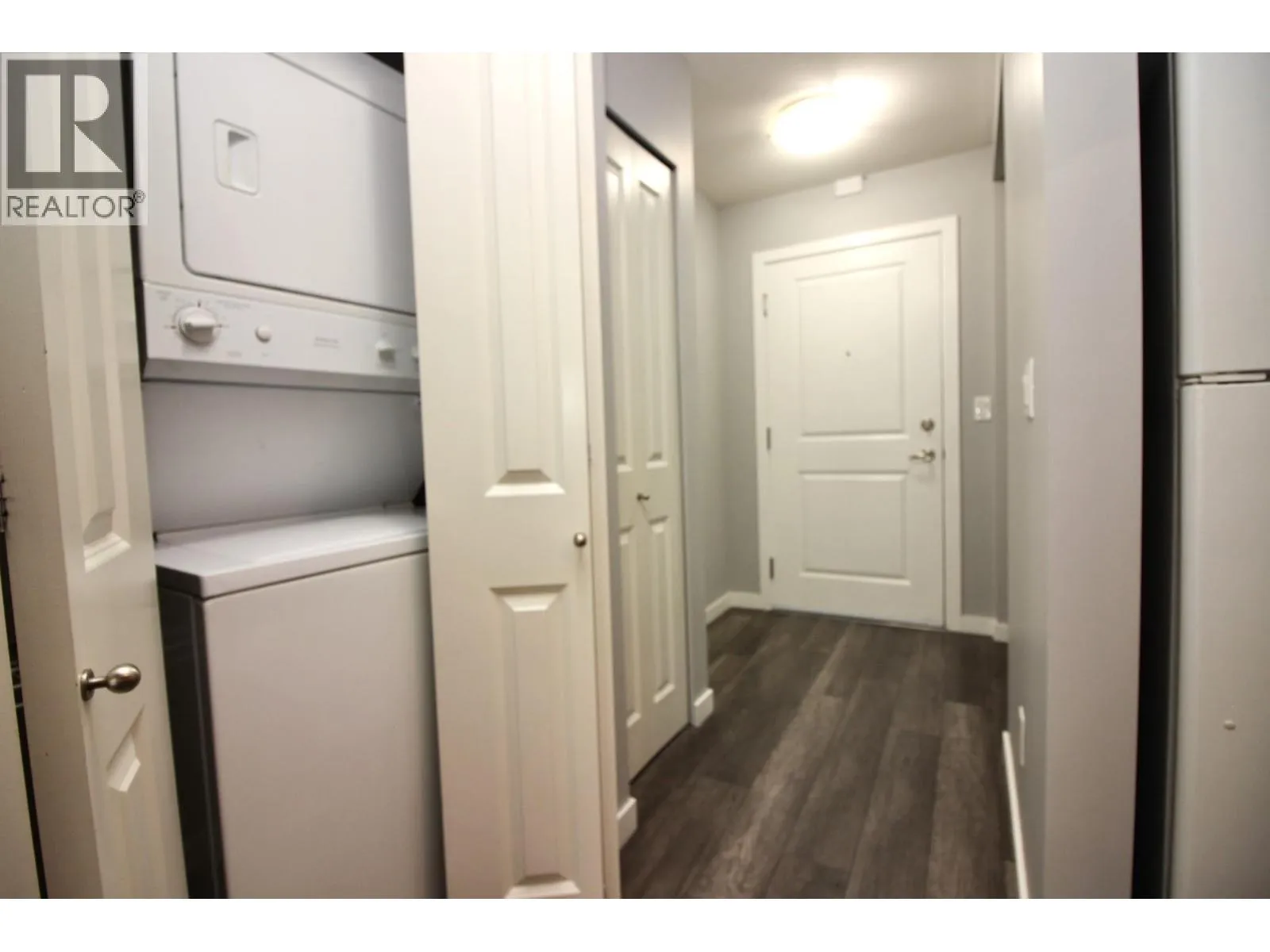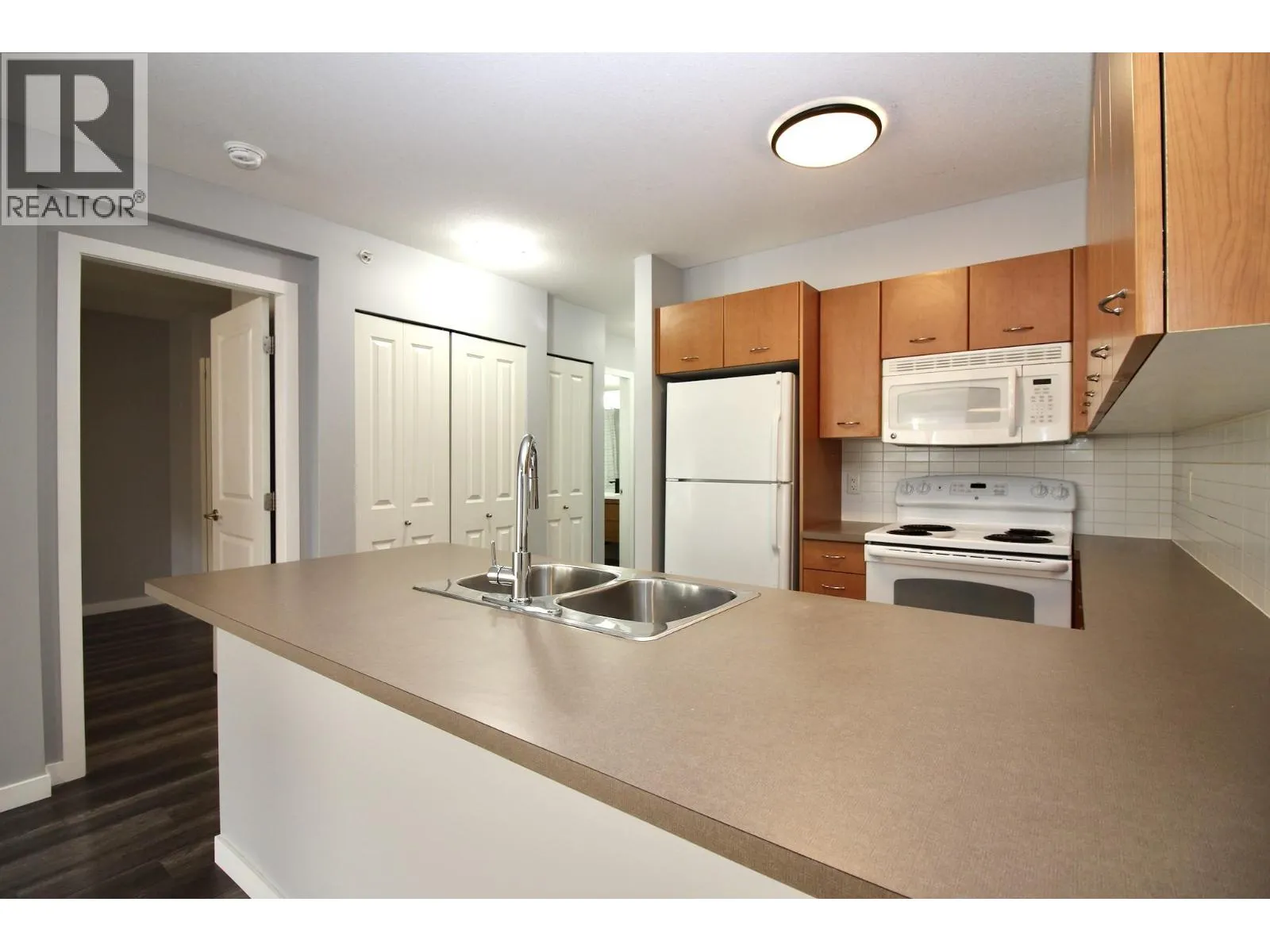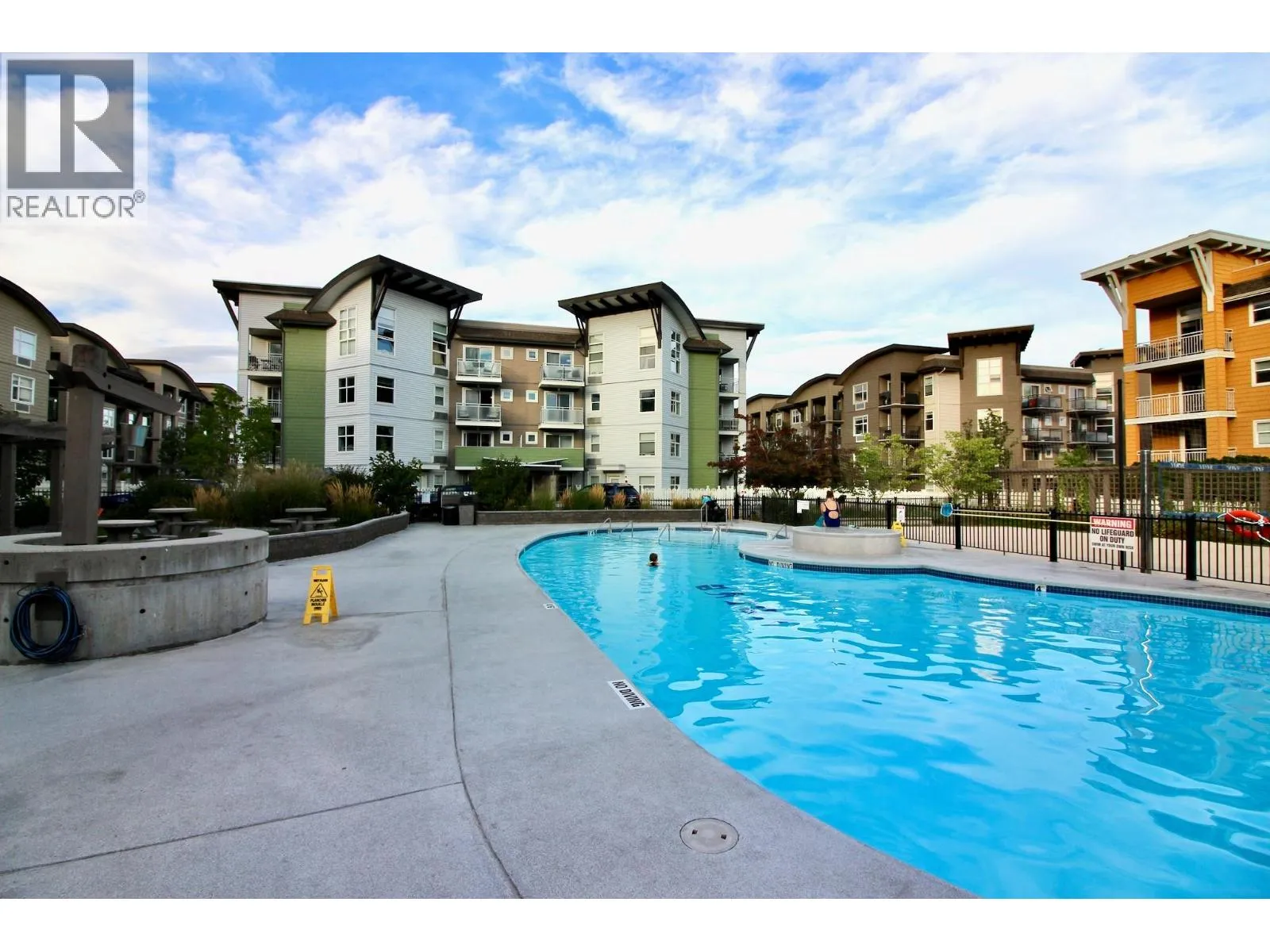 Welcome to this bright and well-appointed top-floor, west-facing 1-bedroom condo offering 697 sq ft of comfortable living in a centrally located community with exceptional amenities. The thoughtfully designed U-shaped kitchen features full-size appliances and ample cabinetry, opening seamlessly to the living and dining areasâperfect for everyday living and entertaining. A versatile den off the entrance provides ideal space for a home office or extra storage. Enjoy the convenience of in-unit laundry, a refreshed bathroom with a new vanity, and one assigned parking stall. Residents also benefit from outstanding shared amenities including a pool and beach volleyball court. Ideally situated with easy access to shopping, dining, transit, and all essential amenities, this top-floor home is perfect for first-time buyers, downsizers, or investors alike. (id:27476)