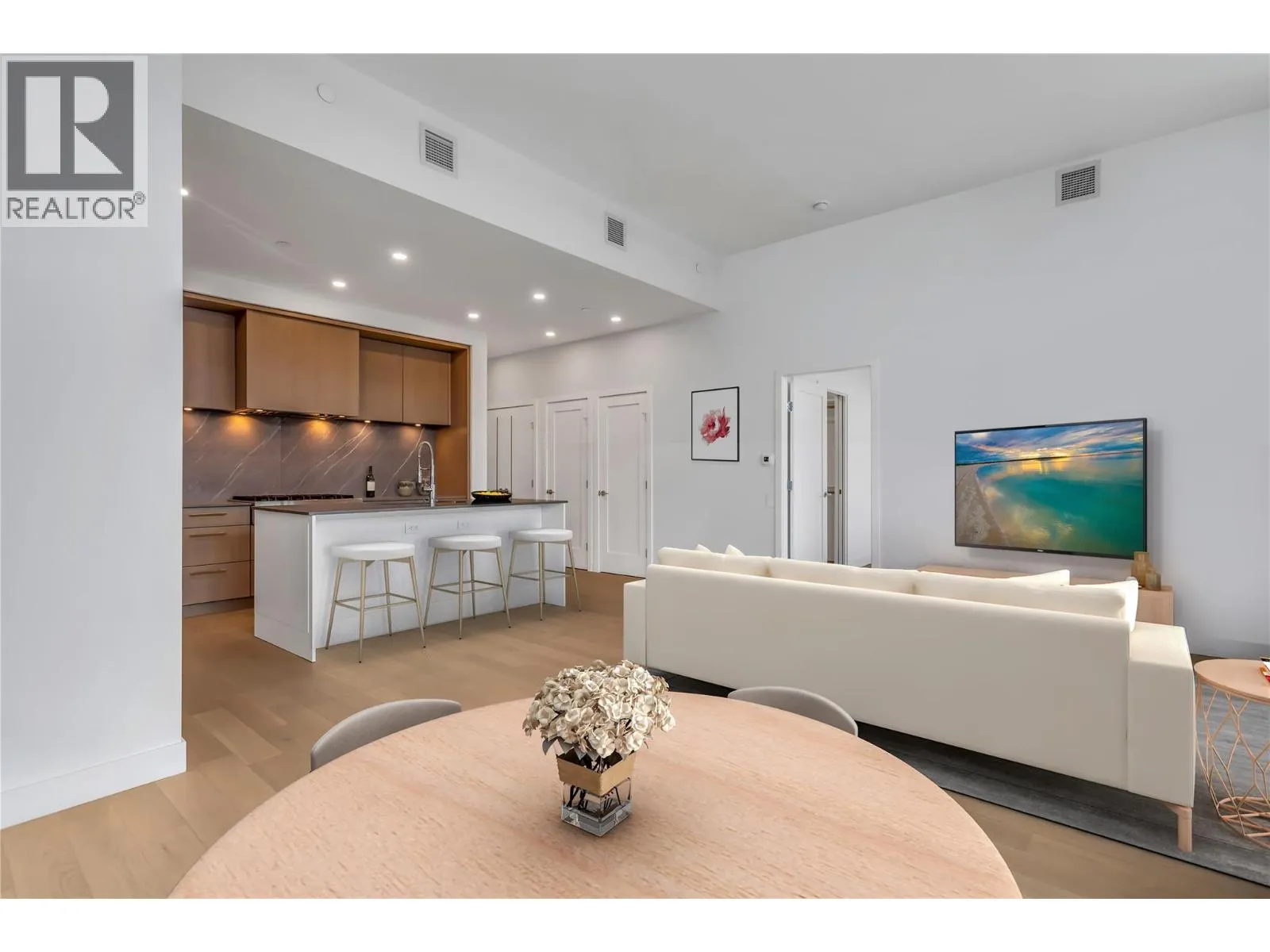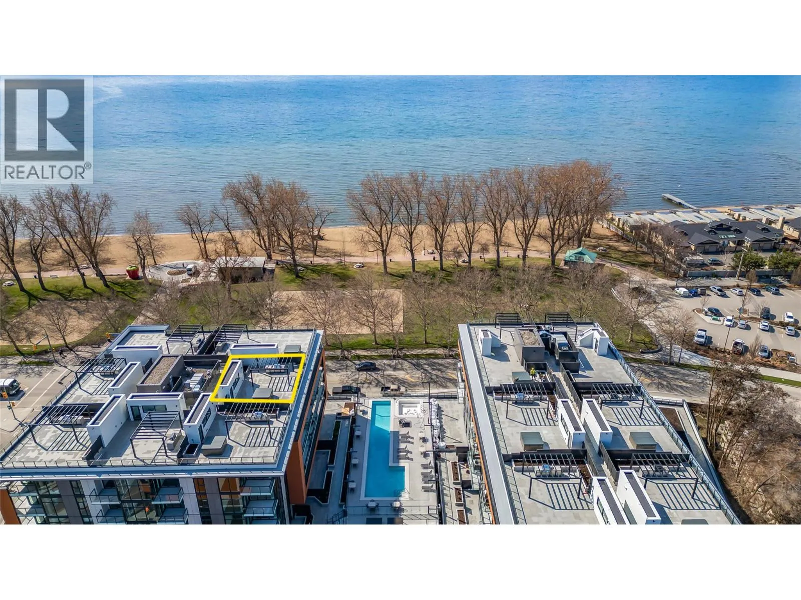 NEW LUXURY PENTHOUSE at CABAN | $40,000 IN UPGRADES. Experience the best of Kelownaâs beachfront lifestyle in the Pandosy Village, in one of the cityâs most sought-after developments. This stunning 3 bed, 2.5 bath Penthouse features numerous upgrades plus impressive 1,400 sf private rooftop patio w/ HOT TUB, OUTDOOR KITCHEN and LAKE VIEWS - ideal for entertaining or unwinding in total privacy. Inside, enjoy the renowned âCressey Kitchenâ with integrated Italian cabinetry, European hardware, soft-close drawers, porcelain slab backsplash, Jennair appliances, gas cooktop, wall oven, upgraded wine fridge, and smart storage solutions. Oversized windows and soaring ceilings flood the home with natural light, creating seamless indoor-outdoor living. The primary suite offers custom built-ins and a spa-inspired ensuite w/ double vanity & fully tiled walk-in shower. A generous second bedroom w/ its own ensuite - perfect for guests - while the oversized flex room provides versatility as a third bedroom (closet/no window), office, or media room. Additional features incl keyless entry, digital concierge, two secured parking stalls (one EV-ready) + a storage locker. Residents enjoy resort-style amenities: pool, hot tub, fitness centre, Himalayan salt sauna, yoga studio, and private cabanas. Located across from Gyro Beach in the heart of the Pandosy corridor, w/ exceptional walkability to cafés, dining, boutiques, and waterfront recreation. Luxury beachfront living at its finest. Shows AAA+ (id:27476)