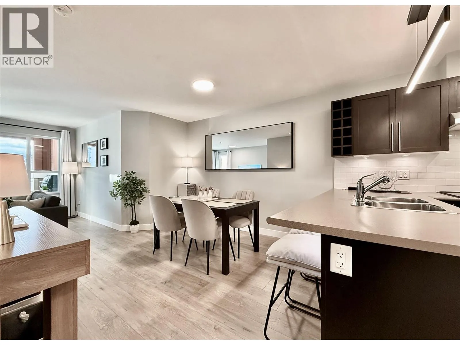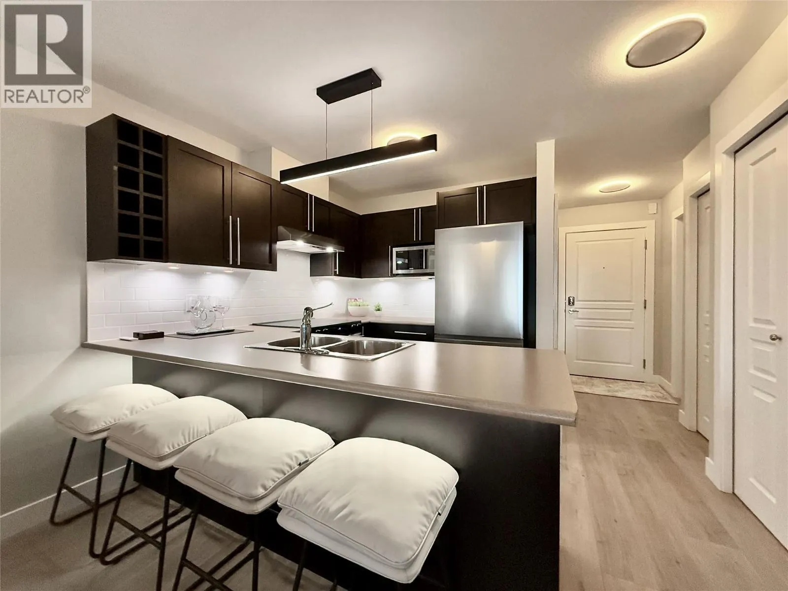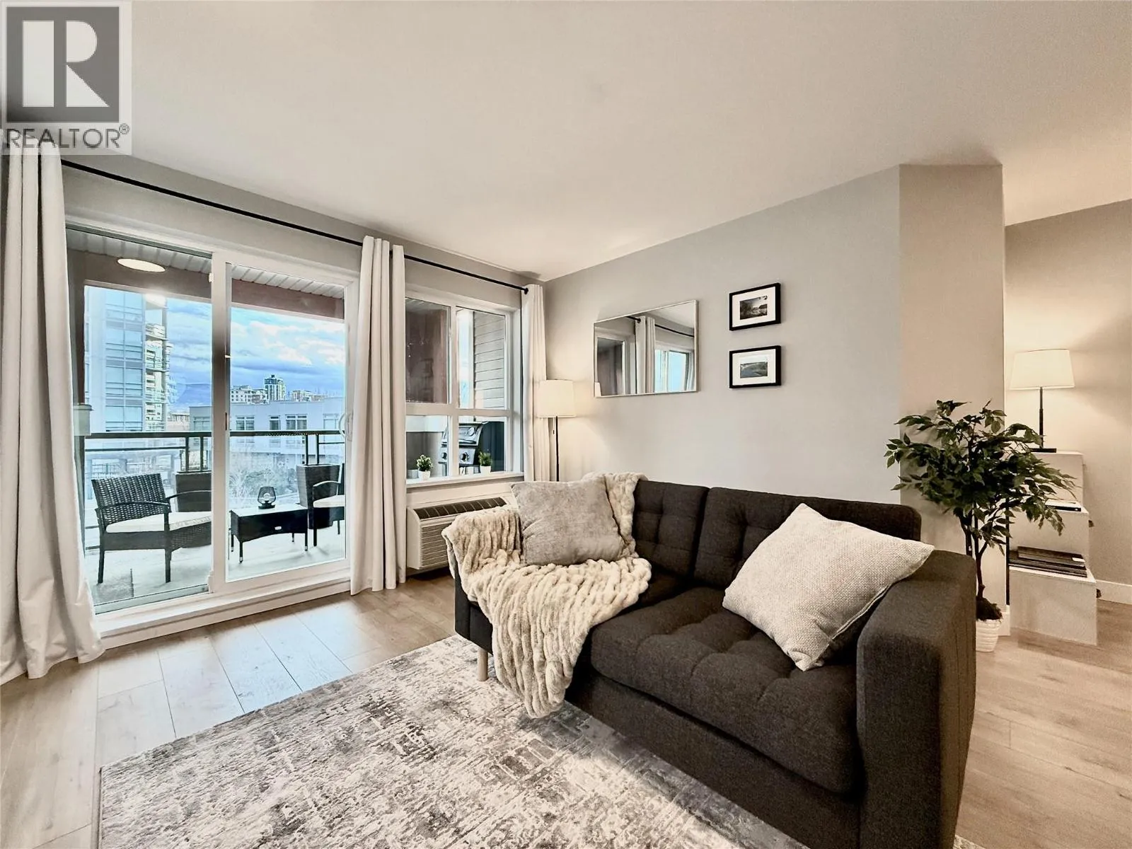 FULLY FURNISHED + ACCESSORIES AND MORE! Unpack your bags and move right into this fully furnished, completely renovated executive condo offering the largest floor plan in its class, featuring an oversized bedroom with extra sitting area plus a versatile bonus room. Located in the highly sought-after Waterscapes resort-style community, youâre steps to restaurants, bars, shopping, and the cultural district, while enjoying premium finishes, accessories, and appliances throughout. Highlights include a new 55â Samsung âThe Frameâ 4K TV, new Samsung S/S appliances, upgraded flooring, dimmable & tuneable lighting, a flush-mount bedroom ceiling fan, Whirlpool washer and dryer, Blackout curtains, new patio furniture with planter boxes, premium linens, queen bed, and an extensive collection of new furniture, decor, artwork, and accessories (all items in photos included, excluding laptop). Residents enjoy exceptional amenities including a hotel-style pool, two hot tubs (one heated year-round), a fully equipped fitness centre, and the Cascade Lounge with billiards, fireplace, BBQs, and more, this building is directly connected to the amenities so no need to go outside. The 735 sq. ft. condo also offers underground parking next to the elevator, a fully covered balcony with propane BBQ, A/C, espresso kitchen cabinetry, oversized bedroom with walk-in closet, office-style bonus room (or guest space), shower/tub combo, pet-friendly, storage lockers, and underground EV charging stations. (id:27476)