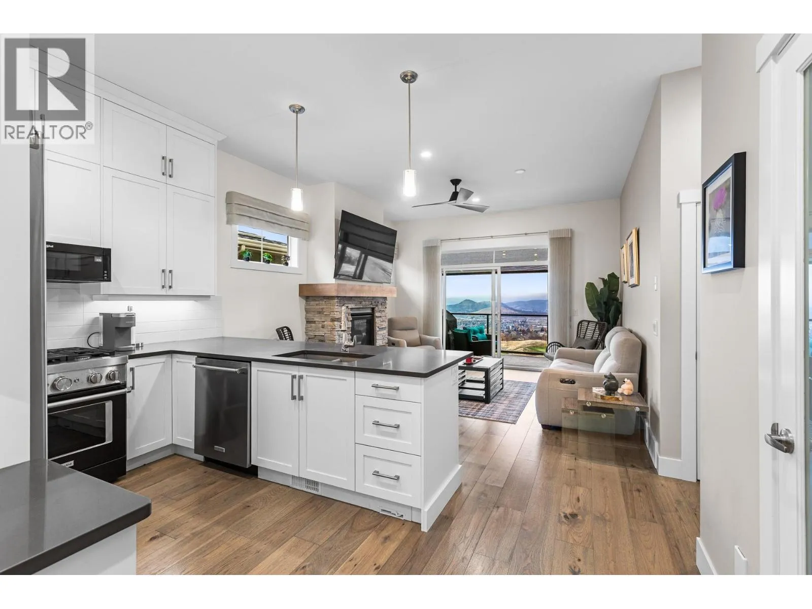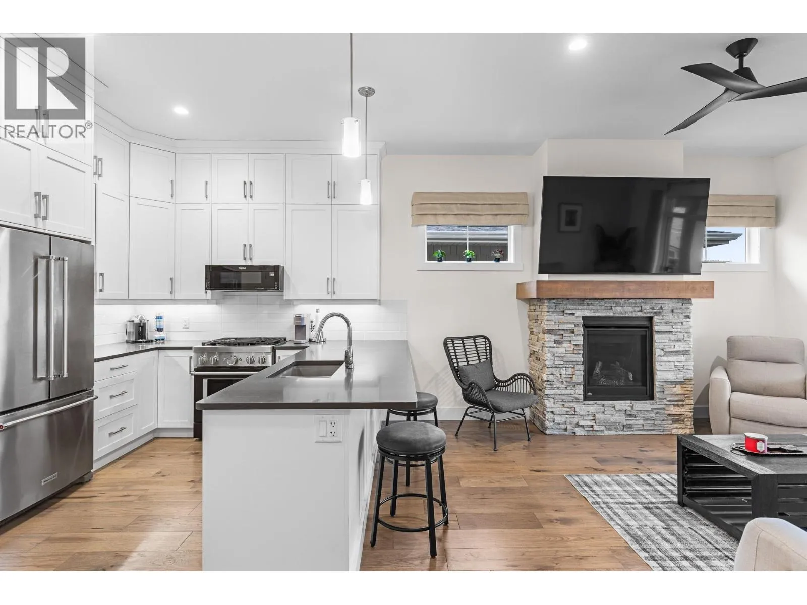 WORTH CANCELLING WEEKEND PLANS FOR! ""SOUGHT-AFTER"" SOLSTICE COMMUNITY AT EXCLUSIVE TOWER RANCH! The stellar reputation, a VERY PET FRIENDLY community + a STYLE OF HOME OWNERSHIP WITH A CLEAR LOGICAL ADVANTAGE and UNSURPASSED VIEWS! Light and bright quartz kitchen with high end appliances including a commercial Wi-Fi gas range + quality cabinets that elevate to the ceiling for added storage. VIEW living room with feature gas fireplace. Spacious dining room that will accommodate larger furniture for family gatherings. King size primary with deluxe ensuite and convenient laundry complete the main floor. The lower level is equally appealing with an oversized recreation/family room, ANOTHER PRIMARY with a 3-piece ensuite + the 3rd bedroom and another full bath. Tons of storage on the Lower level. Owners have use of the fitness center, media room & club house. Walking, hiking & biking trails to Tower Ranch Mountain + a few minutes to all major shopping, restaurants, pubs + other amenities. When you live here, you own your home without buying the land. You own your home from the ground up and pay a moderate fee for an ironclad 99-year renewable lease for the land in a professionally managed community with beautifully maintained grounds and shared amenities. By not purchasing the land, you pay less and keep cash flow available to make the most of your active lifestyle. Lease is 832.23, Community fee is 20.00, strata fee is 94.82. (id:27476)