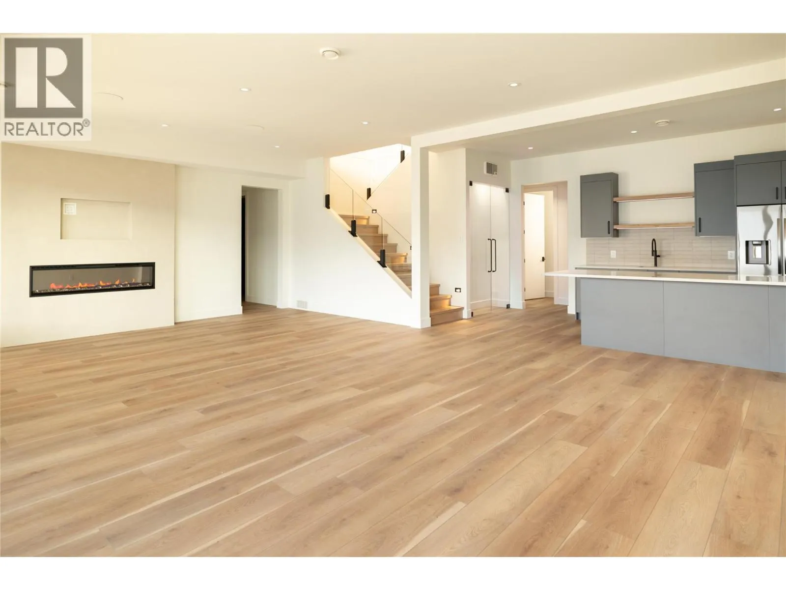 Stunning lake views from this newly completed home on the most private street in North Clifton Estates. This 4110 square foot luxury home features a salt water pool with an auto cover, yard space, a 2.5 car garage, plus driveway space for 2 cars. Enjoy the quiet location beside the mountain with endless hiking trails, and yet still be only an 8 minute drive to Kelowna's lively downtown core. Featuring 4 bedrooms, 3.5 bathrooms and an office, this home is open concept with an elegant and organic modern vibe. There are 2 4 panel multi slide doors in the upper and lower levels, creating a beautiful indoor/outdoor feel. Features include a climate controlled wine room, 2 fireplaces with custom finishes, a gorgeous lighting package, soaring ceilings and hardwood floors on the main level. Extra luxuries include built in speakers, a security system, epoxy floors in the garage and a 2 zoned heating and cooling system. The lower level rec room has tones of space, plus there is another open space for either a theater room, gym or playroom. Professional landscaping includes a fenced yard, with room for garden boxes or extra space for the dogs and kids, and low maintenance, irrigated plantings with syn lawn- which means no mowing:) (id:27476)