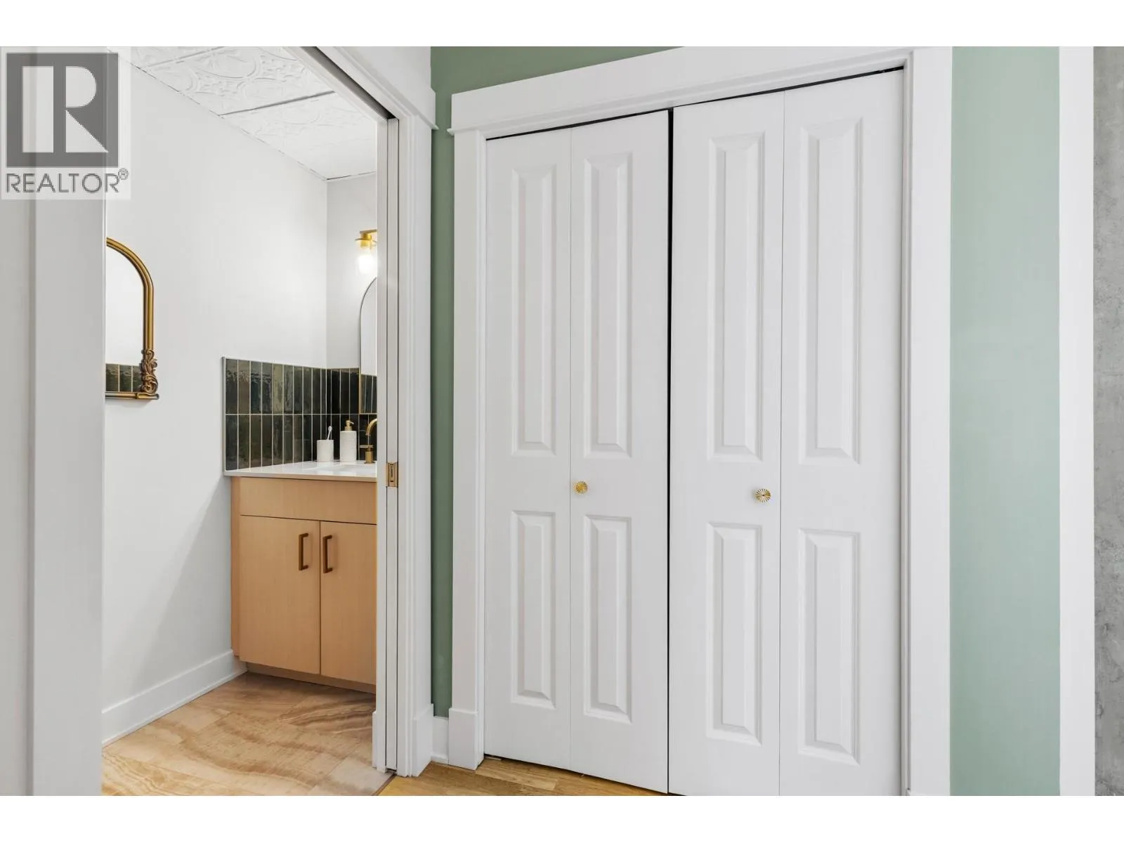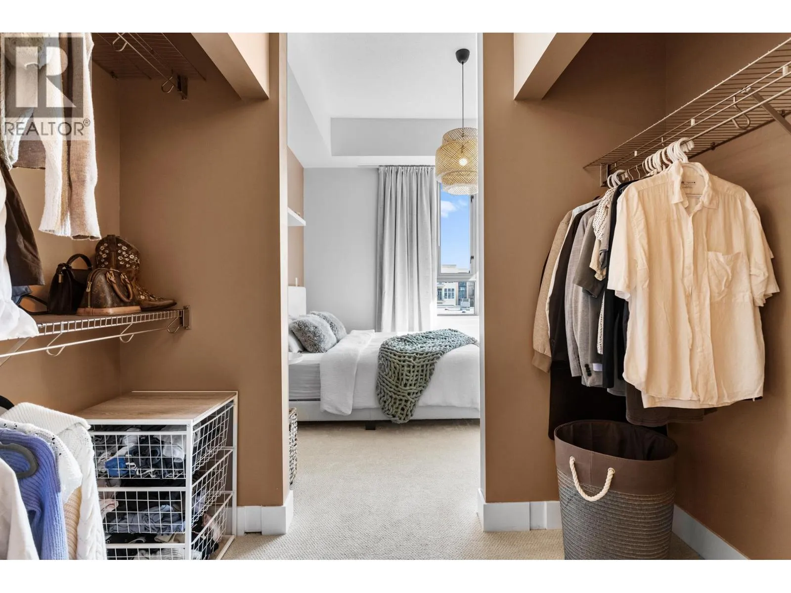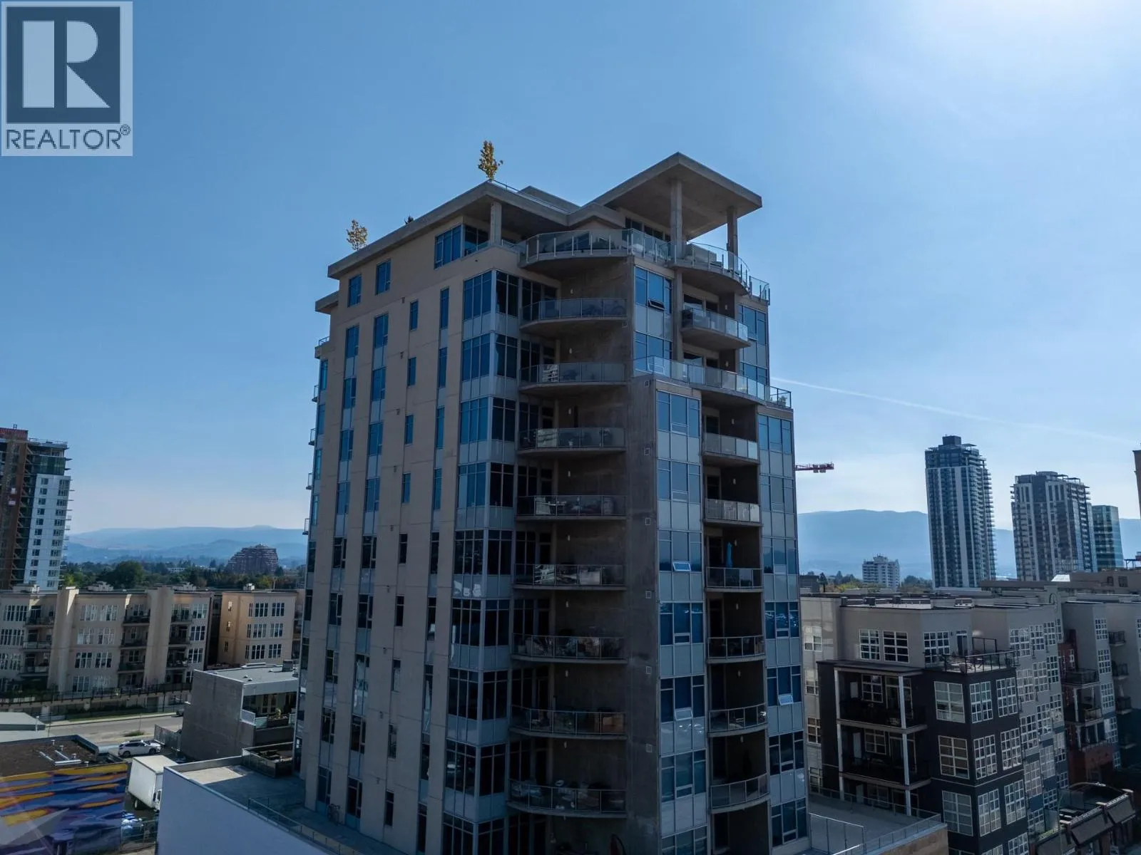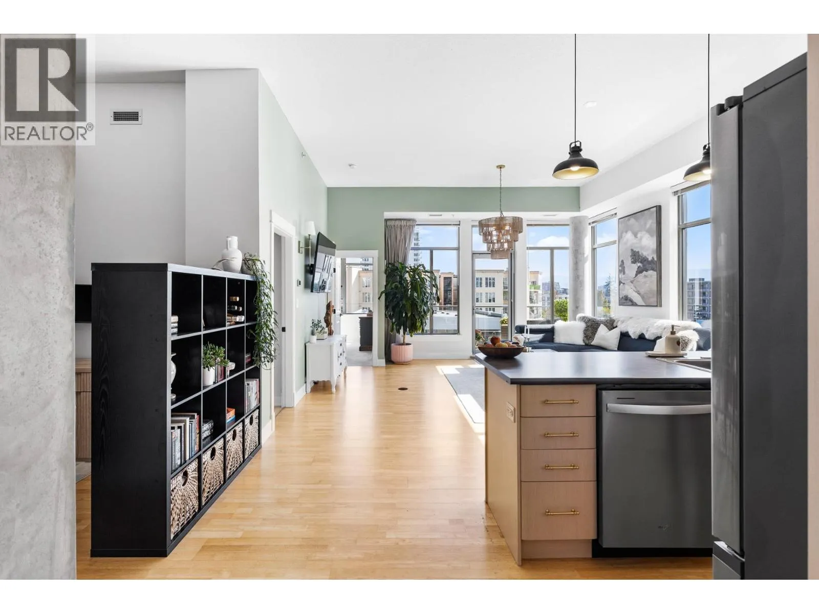 Step into a stylish new lifestyle in one of Kelownaâs most sought-after concrete high-rises. This architecturally striking one-bedroom plus den, 1.5-bath home is among the largest one-bedroom layouts in the city, designed to impress with its soaring 11-foot ceilings and oversized SE facing windows that flood the home w/ sunlight and frame views of the city & mountains. The generous size, natural light, and modern aesthetic make this home truly stand out. Recently updated from top to bottom; with newer appliances, heating & cooling system, renovated bathrooms with sleek Dekton countertops, new carpet in the bedroom, fresh paint, and updated lighting. Exposed concrete features highlight the buildingâs original architecture while lending a unique, modern edge. The open layout flows seamlessly, with a spacious den large enough to serve as a home office, dining room, or guest space. Step onto your private balcony with a gas hookup, perfect for summer barbecues and enjoy the peace of the quiet side of the building while being only steps from the vibrancy of Kelownaâs Cultural District. Entertainment venues, dining, cafes, pilates studios, and galleries are right outside your door, with the lakefront and upcoming UBCO downtown campus just steps away. The building offers a fitness room, secure bike storage, a storage locker, underground parking, and lounge that opens onto a social deck for private gatherings or community events. Bring your furry friends 2 cats are permitted. (id:27476)