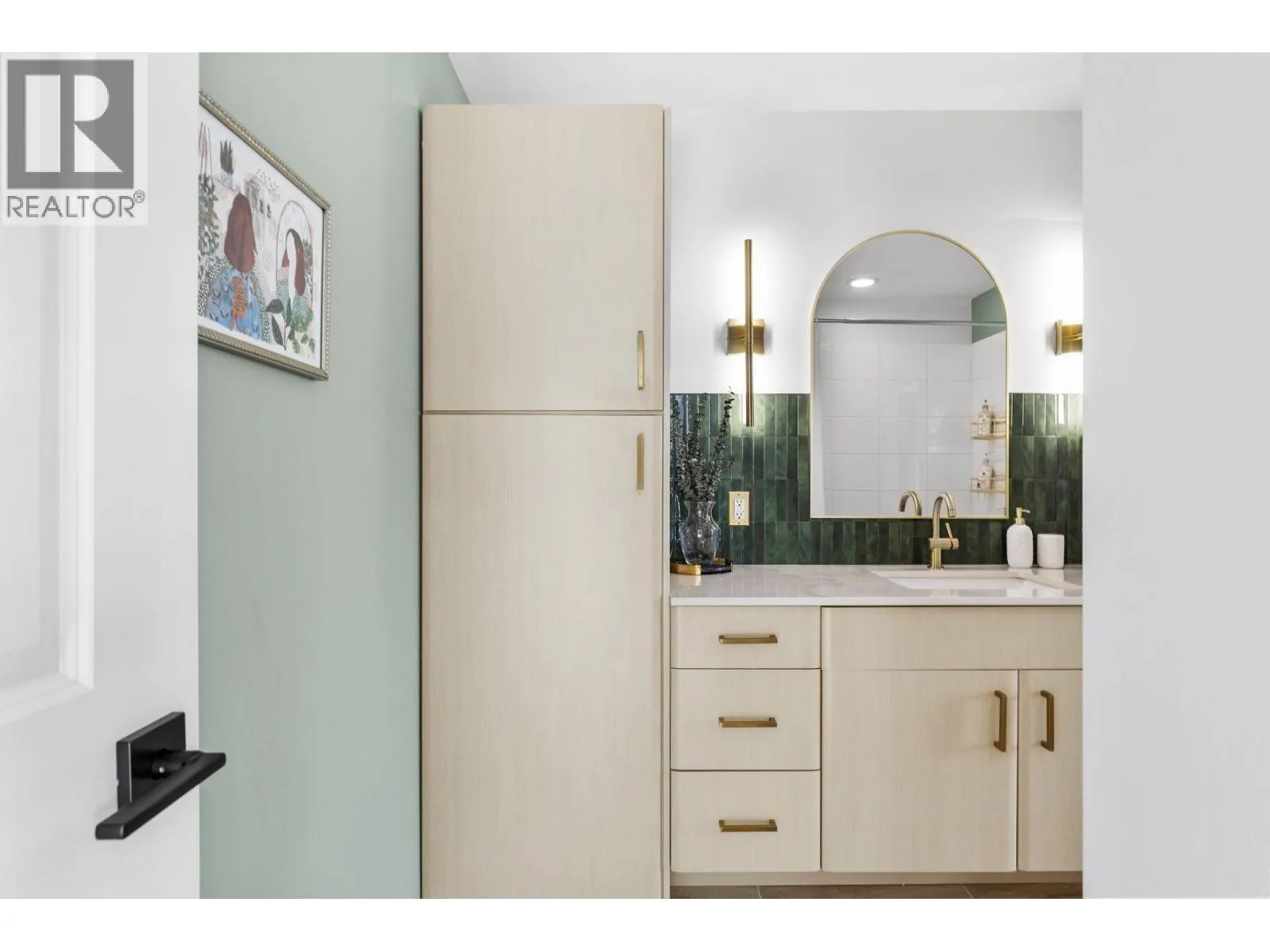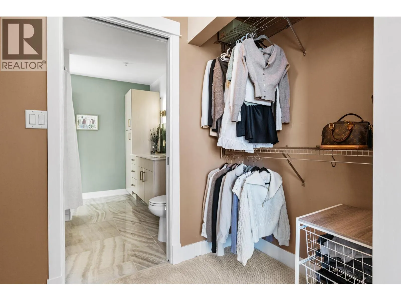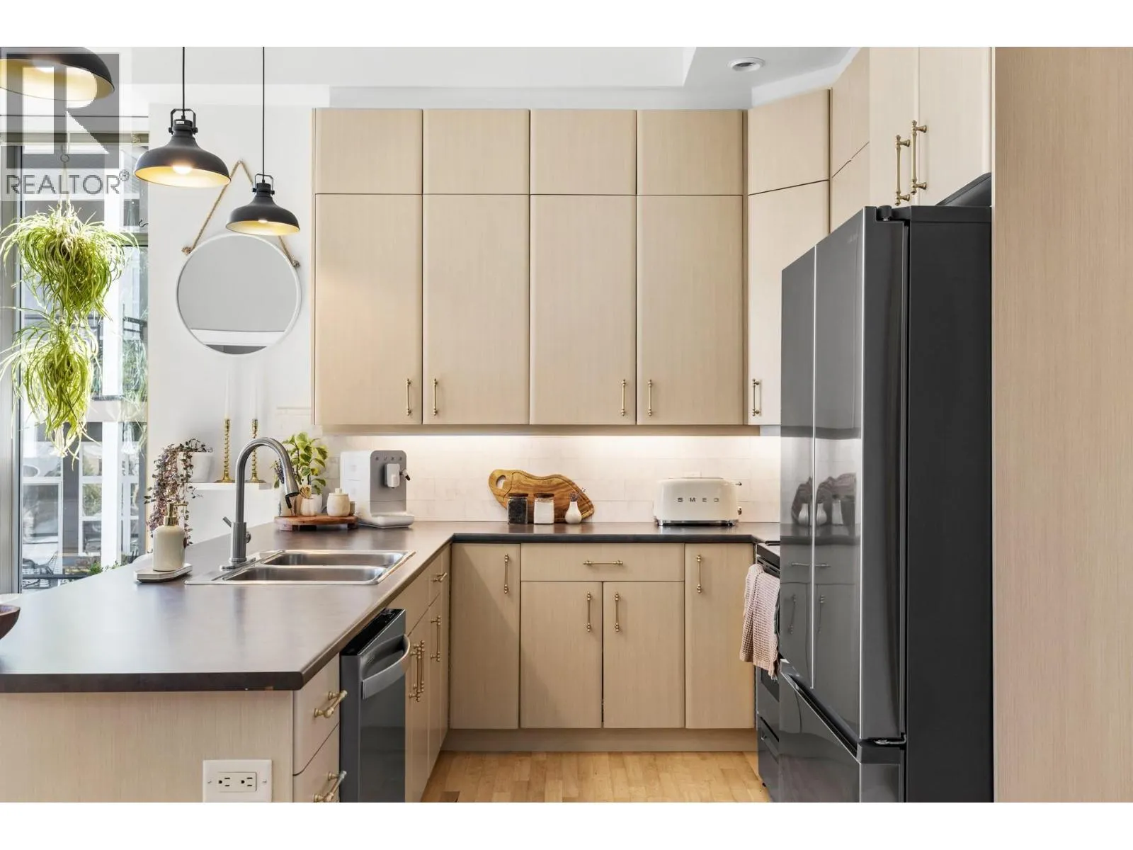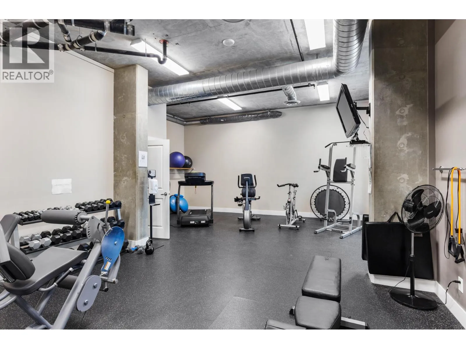 Step into a stylish new lifestyle in one of Kelownaâs most sought-after concrete high-rises. This architecturally striking one-bedroom plus den, 1.5-bath home is among the largest one-bedroom layouts in the city, designed to impress with its soaring 11-foot ceilings and oversized SE facing windows that flood the home w/ sunlight and frame views of the city & mountains. The generous size, natural light, and modern aesthetic make this home truly stand out. Recently updated from top to bottom; with newer appliances, heating & cooling system, renovated bathrooms with sleek Dekton countertops, new carpet in the bedroom, fresh paint, and updated lighting. Exposed concrete features highlight the buildingâs original architecture while lending a unique, modern edge. The open layout flows seamlessly, with a spacious den large enough to serve as a home office, dining room, or guest space. Step onto your private balcony with a gas hookup, perfect for summer barbecues and enjoy the peace of the quiet side of the building while being only steps from the vibrancy of Kelownaâs Cultural District. Entertainment venues, dining, cafes, pilates studios, and galleries are right outside your door, with the lakefront and upcoming UBCO downtown campus just steps away. The building offers a fitness room, secure bike storage, a storage locker, underground parking, and lounge that opens onto a social deck for private gatherings or community events. Bring your furry friends 2 cats are permitted. (id:27476)