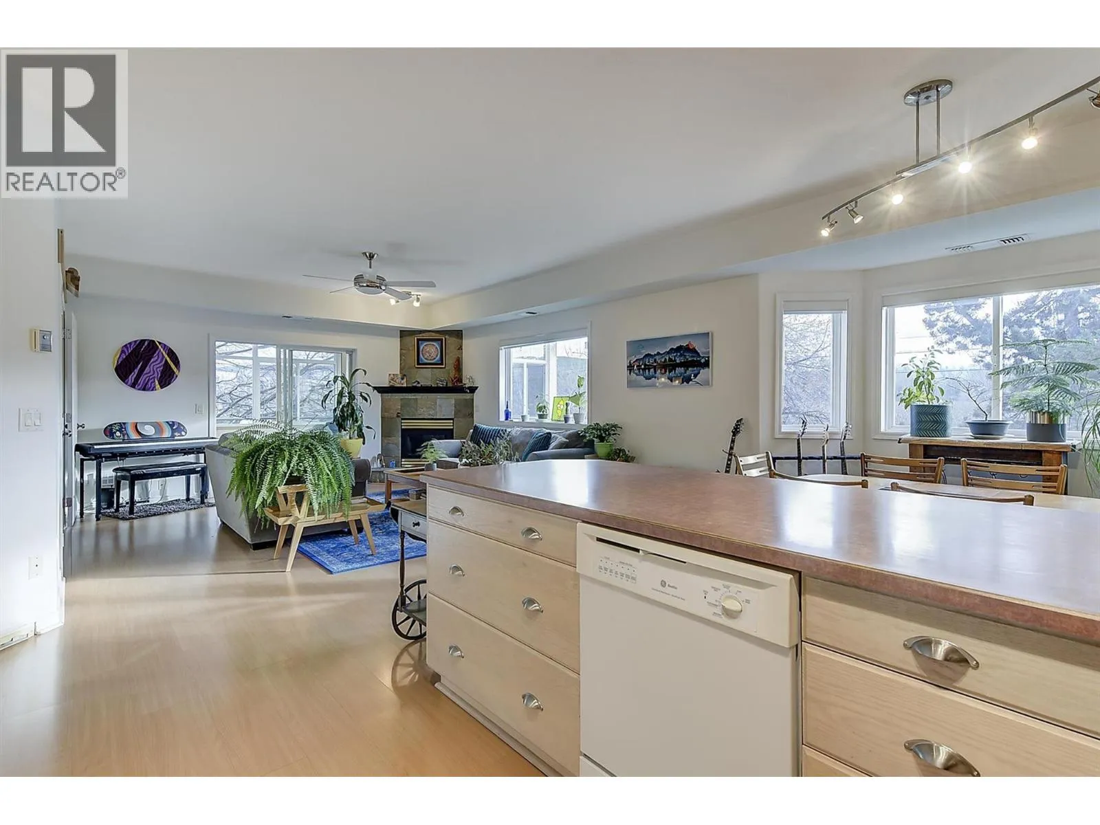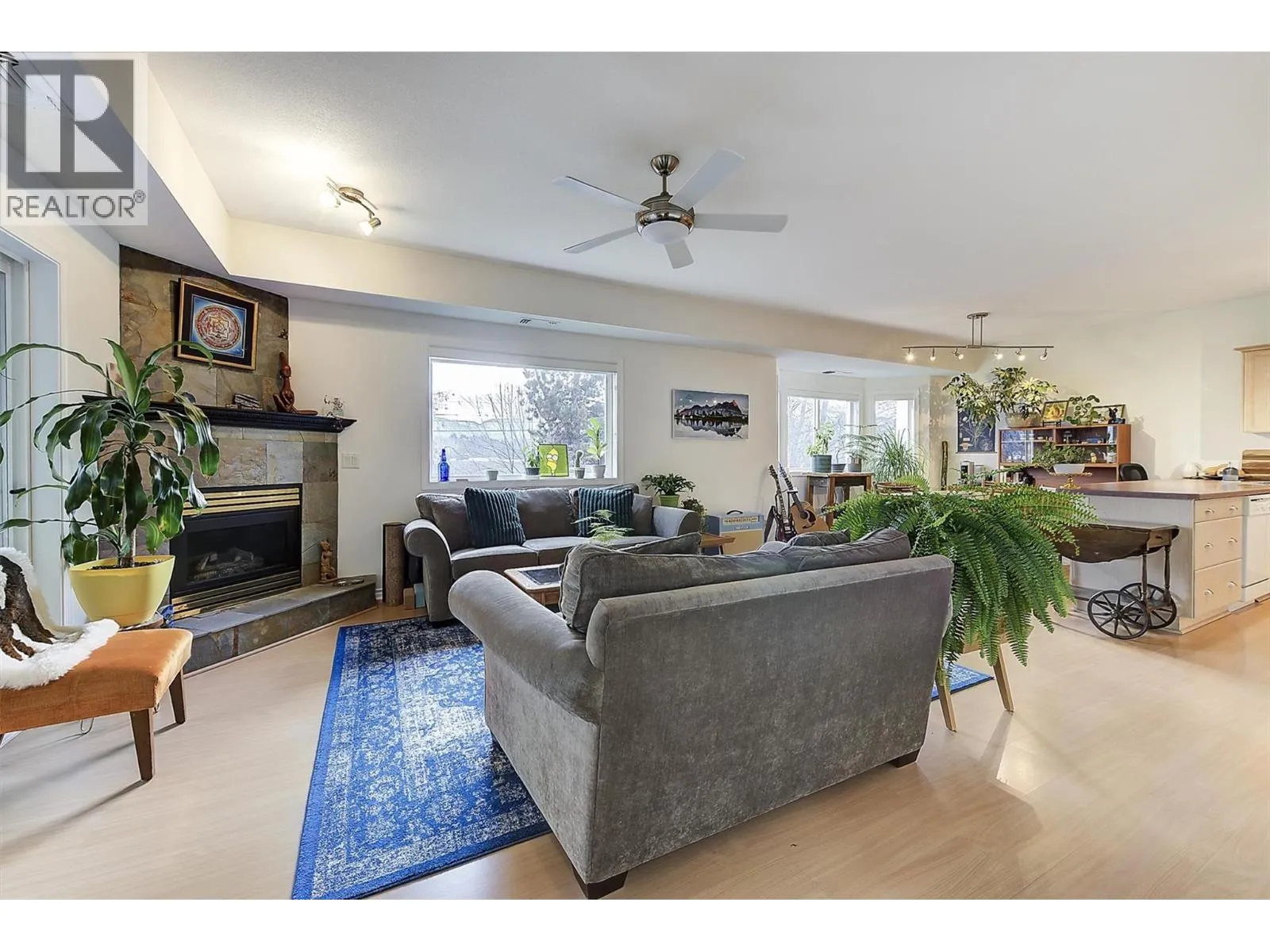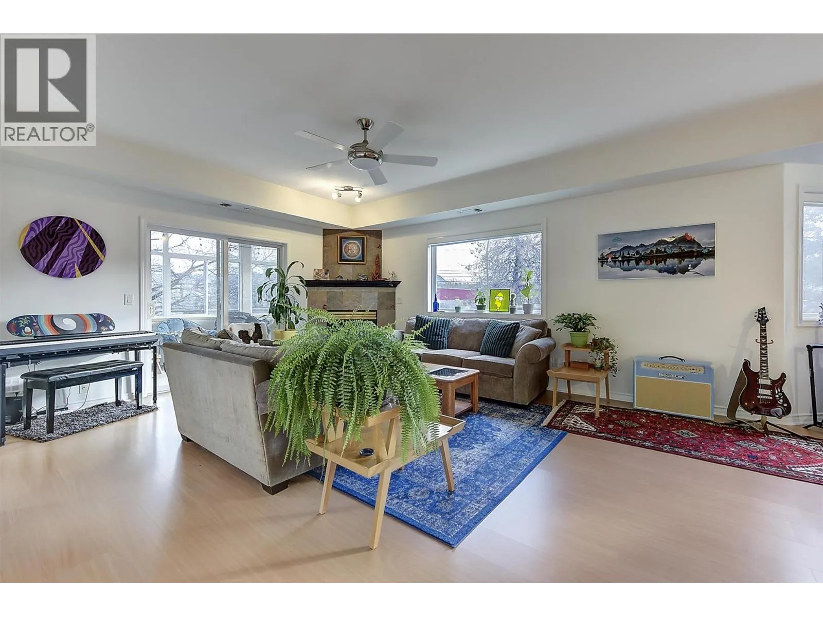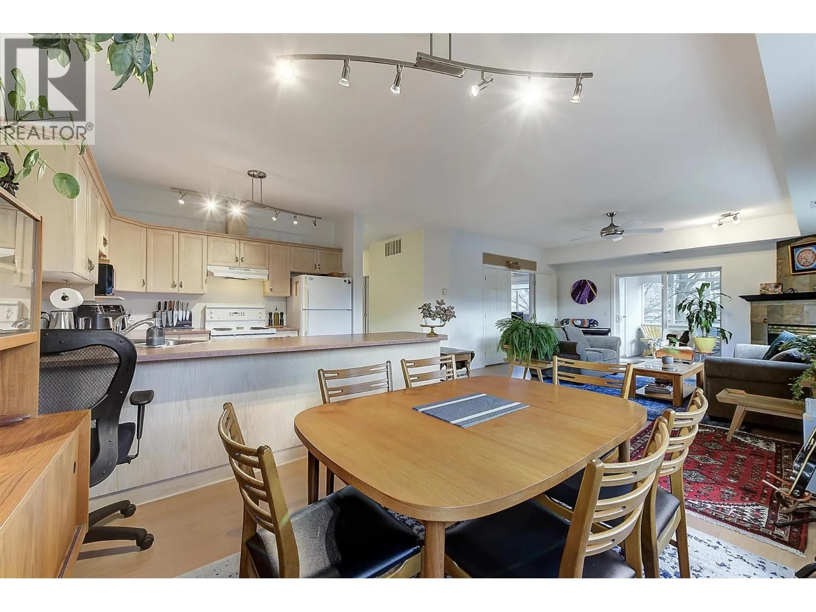Bright and spacious CORNER UNIT with resort-style amenities! This pristine 2-bedroom 2-bathroom home has 9 foot ceilings and wrap around windows that fill the space with natural light. The open-concept kitchen, dining, and living area, enhanced by a cozy gas fireplace, seamlessly flows onto an enclosed, 174 sq ft patio/sunroom, making it ideal for year round use. The generous primary bedroom offers a private ensuite with 5 ft walk-in shower, while the versatile second bedroom features double-doors that open into the living area, allowing flexible use as a bedroom, home office or expanded living space. Additional highlights include central air, large in-suite laundry room, built-in vacuum, storage locker (68â x 60â) conveniently located on the same floor, and hot water included in strata fees. Secure, heated underground parking is included, with additional parking outside that is available on a first come, first serve basis. Residents enjoy resort-style amenities that include a heated outdoor salt water pool, hot tubs, fitness centre, guest suite, community room with pool table and kitchen, and beautifully landscaped grounds, all within a secure, well-managed strata. Pet friendly, Arboretum II allows one dog or cat (max 40 cm at shoulder) and is conveniently located near Orchard Park, Costco, transit, recreation and walking trails. A perfect blend of comfort, convenience, and lifestyle living! (id:27476)