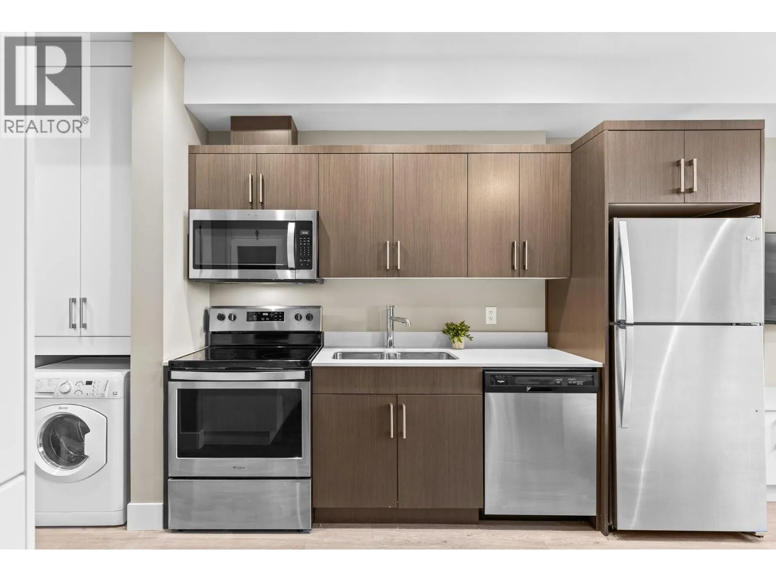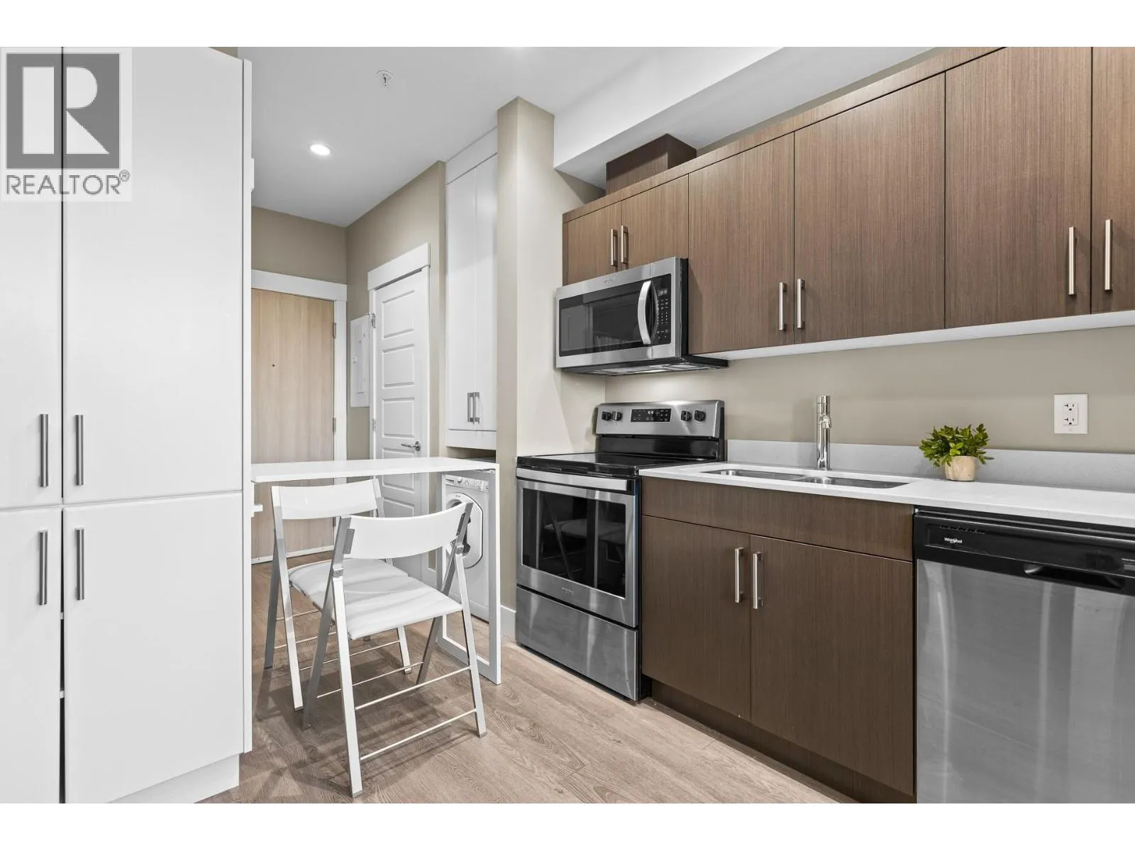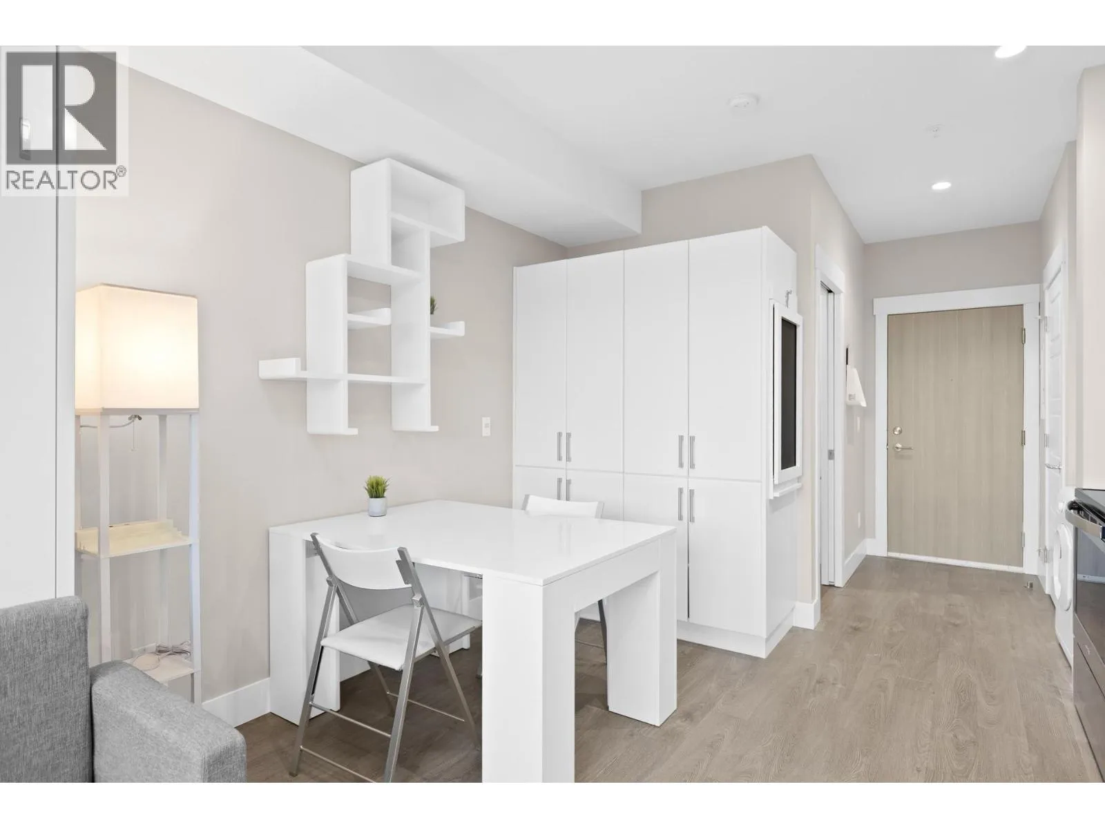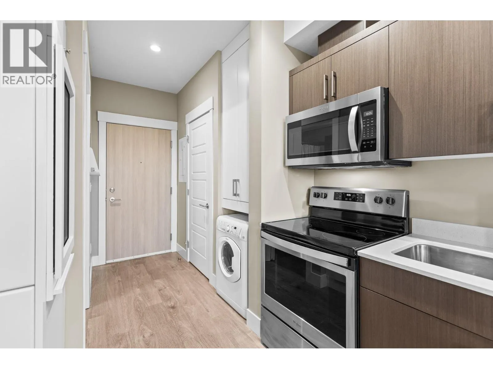 Welcome to Cambridge House - offering exceptional urban convenience in the heart of Kelowna. This 319 sq ft south-facing micro suite has been thoughtfully upgraded to maximize function and comfort featuring a custom Murphy Bed and built-in storage. The home is freshly painted and offered fully furnished, including sofa, TV, standing lamps, desk, chairs, and more, providing a turnkey living opportunity for owners or investors. The efficient layout includes stainless steel appliances, durable vinyl plank flooring, an in-suite washer/dryer, a 3-piece bathroom, and an in-wall heat pump/AC unit for year-round climate control. A covered parking stall and convenient same-floor 3' x 4' storage locker are included. Residents of Cambridge House enjoy an impressive selection of amenities, including a fully equipped fitness centre, residentsâ lounge with games and seating areas and a landscaped garden terrace with BBQ area. The building is also pet-friendly (up to two pets, max 25 lbs each). Located steps from downtown, transit, and everyday amenities, this property appeals to first-time buyers, students, and investors seeking low-maintenance living in a central location. (id:27476)