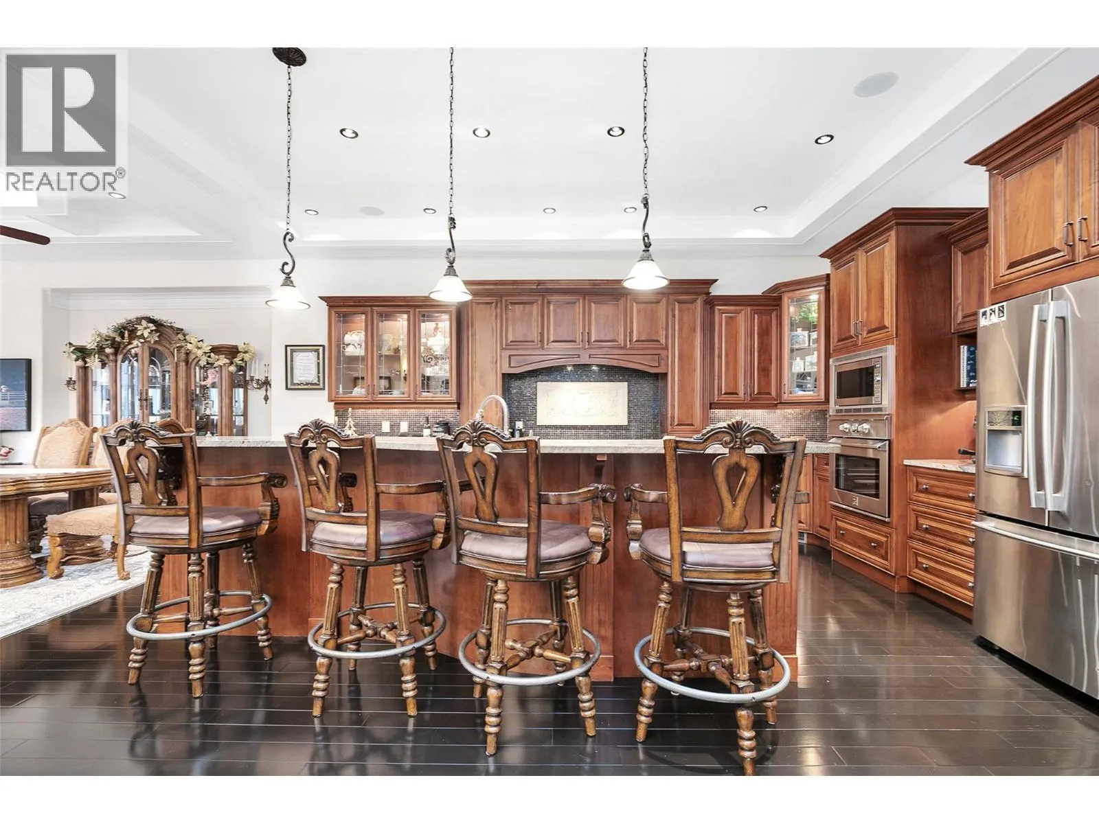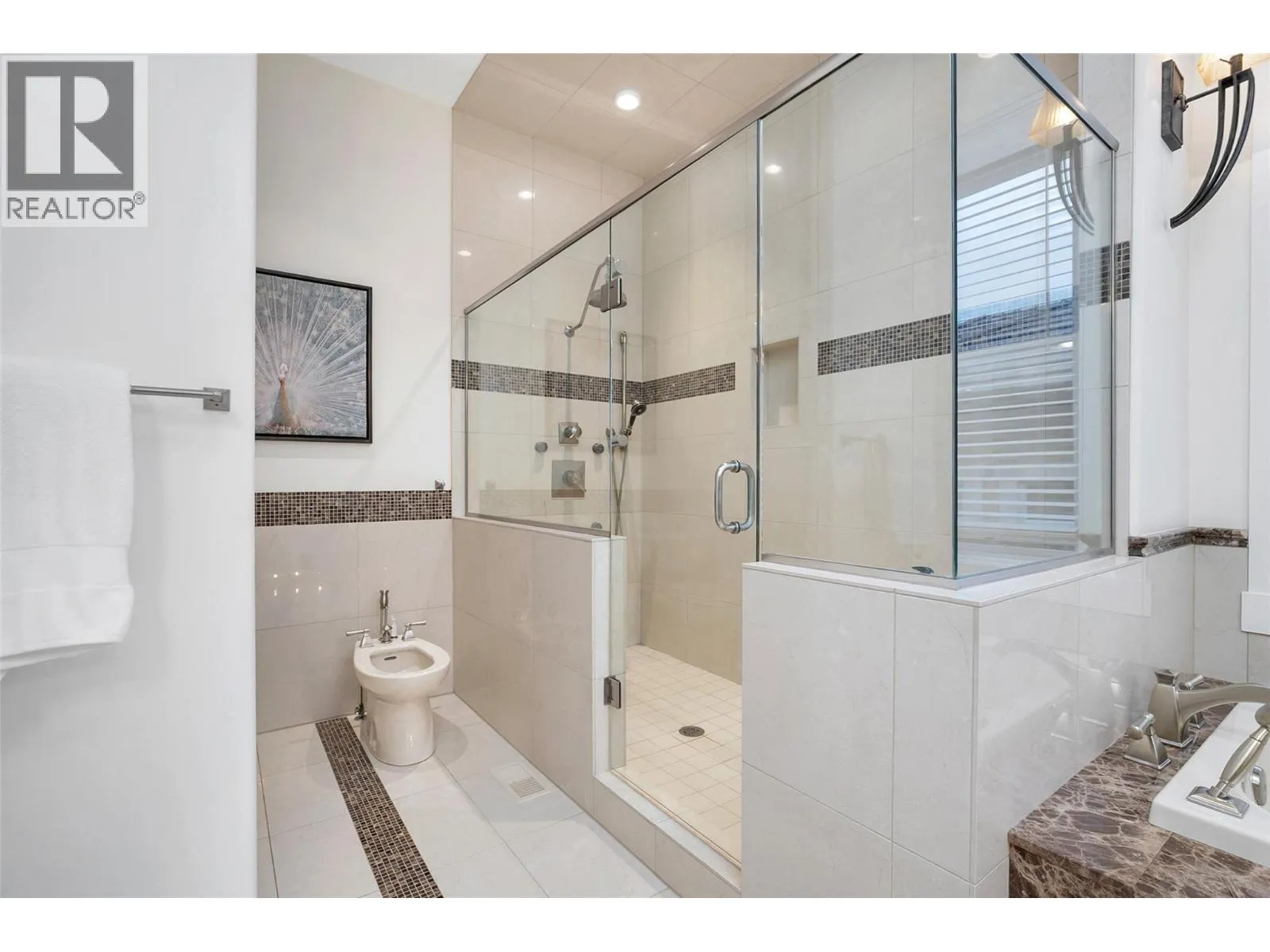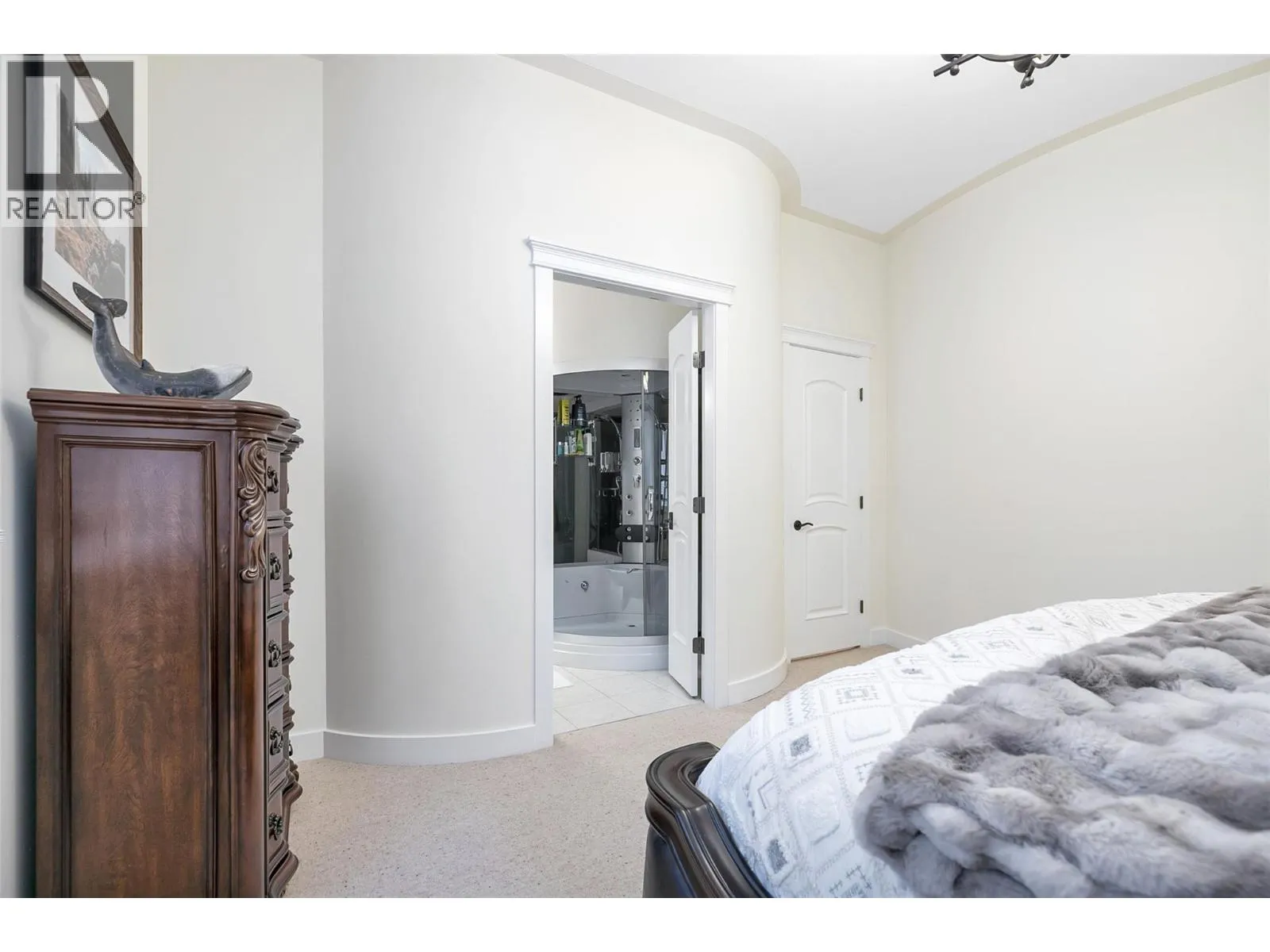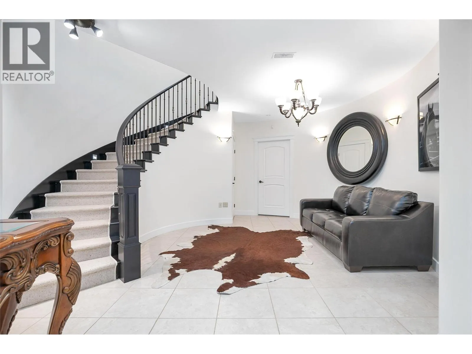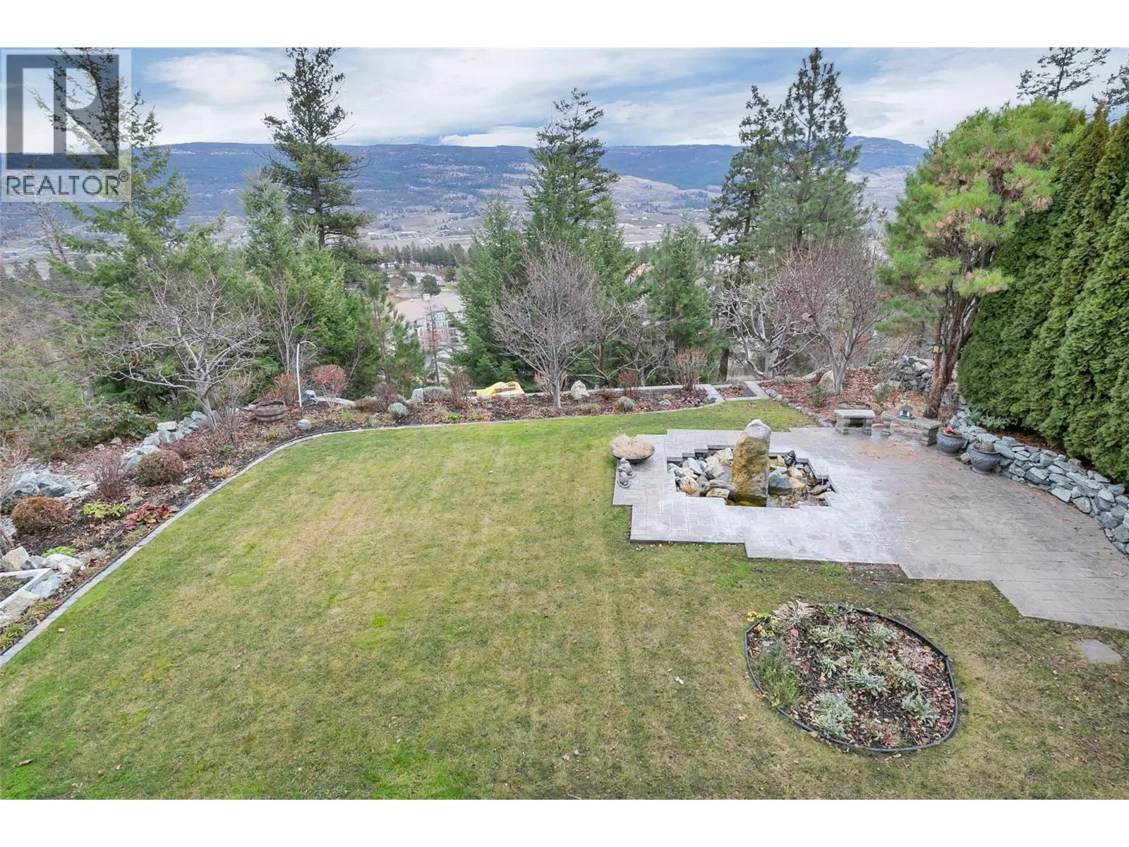 Welcome to an exceptional residence where timeless elegance meets breathtaking scenery. Enter through the grand rotunda foyer and be immediately drawn into the expansive living room, an architectural showpiece with high ceilings and walls of windows framing uninterrupted valley and mountain views. Designed for both refined entertaining and everyday luxury, the chefâs kitchen is a true centerpiece featuring an oversized island and stainless steel appliances. The adjoining dining room easily accommodates large gatherings while enjoying stunning outlooks. The primary suite is a private retreat offering walk-out access, sweeping vistas, and a spa-inspired ensuite finished in granite and tile, complete with a Jacuzzi soaker tub, bidet, and walk-in closet, creating an ideal sanctuary at dayâs end. A dedicated office and a second bedroom or guest suite with a multi-jetted shower complete the upper level. A curved custom staircase leads to the finished walk-out lower level, offering a spacious recreation room, entertainment kitchen and bar, theatre room, gym space, two additional bedrooms, and a full bathroom. Outdoors, covered patios and a fountain-accented backyard provide the perfect setting for entertaining or quiet relaxation. Ideally located near golf courses like The Okanagan Golf Club, parks and trails, and everyday amenities, with convenient access to YLW, this home offers luxury, scale, and unforgettable views in a highly sought-after setting. Make it yours today! (id:27476)