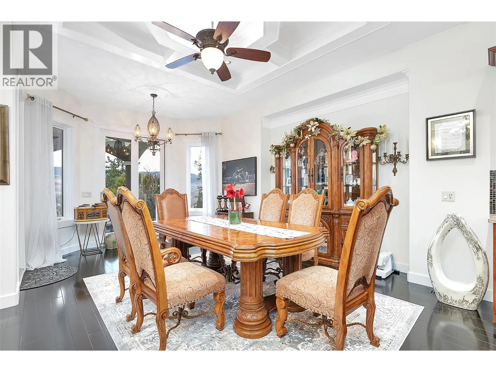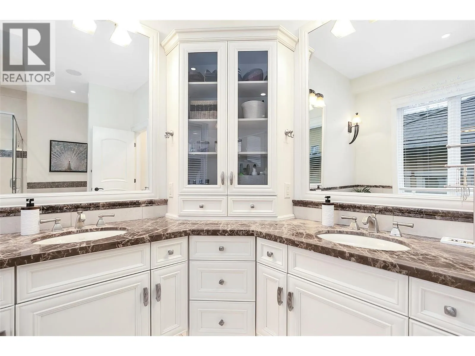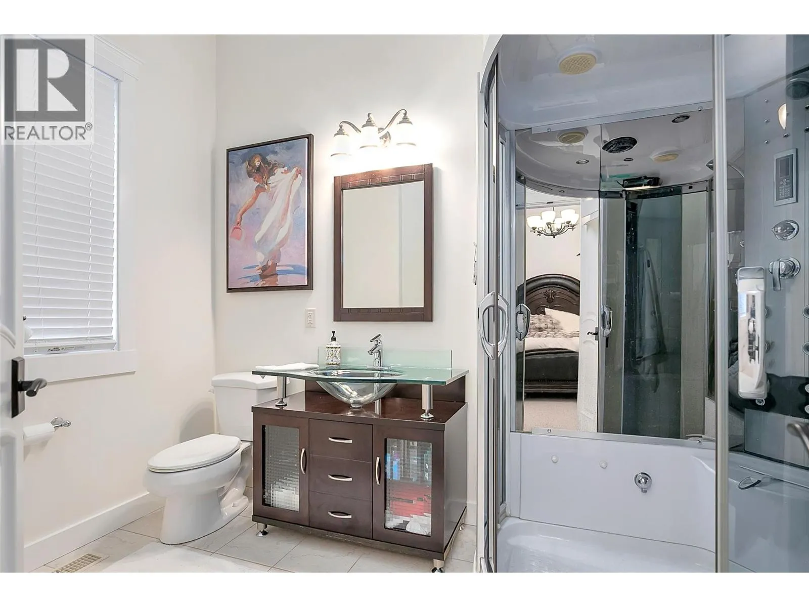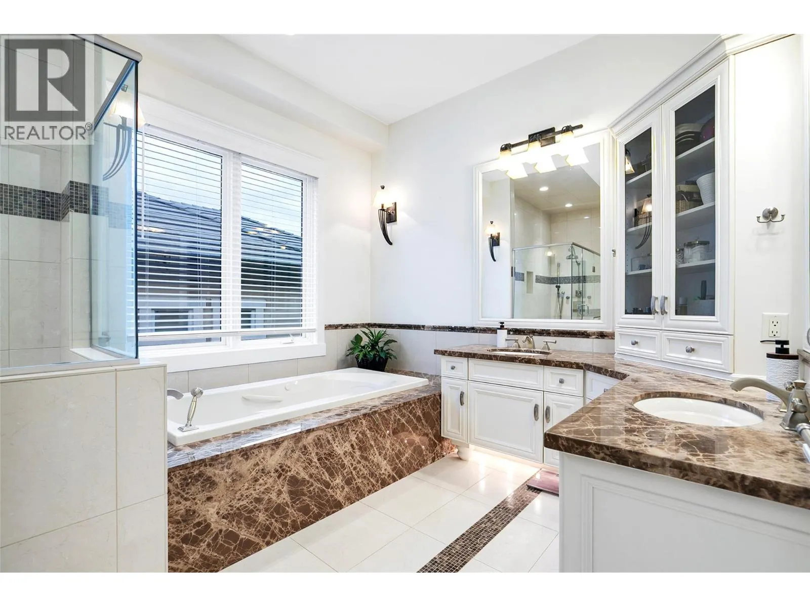 Welcome to an exceptional residence where timeless elegance meets breathtaking scenery. Enter through the grand rotunda foyer and be immediately drawn into the expansive living room, an architectural showpiece with high ceilings and walls of windows framing uninterrupted valley and mountain views. Designed for both refined entertaining and everyday luxury, the chefâs kitchen is a true centerpiece featuring an oversized island and stainless steel appliances. The adjoining dining room easily accommodates large gatherings while enjoying stunning outlooks. The primary suite is a private retreat offering walk-out access, sweeping vistas, and a spa-inspired ensuite finished in granite and tile, complete with a Jacuzzi soaker tub, bidet, and walk-in closet, creating an ideal sanctuary at dayâs end. A dedicated office and a second bedroom or guest suite with a multi-jetted shower complete the upper level. A curved custom staircase leads to the finished walk-out lower level, offering a spacious recreation room, entertainment kitchen and bar, theatre room, gym space, two additional bedrooms, and a full bathroom. Outdoors, covered patios and a fountain-accented backyard provide the perfect setting for entertaining or quiet relaxation. Ideally located near golf courses like The Okanagan Golf Club, parks and trails, and everyday amenities, with convenient access to YLW, this home offers luxury, scale, and unforgettable views in a highly sought-after setting. Make it yours today! (id:27476)