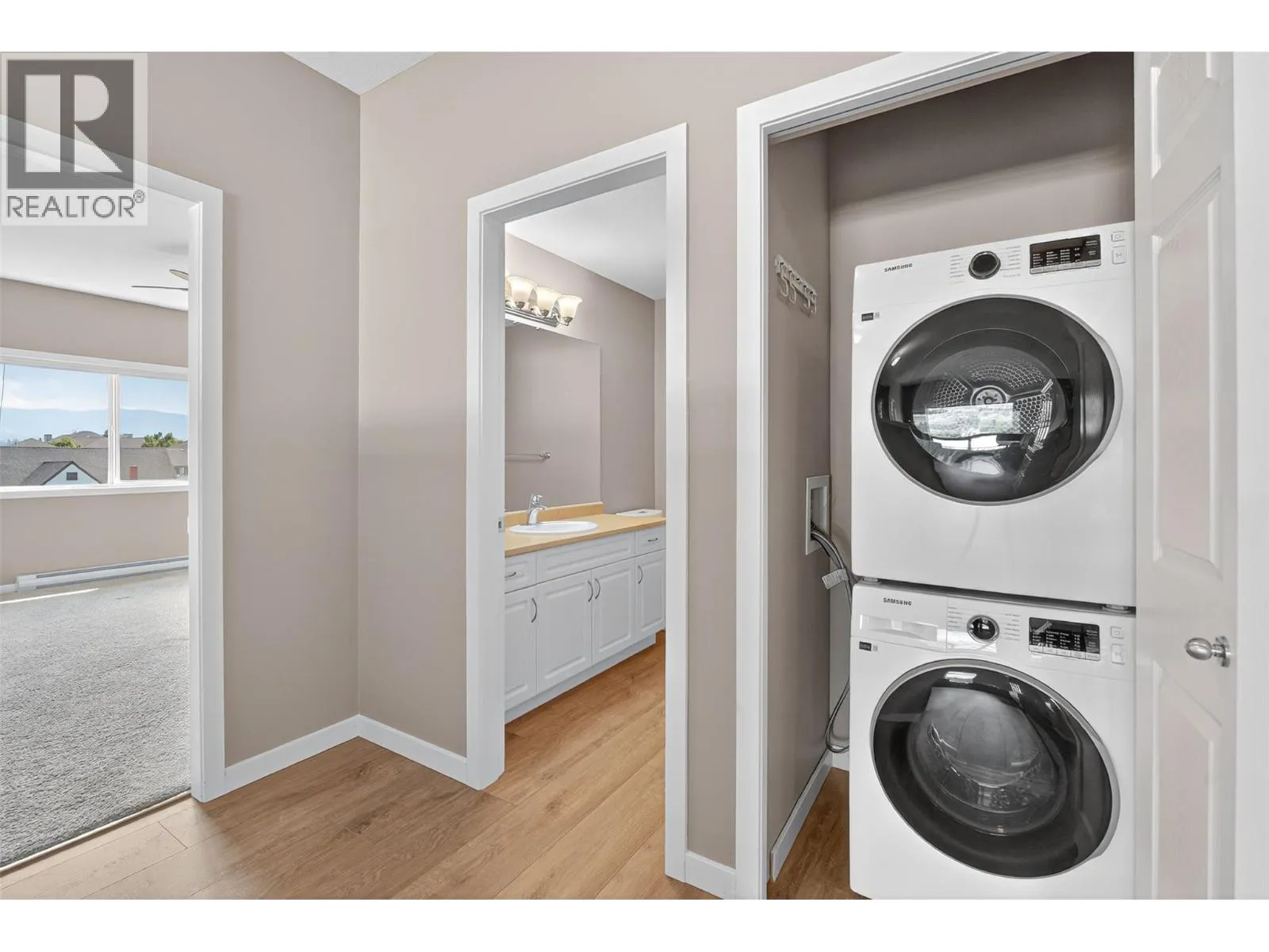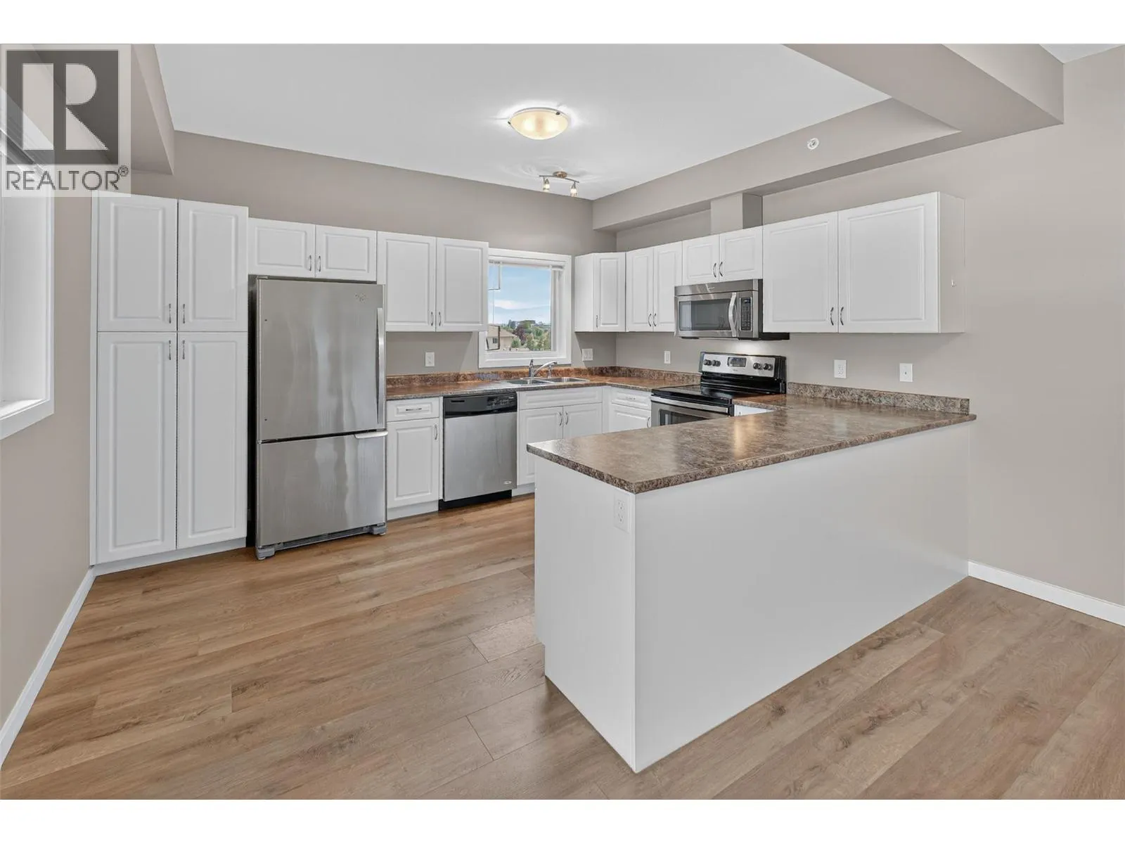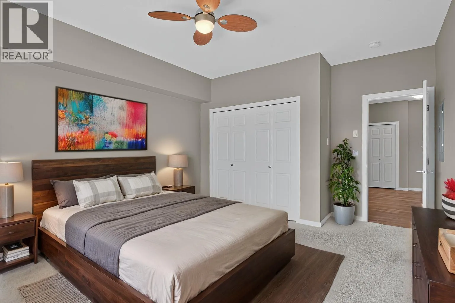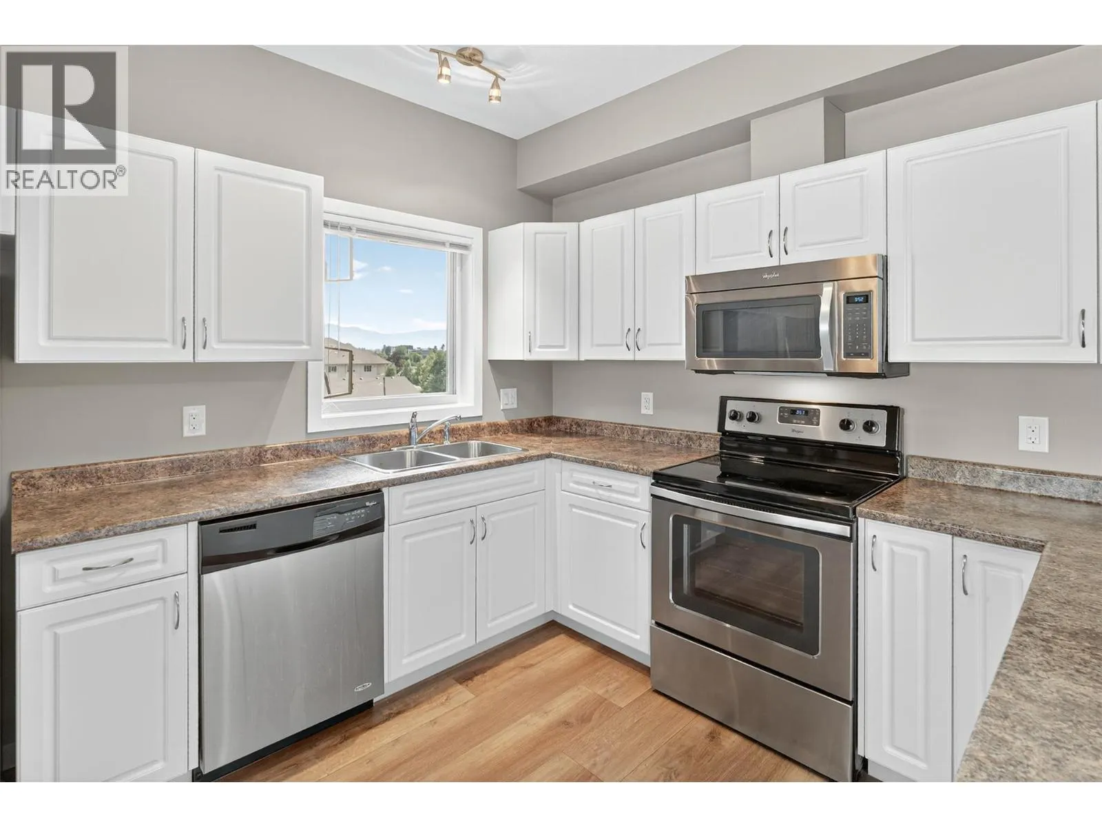 Welcome to Legacy 2, where you'll find this beautiful top-floor corner unit that offers a tranquil escape. This bright and spacious 2-bed, 2-bath condo boasts an open-concept layout, with tons of natural light. The well-appointed kitchen features a wrap around counter that connects to the dining and living areas, making it perfect for entertaining. Step outside onto your large, tree-shaded, corner balcony, a private retreat where you can enjoy the serene surroundings and a lovely eastern-mountain view. The split bedroom floor plan provides ultimate privacy for all. The primary bedroom includes a 3-piece ensuite, and the second bedroom has convenient access to the other full bathroom. In-suite laundry with a full-sized washer and dryer, air conditioning, and plenty of storage make this unit an ideal home for students, young families, or downsizers. This complex offers lush green spaces, a playground, secure underground parking, and convenient access to your storage locker right across the hall. The location is a major highlight, with Willow Park Centre, Plaza 33 + all groceries, restaurants, coffee shops and amenities just a 10-minute drive away, grade schools across the street and the YMCA center within walking distance! You're also perfectly positioned for easy access to UBCO, Kelowna International Airport, Big White Ski Resort, and downtown Kelowna. This is a fantastic investment and a wonderful place to call home and be in the heart of the Okanagan! (id:27476)