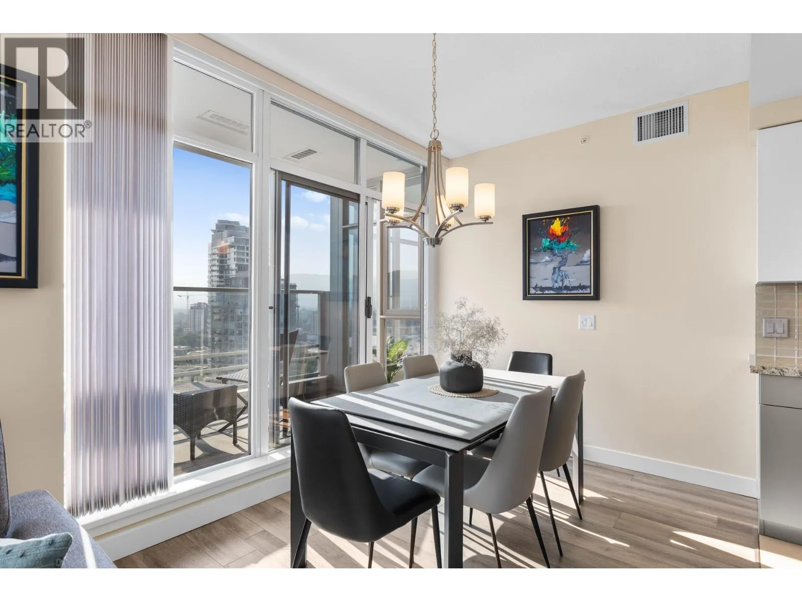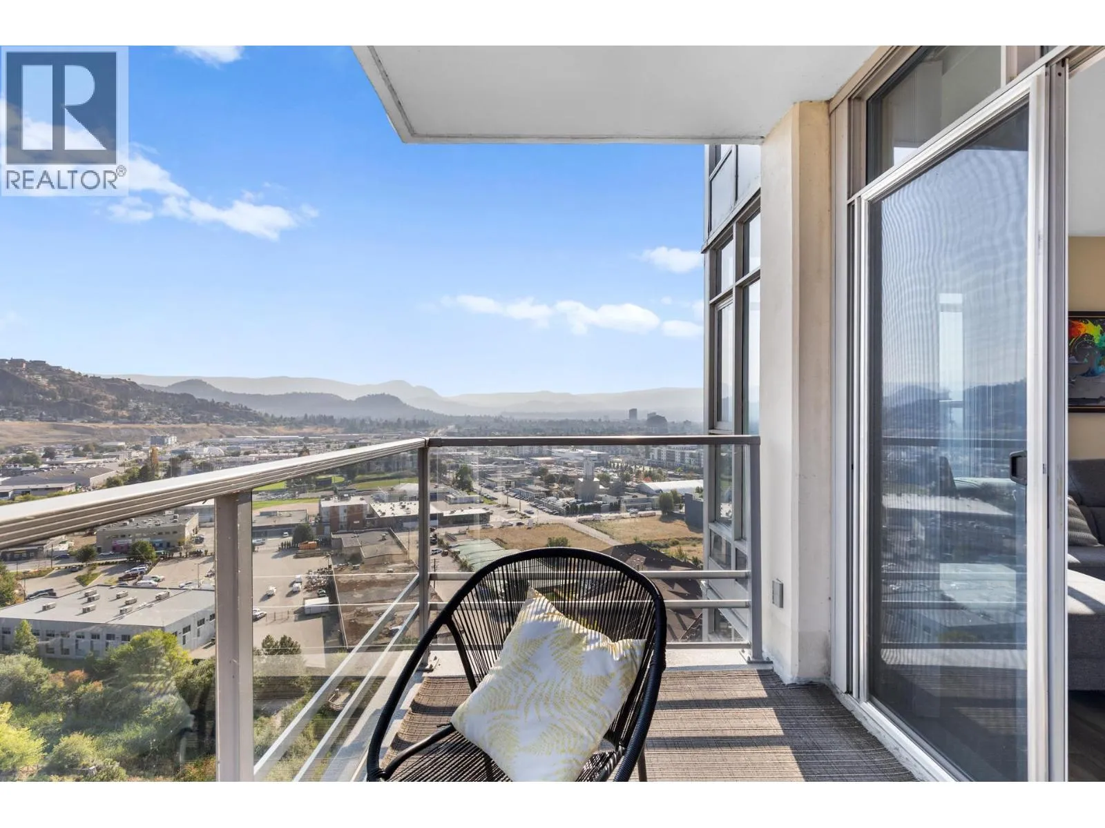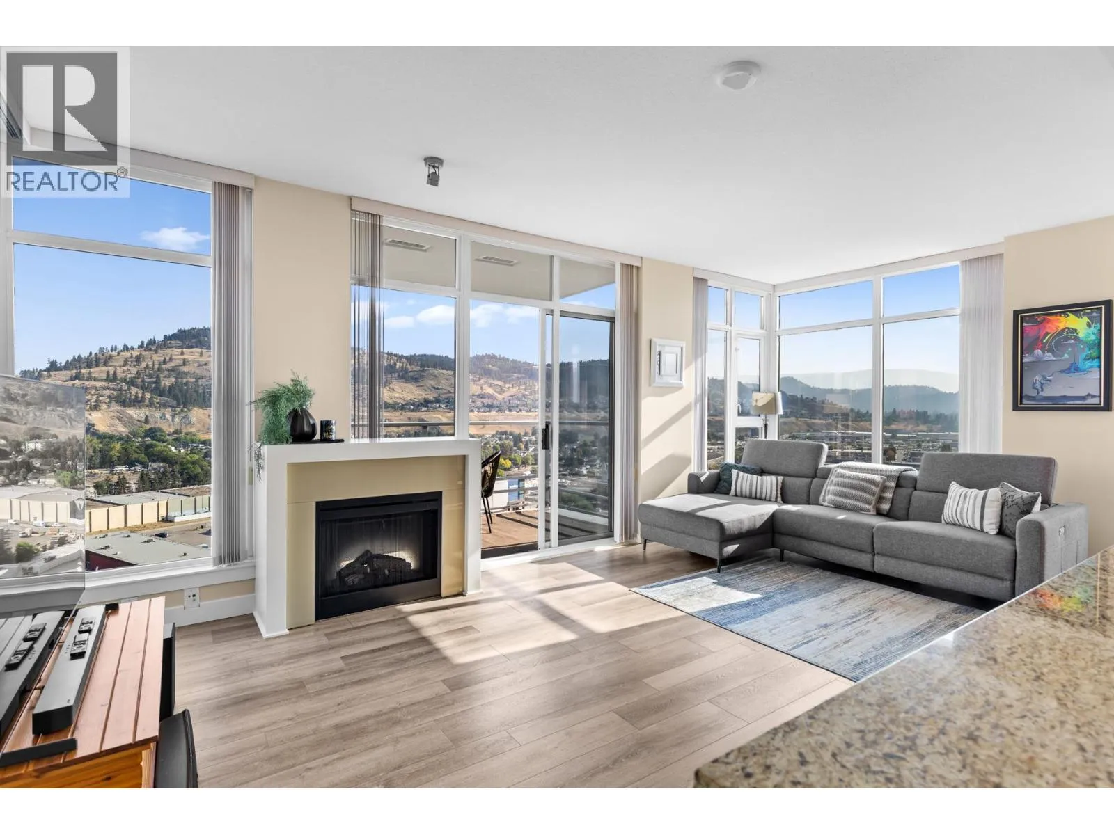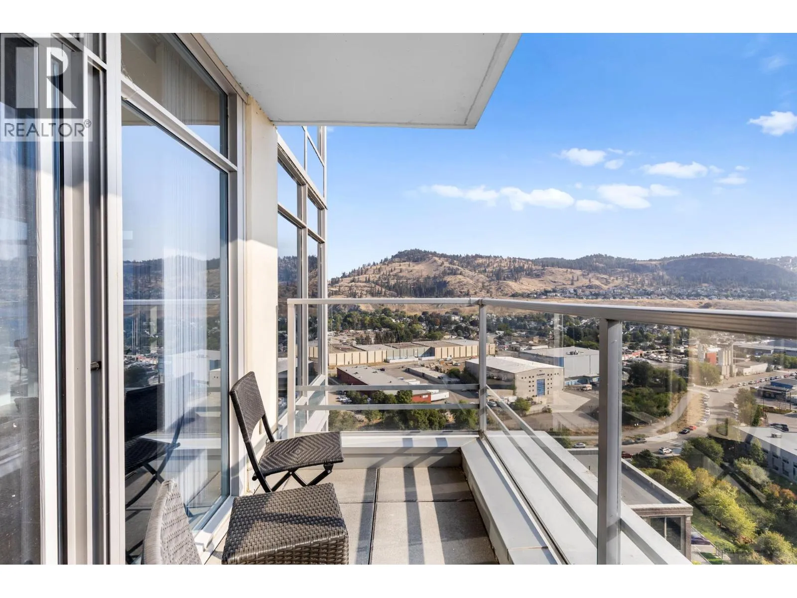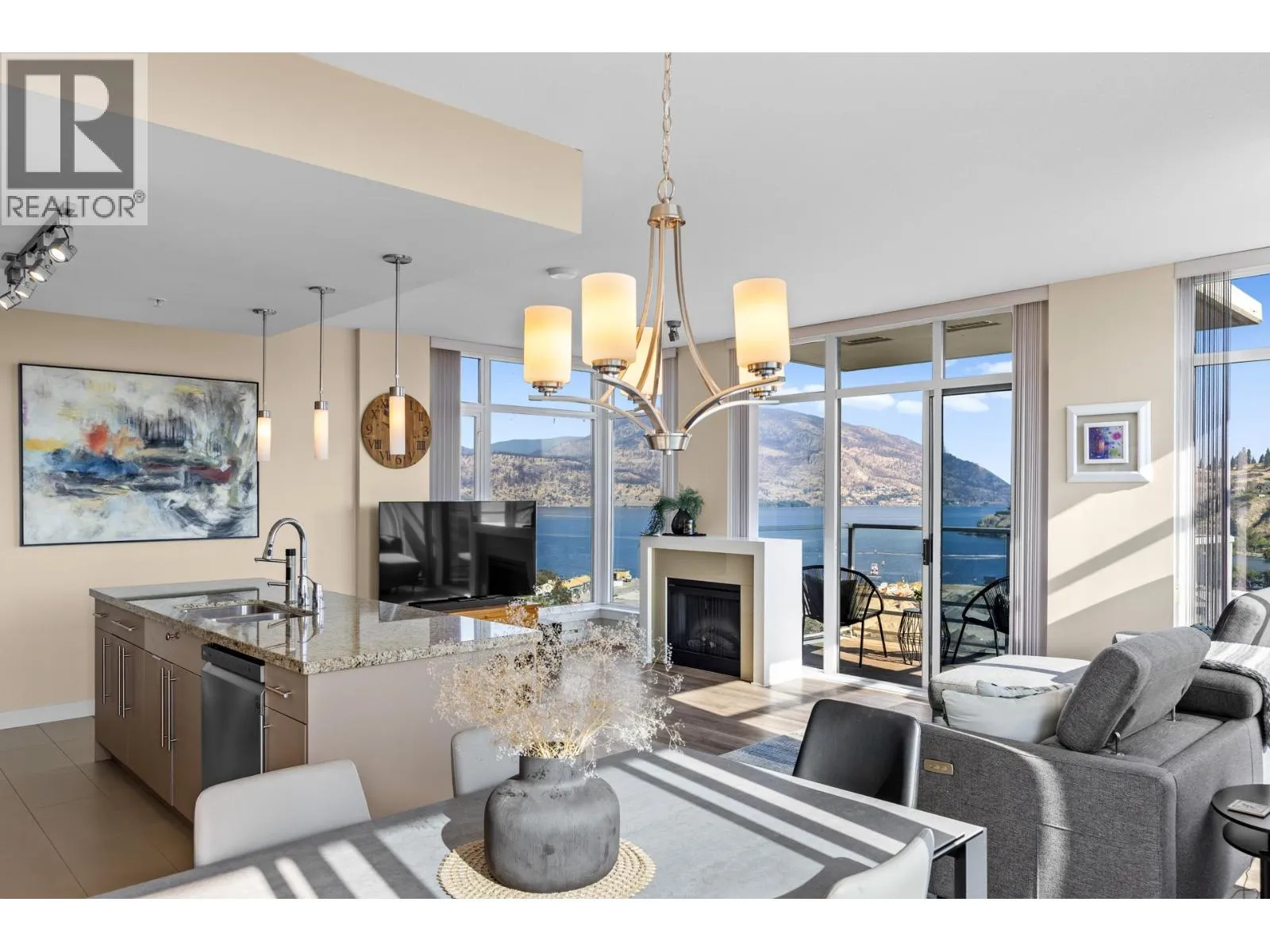 Enjoy sweeping vistas high above downtown Kelowna! This 21st-floor 2-bed, 2-bath condo plus Den in the sought-after Skye Tower at Waterscapes showcases breathtaking views of the lake, mountains, and city skyline. The bright open-concept layout is framed by floor-to-ceiling windows and enhanced with thoughtful updates, including freshly painted cabinetry, a built-in wine rack, and a new water ionizer filtration system. Modern finishes include vinyl plank flooring, a large island, granite countertops, and stainless-steel appliances. Step onto your spacious balconies and soak in the views- perfect for morning coffee or evening wine. Skye Tower is a concrete, steel-and-glass high-rise offering secure underground parking, storage, and bike racks. As part of the Waterscapes community, residents enjoy access to the Cascades Club: a resort-style amenity centre with an outdoor pool, hot tubs, fitness studio, billiards room, fireside lounge, and guest suites for visitors. All of Kelownaâs best is just steps away-Waterfront Park, the boardwalk, beaches, Prospera Place, the yacht club, dining, cafes, shops, and the vibrant Cultural District.Call today to book your private showing! (id:27476)