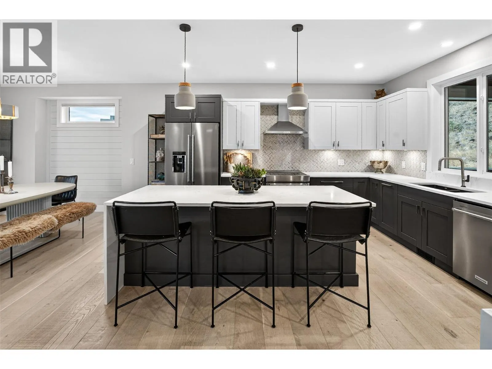 This Step 4 energy-rated home in Wilden stands out for its exceptional build quality, thoughtful design, and high-performance features. Offering 3 bedrooms and 2 bathrooms on the main levelâa rare and highly desirable layout for familiesâplus a flexible bonus room or office on the lower level and a large 1-bed legal suite, the floor plan delivers versatility without compromise. The interior is defined by 9-ft ceilings on both levels, creating a bright, open atmosphere complemented by large windows, wide-plank white oak hardwood flooring, high-end cabinetry and appliances, waterfall countertops, and a striking gas fireplace. The ensuite is a beauty, featuring heated floors, a spacious walk-in shower, double vanity, and a freestanding bathtub. Built for modern living, the home includes a dual-fuel heating system, HRV system, upgraded electrical with 200amp service plus 100amps to the suite, along with EV and hot tub wiring. Epoxy decking, extensive storage, and a large exterior storage area allow the oversized garage to be used for actual vehicle parking, a feature rarely found and highly valued. Outdoor living is equally impressive with a fully fenced backyard, covered deck, expansive patio with built-in fire pit, and private front balconyâideal for entertaining or enjoying the Okanagan lifestyle. This home delivers a rare combination of efficiency, functionality, and elevated finishes in one of Wildenâs most sought-after neighbourhoods. THIS IS A MUST SEE HOME! (id:27476)