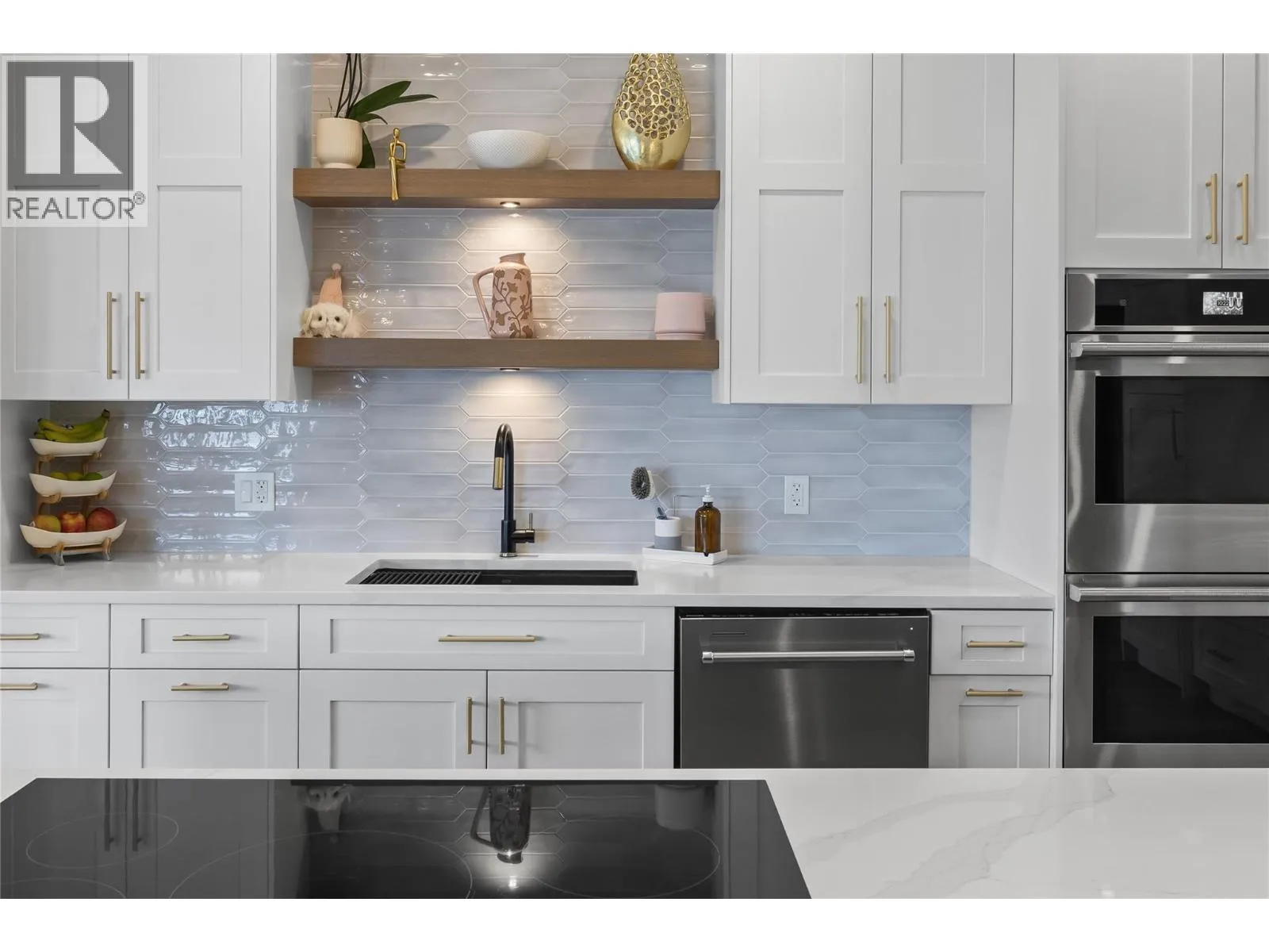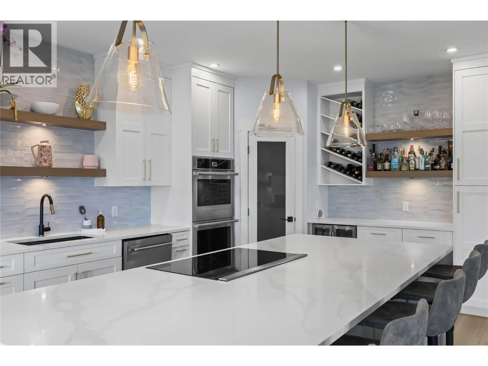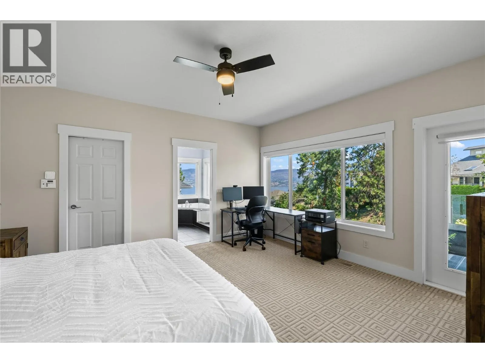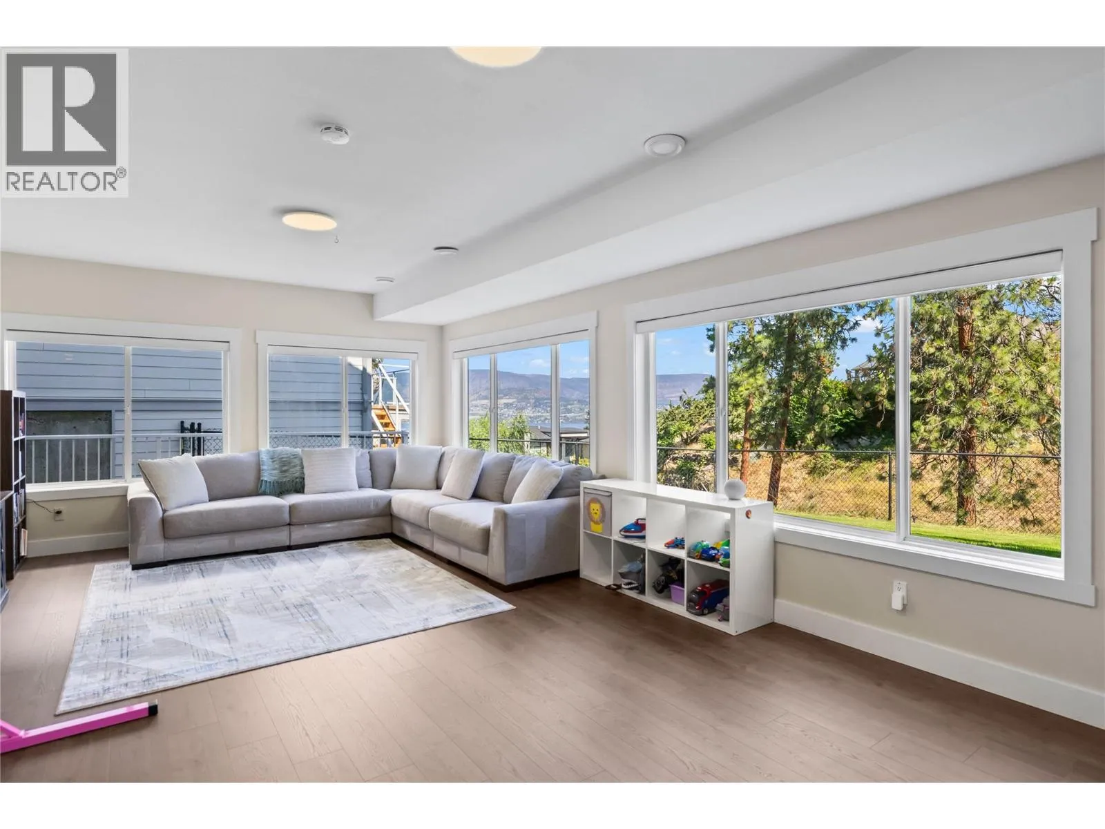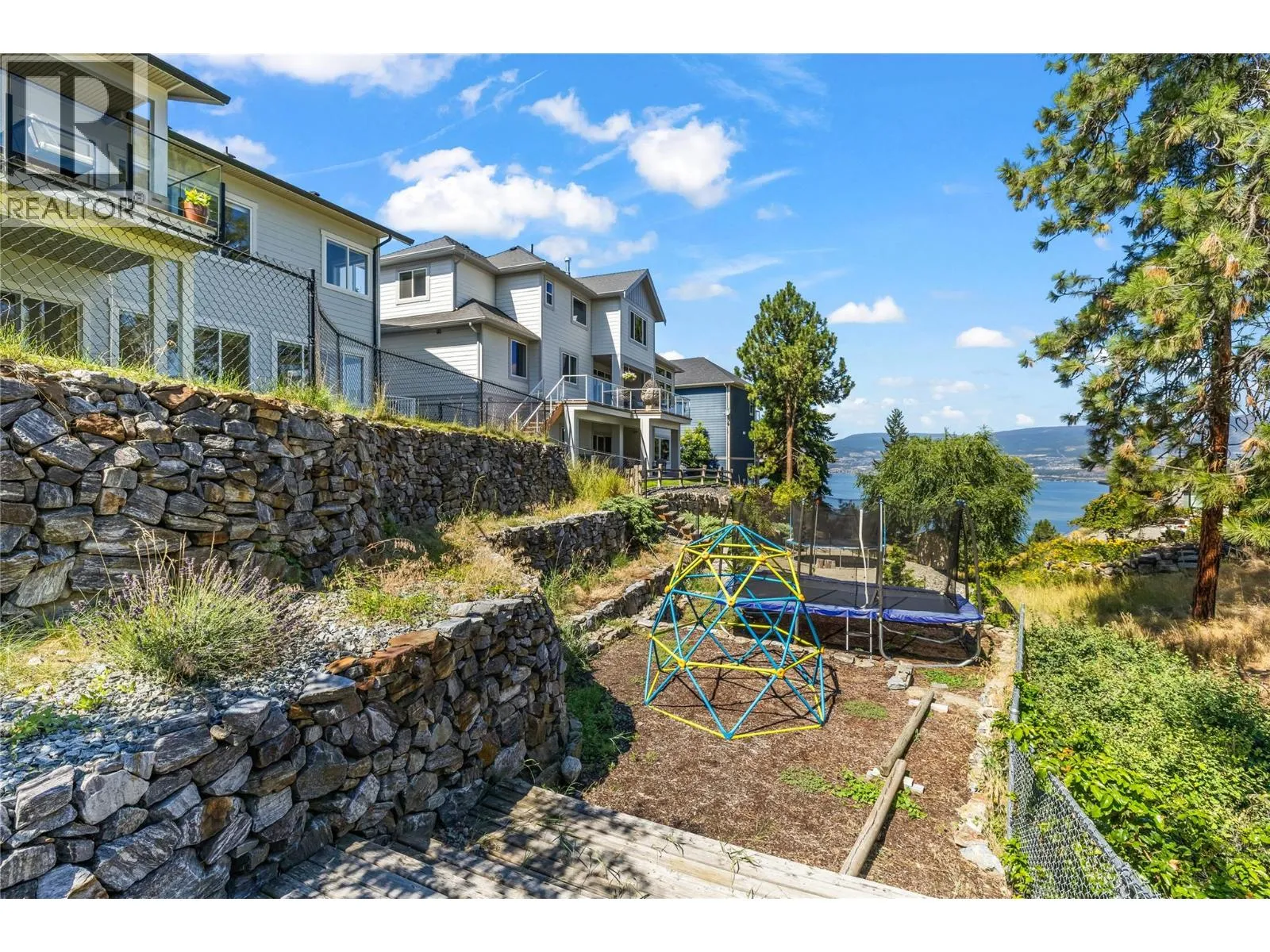 Stunning renovated family home with lake views in sought-after Kettle Valley. The bright, open kitchen features a large island, Jenn-Air stainless steel appliances, modern cabinetry, and a spacious pantry. Enjoy lake views from the kitchen, dining, and living areas with floor-to-ceiling windows and an updated fireplace. Step out to the covered patio for outdoor dining or to relax and watch the sunset. The primary suite offers a walk-in closet and full ensuite with glass shower, double sinks, and a soaker tub overlooking the lake. Two additional bedrooms with built-in organizers, a renovated main bathroom with double sinks, and a redesigned laundry/mudroom with garage access complete the main level. The lower level opens to a private fenced yard with flat lawn areas and a second deck with hot tub and glass railings. Inside, the bright basement features a large family room, theatre room, rec room, two bedrooms, and a full bathroomâideal for guests or family. Walking distance to Chute Lake Elementary, Kettle Valley Village shops, and Quilchena Park. Move-in ready and perfect for families looking for space, style, and views. (id:27476)