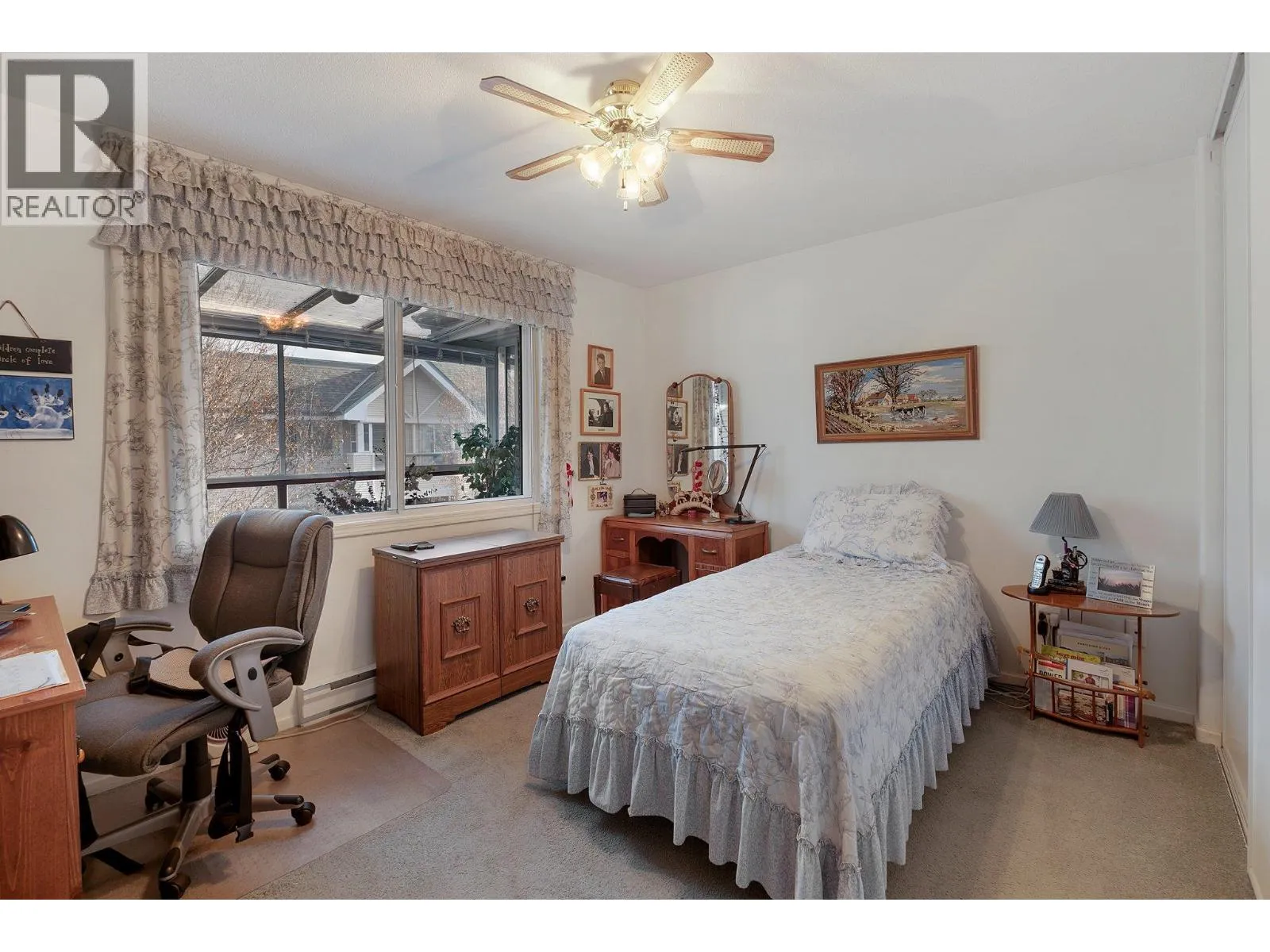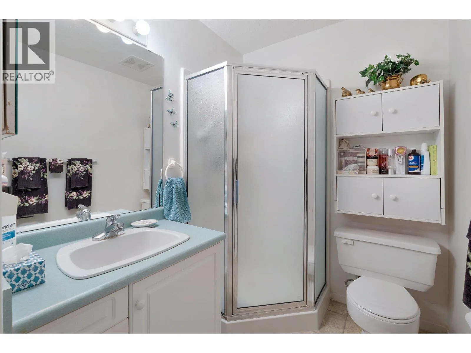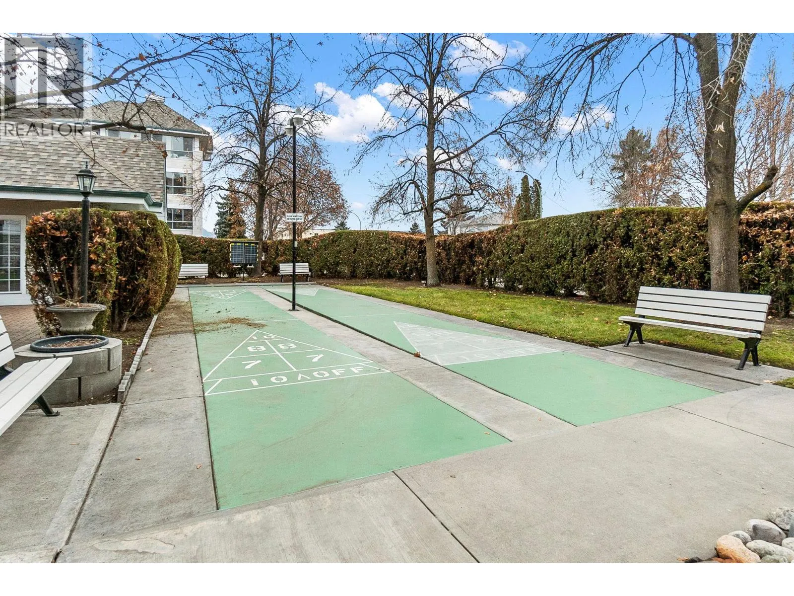 Top Floor Corner Unit. Vaulted ceilings in the living room and dining room, fireplace, very open and bright. Large primary bedroom with 4 pce ensuite and oversized walk-in closet. The second bedroom is next to a full bathroom separate from the primary bedroom. The kitchen has room for a table and two chairs. Two wall air- conditioners. The club house is very comfortable and has a pool table and shuffleboard, big screen TV, kitchen. There is a guest suite and gym. Outside is a BBQ area and gardening plots. Just a short walk to shops, restaurants and the Capri Mall. Secured parking plus a workshop. Pets: one dog 14 inches at shoulder or one cat. (id:27476)