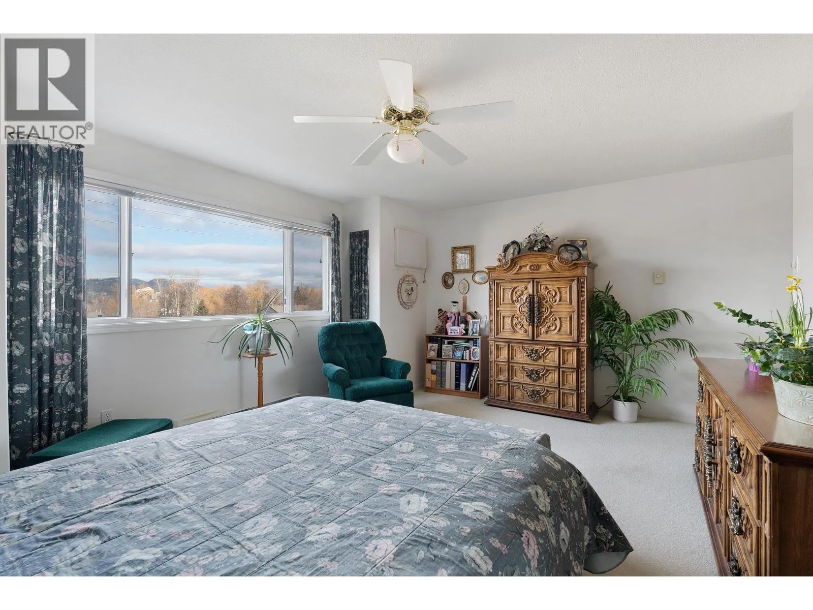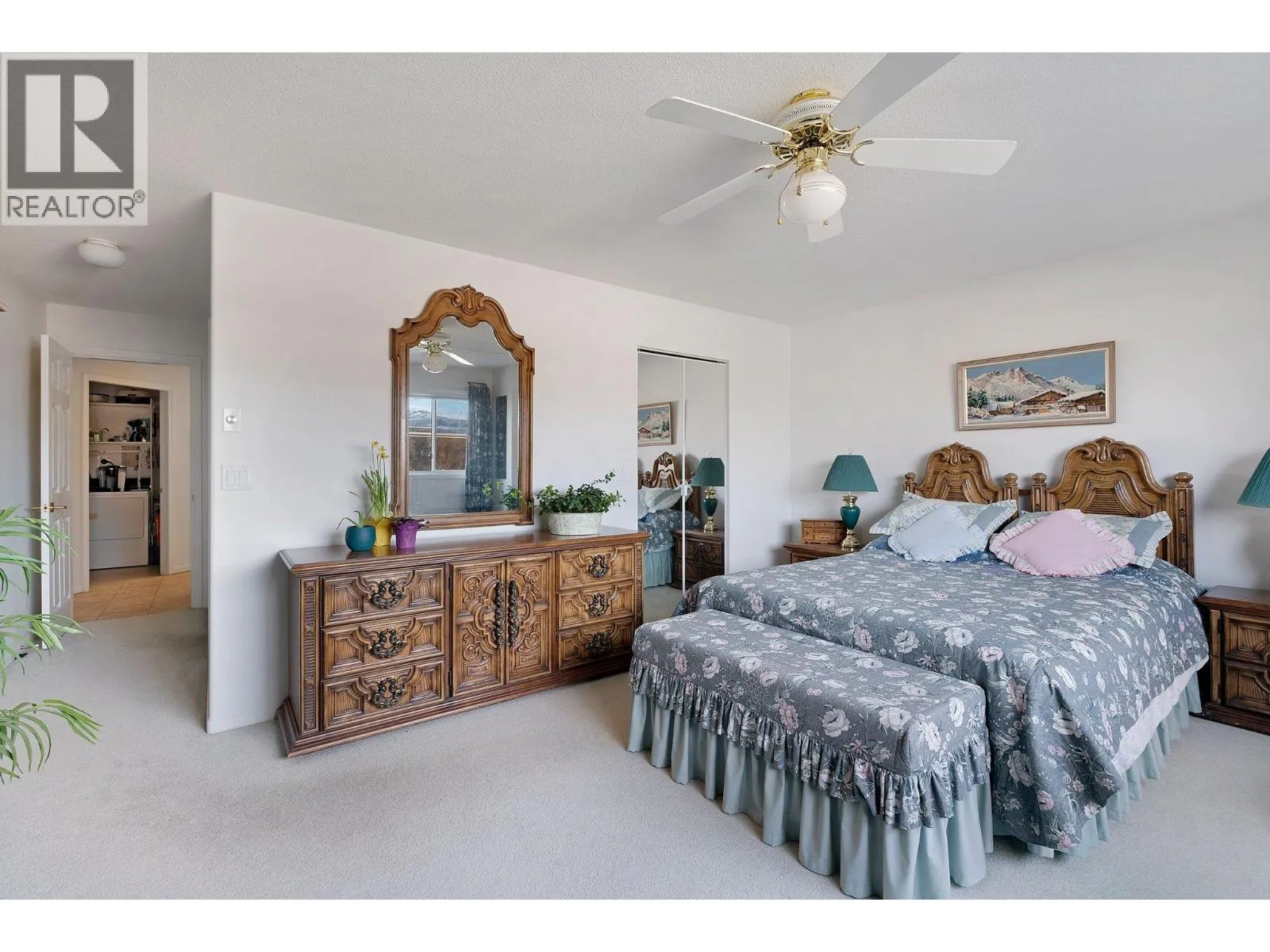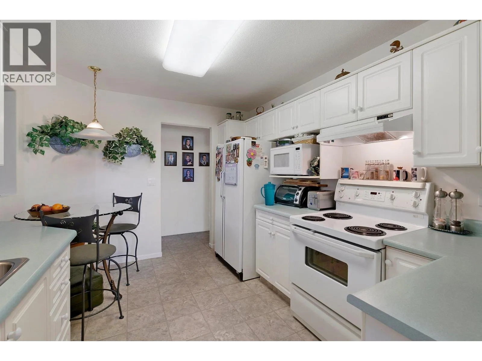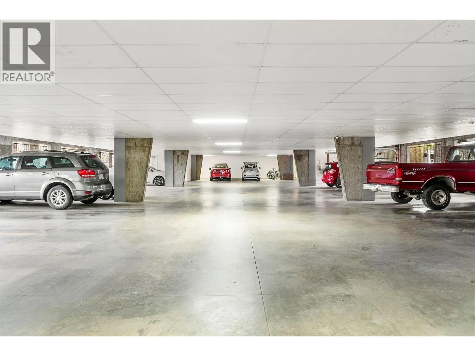 Top Floor Corner Unit. Vaulted ceilings in the living room and dining room, fireplace, very open and bright. Large primary bedroom with 4 pce ensuite and oversized walk-in closet. The second bedroom is next to a full bathroom separate from the primary bedroom. The kitchen has room for a table and two chairs. Two wall air- conditioners. The club house is very comfortable and has a pool table and shuffleboard, big screen TV, kitchen. There is a guest suite and gym. Outside is a BBQ area and gardening plots. Just a short walk to shops, restaurants and the Capri Mall. Secured parking plus a workshop. Pets: one dog 14 inches at shoulder or one cat. (id:27476)