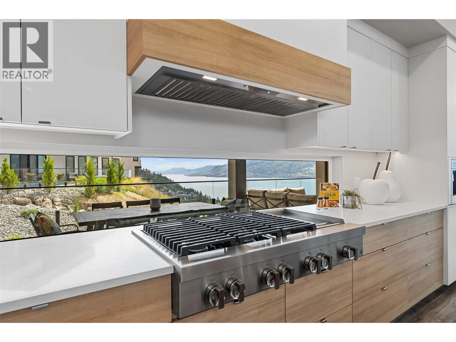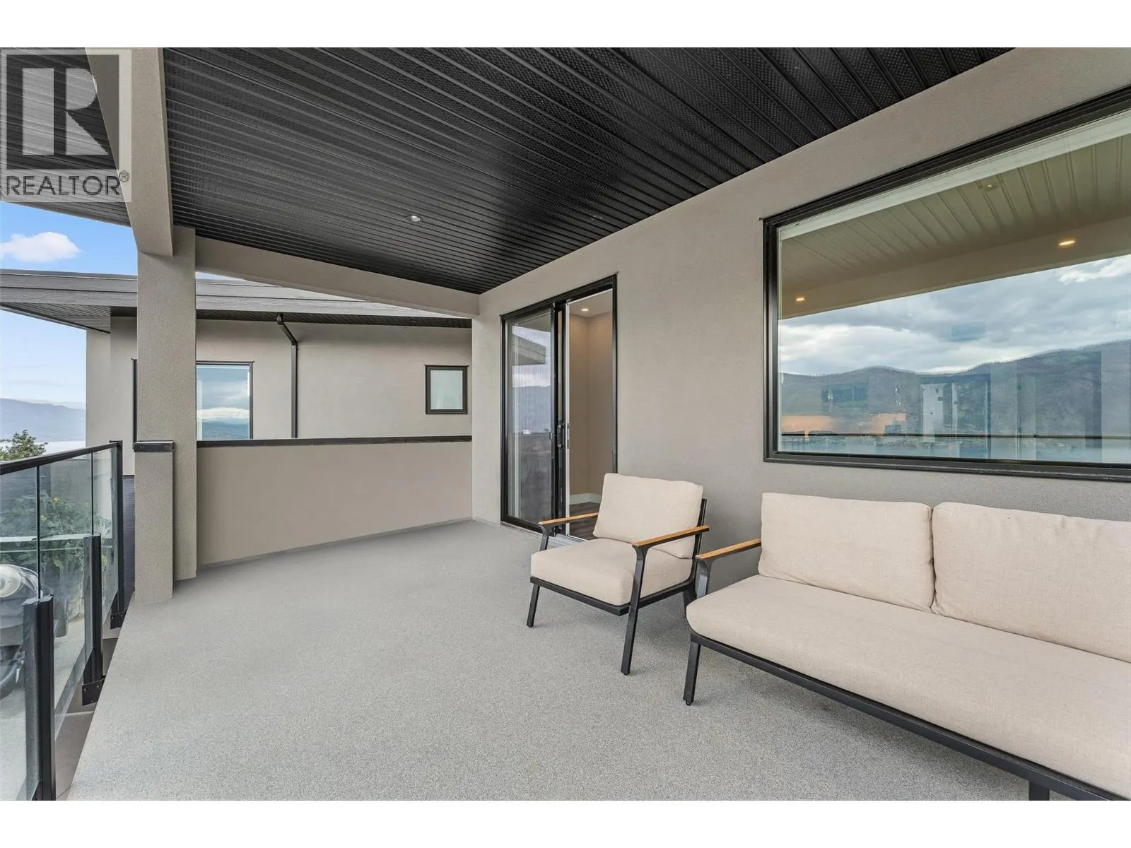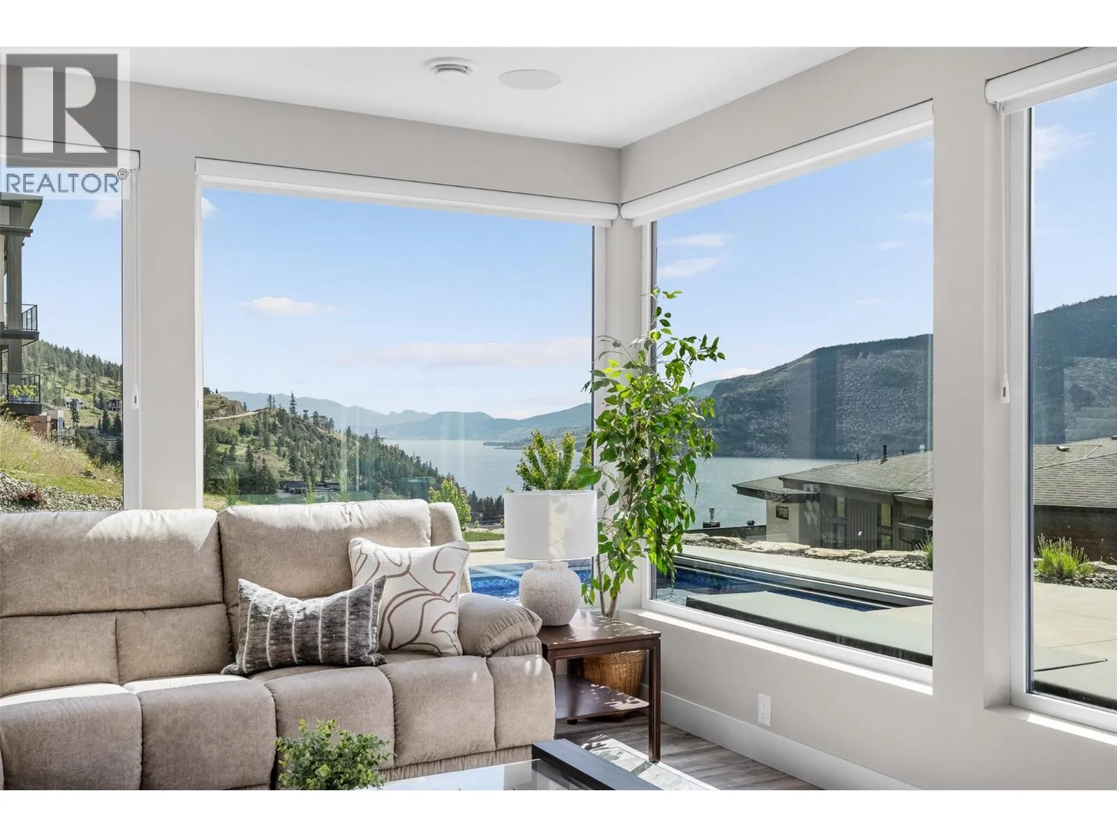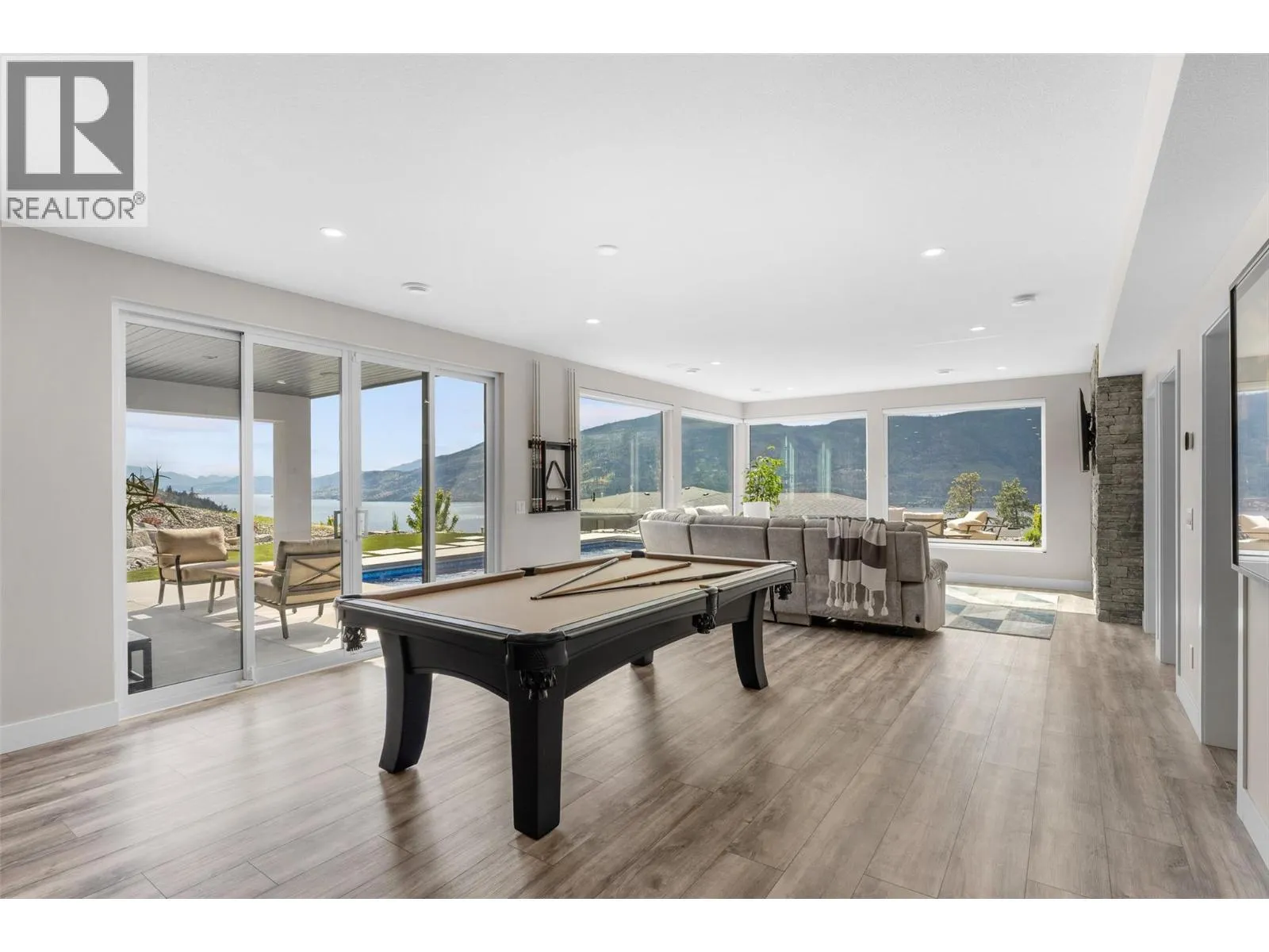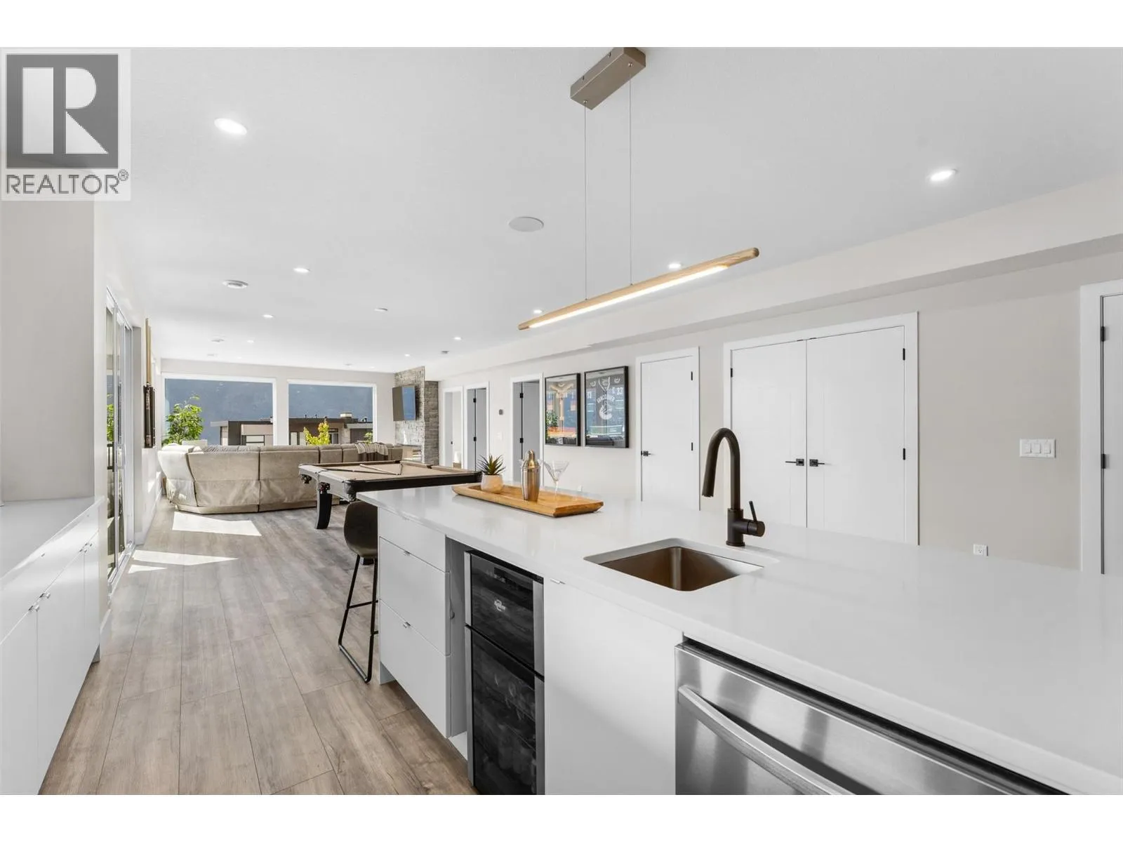 Gorgeous modern home in McKinley Beach where elevated Okanagan living meets thoughtful design & panoramic lake views. Situated on a rare 0.374-acre lot, this estate boasts a spacious family layout with resort-style amenities, expansive indoor-outdoor living, & a self-contained 2 bed/1 bath legal suite. The main level impresses with soaring ceilings, a chefâs kitchen featuring JennAir appliances, a massive island, & a seamless connection to the covered deckâperfect for al fresco dining. The luxurious primary suite enjoys sweeping lake &valley views, a spa-inspired ensuite, & a walk-through dressing room. A bright office, large pantry, powder room, & laundry complete this level. Downstairs, entertain in style with a rec room, wet bar with pass-through windows, wine cellar, & direct walkout access to the backyard oasis, featuring a heated saltwater pool, hot tub, & built-in firepit. Three additional beds & two baths offer flexibility. Upstairs, a versatile loft space is ideal for a home office or gym. The legal suite offers privacy & comfort with a separate deck, laundry, & private entrance. A highlight of this home is the 1300+ sq ft garage with cabinets, separate heat, & hard wired for network. Located minutes from the marina, airport, UBCO, wineries, & golf. Residents enjoy exclusive access to McKinleyâs amenity centre with gym, pool, hot tub, pickleball, & more. This is a rare opportunity to own one of the most versatile & beautifully appointed homes in McKinley Beach. (id:27476)