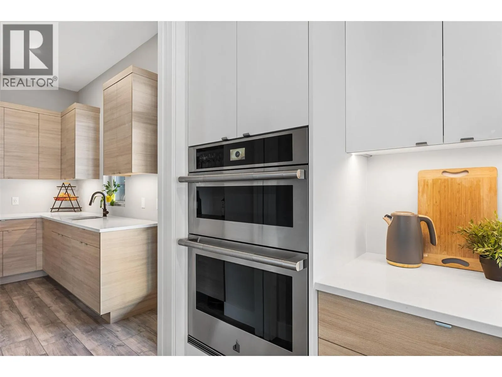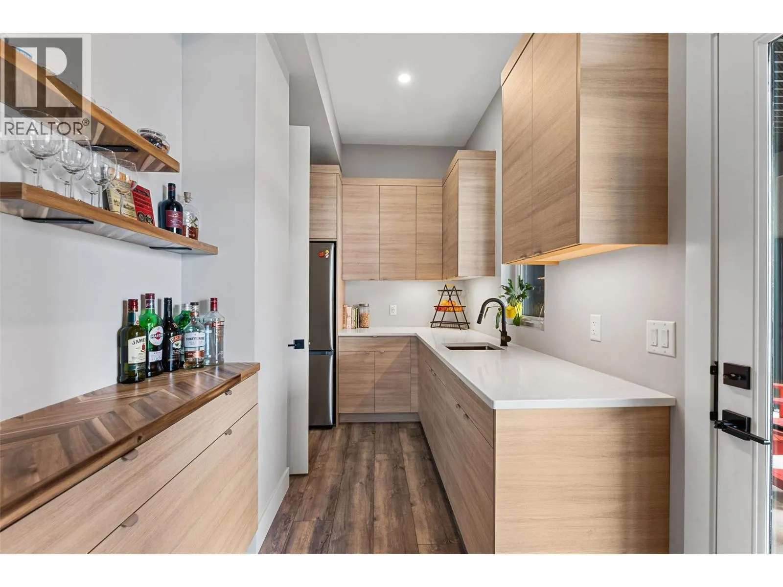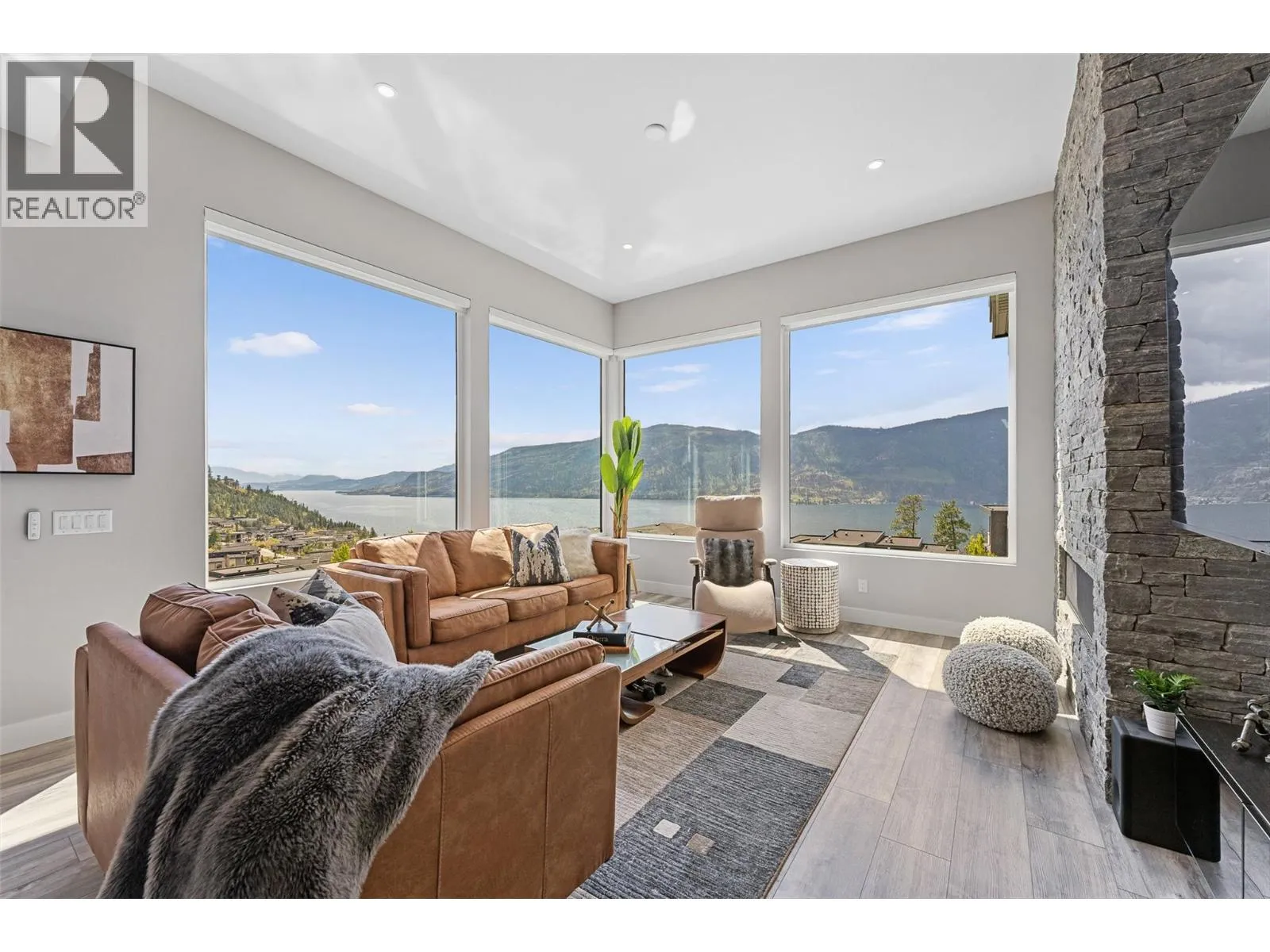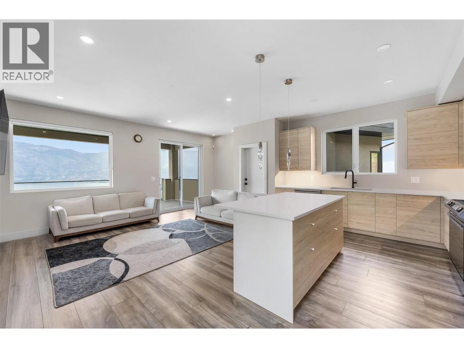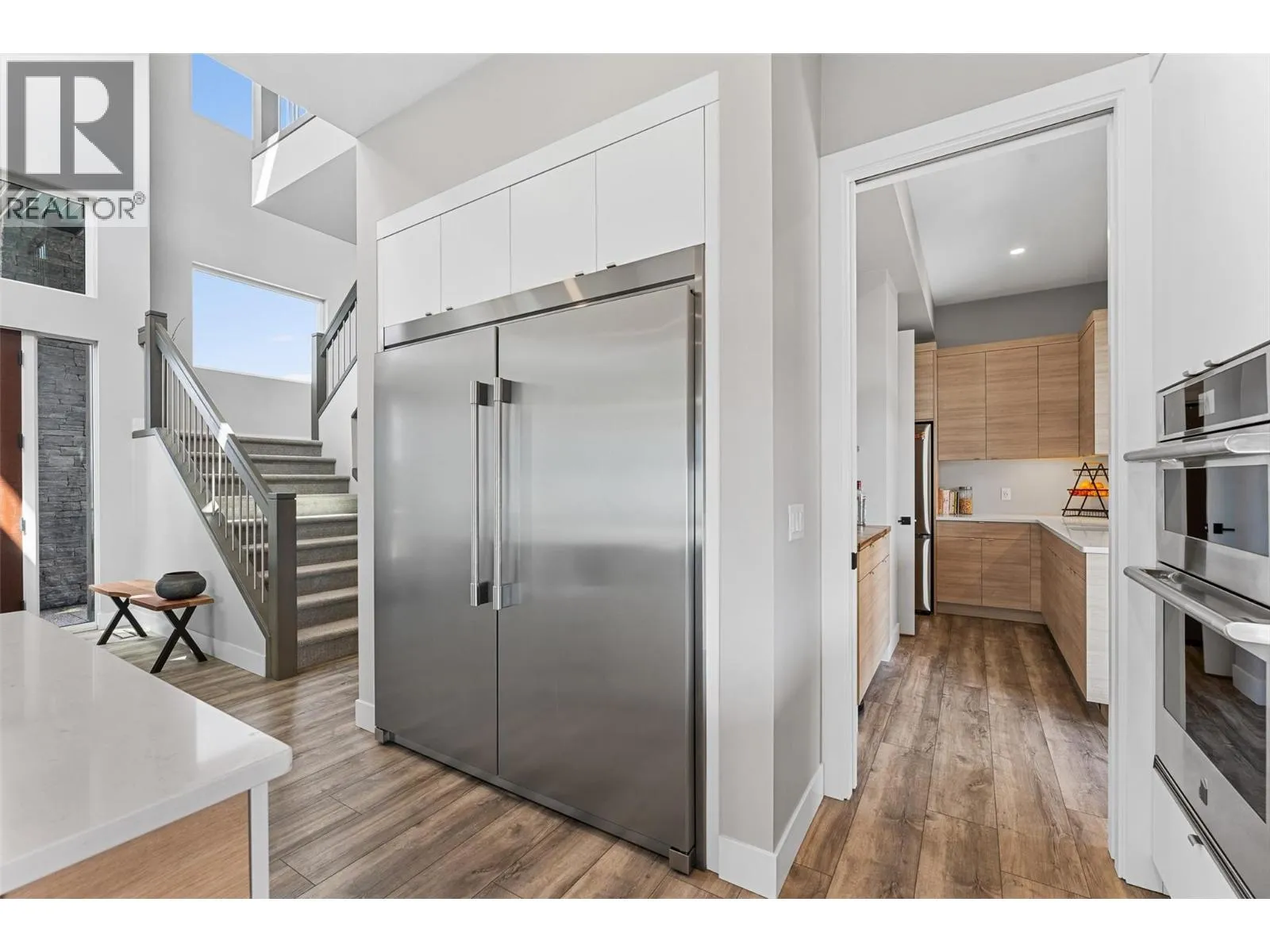 Gorgeous modern home in McKinley Beach where elevated Okanagan living meets thoughtful design & panoramic lake views. Situated on a rare 0.374-acre lot, this estate boasts a spacious family layout with resort-style amenities, expansive indoor-outdoor living, & a self-contained 2 bed/1 bath legal suite. The main level impresses with soaring ceilings, a chefâs kitchen featuring JennAir appliances, a massive island, & a seamless connection to the covered deckâperfect for al fresco dining. The luxurious primary suite enjoys sweeping lake &valley views, a spa-inspired ensuite, & a walk-through dressing room. A bright office, large pantry, powder room, & laundry complete this level. Downstairs, entertain in style with a rec room, wet bar with pass-through windows, wine cellar, & direct walkout access to the backyard oasis, featuring a heated saltwater pool, hot tub, & built-in firepit. Three additional beds & two baths offer flexibility. Upstairs, a versatile loft space is ideal for a home office or gym. The legal suite offers privacy & comfort with a separate deck, laundry, & private entrance. A highlight of this home is the 1300+ sq ft garage with cabinets, separate heat, & hard wired for network. Located minutes from the marina, airport, UBCO, wineries, & golf. Residents enjoy exclusive access to McKinleyâs amenity centre with gym, pool, hot tub, pickleball, & more. This is a rare opportunity to own one of the most versatile & beautifully appointed homes in McKinley Beach. (id:27476)