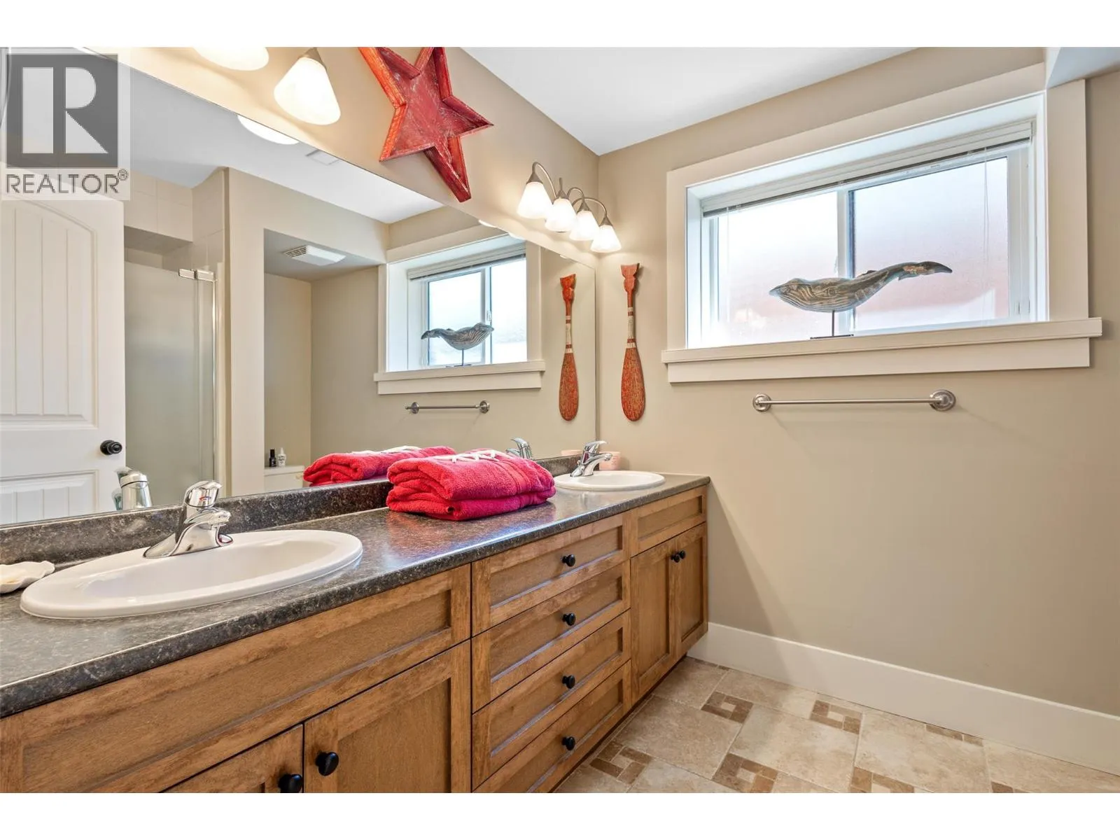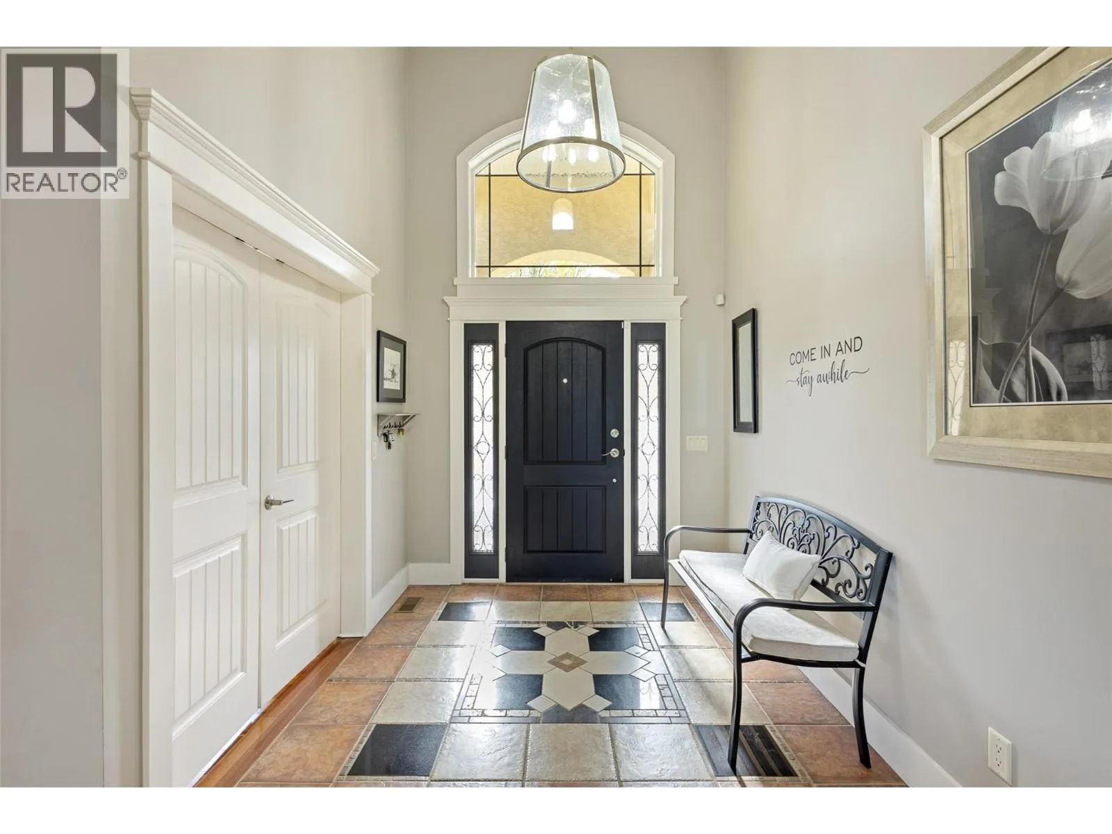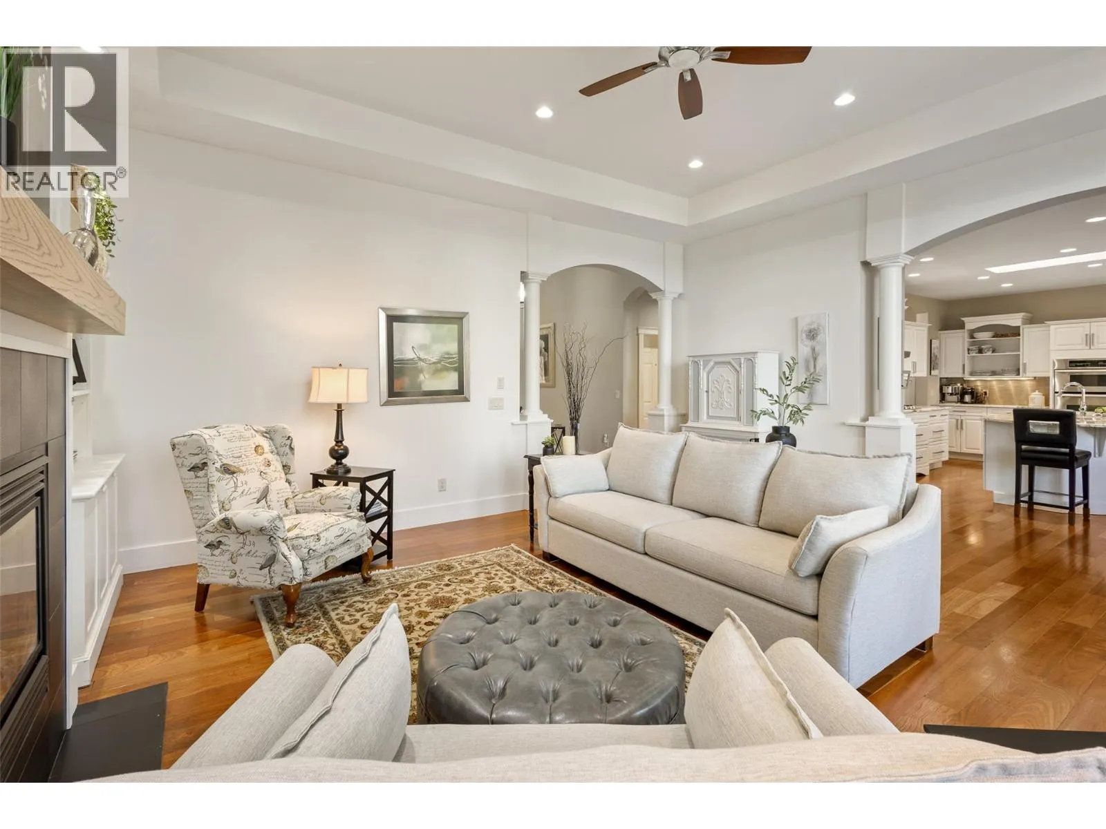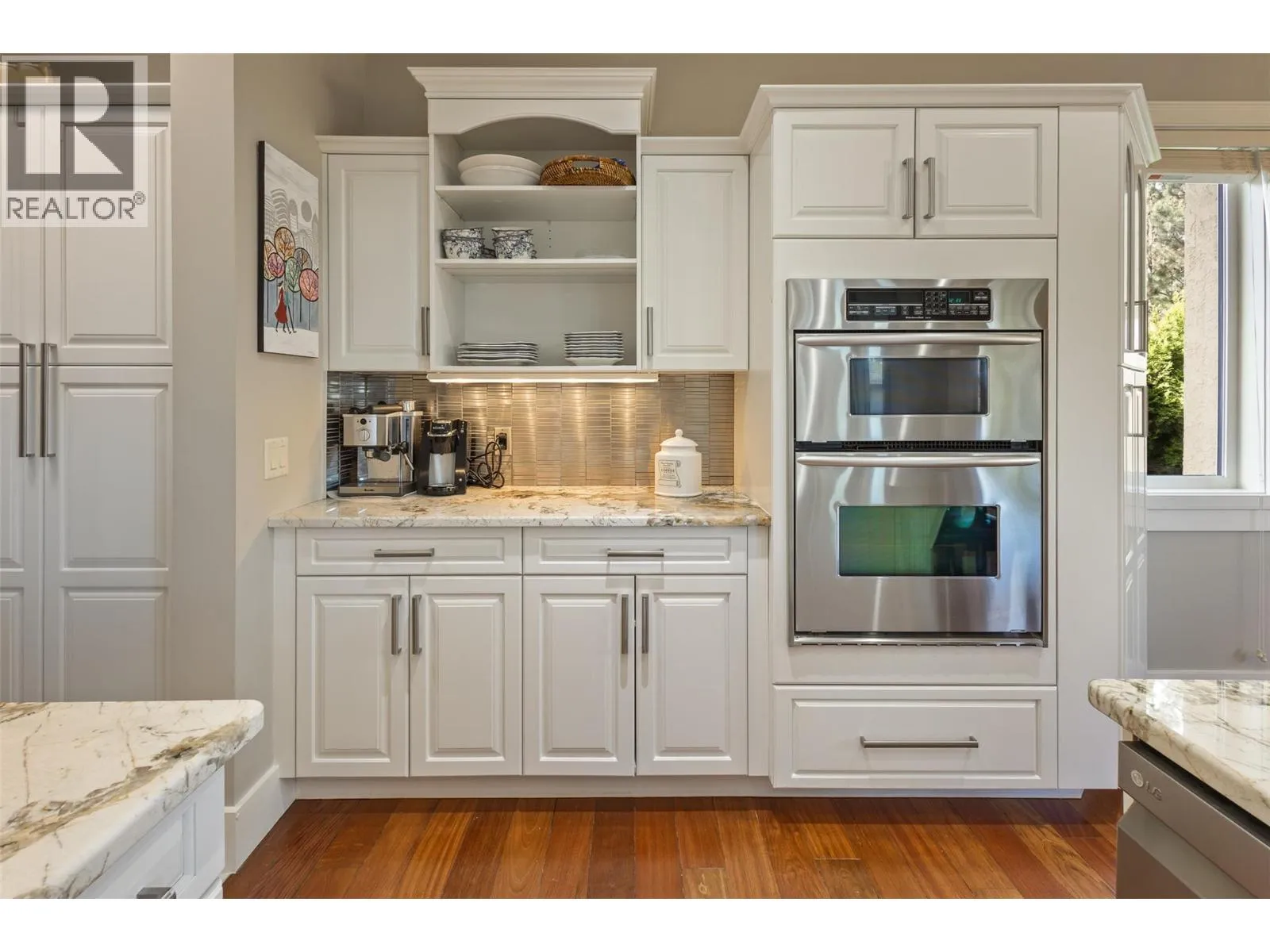 Meticulously maintained and built to impress, this 3,600+ sq. ft. walkout rancher blends timeless craftsmanship with modern comfort. From the moment you enter, 15-foot ceilings and sun-filled windows create an elevated sense of space and warmth. The main level features 11-foot ceilings and refinished Brazilian cherry hardwood that showcases pride of ownership. The open layout connects a spacious great room, gourmet kitchen with granite counters and raised island, and a large covered deck perfect for entertaining. The luxurious primary suite offers a spa-like ensuite with heated floors, his-and-hers sinks, a double soaker tub, and a separate shower. A bright south facing office or possible bedroom rounds out the main floor. Downstairs, the bright walkout basement is ideal for family or guests, complete with an in-law suite with separate laundry, two additional bedrooms, adjacent to a large bathroom with his and her sinks, a generous games and family room, and a cozy gas fireplace. Outside, the private yard is pool-sized, hot-tub ready, and framed by meticulous landscaping. With 200-amp service, newer A/C and hot water tank, underground sprinklers, and countless thoughtful upgrades, every detail has been carefully considered. Located just steps from the brand-new shopping centre, top schools, and scenic trails, and now priced below assessed value, this home offers an exceptional opportunity in one of Kelownaâs most desirable neighbourhoods. (id:27476)