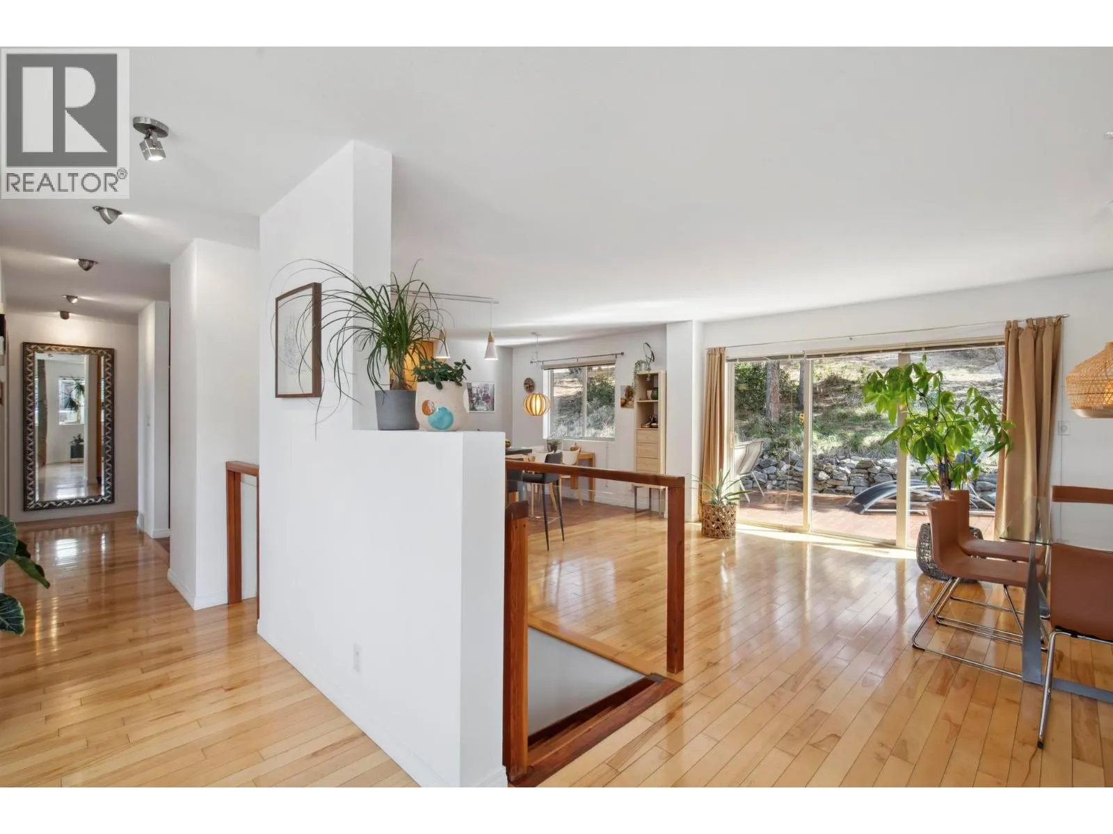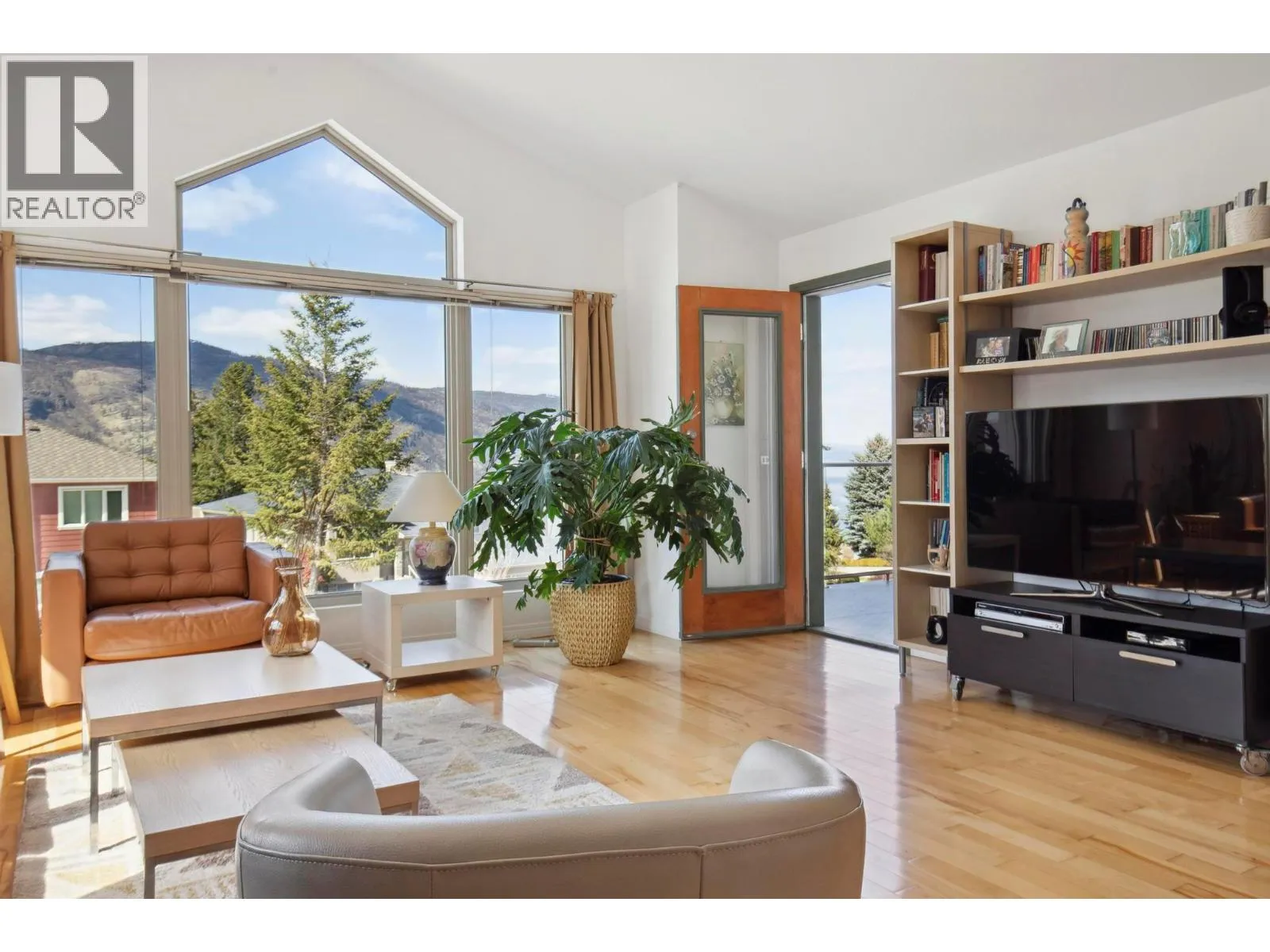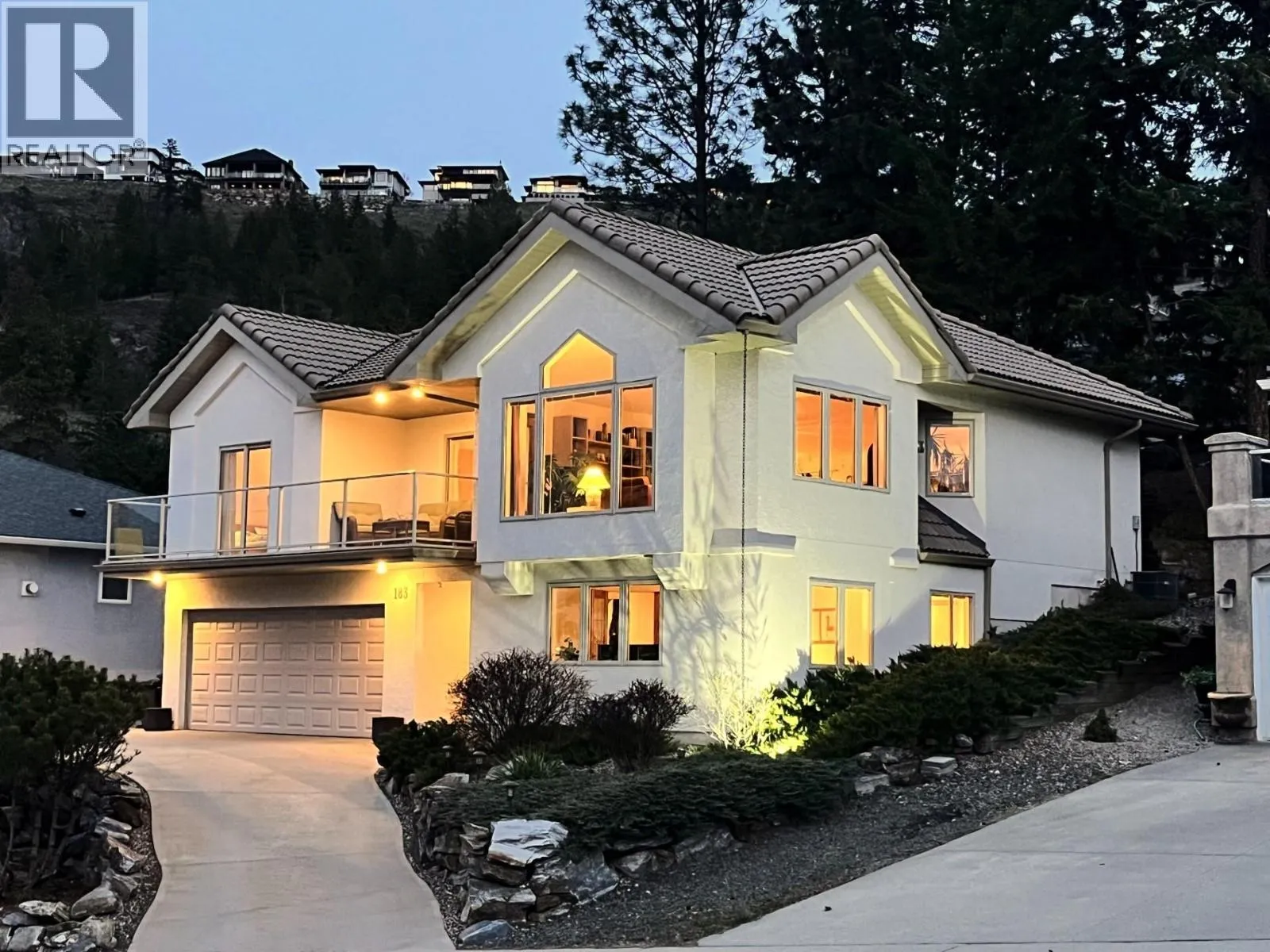 Located in the prestigious northern part of Magic Estates, this architecturally designed 4 bed 3 bath home offers gorgeous views of Okanagan Lake and the mountains. Designed to maximize natural light, it features oversized windows on all sides, bathing every room in daylight and offering stunning views from nearly every angle. With far more windows than a typical home, the design ensures a bright, open atmosphere throughout. Custom built with quality and longevity in mind, the home features a durable cement tile roof, offering fireproofing, exceptional thermal mass, and superior insulation for year-round comfort and energy efficiency. The spacious foyer leads to Douglas fir stairs with glass railings, opening to the upper level. Solid hardwood and ceramic tile floors provide timeless elegance. The living area boasts a cathedral ceiling, a gas stove on a stone feature wall, and panoramic lake and mountain views. A 180 sq. ft. covered balcony is perfect for relaxation. The kitchen offers ample counters, a gas range, and custom-built cabinetry for style and functionality. The dining room opens to a red cedar deck and tranquil low maintenance yard with mature trees. The lower level includes a bright office or studio with large windows, a spacious gym that can double as a theater, music room, or flex space, a 4th bed, a 3rd bath, and laundry. Offered for sale for the first time, this home reflects exceptional care and attention to detail, with easy access to Knox Mountain Park. (id:27476)