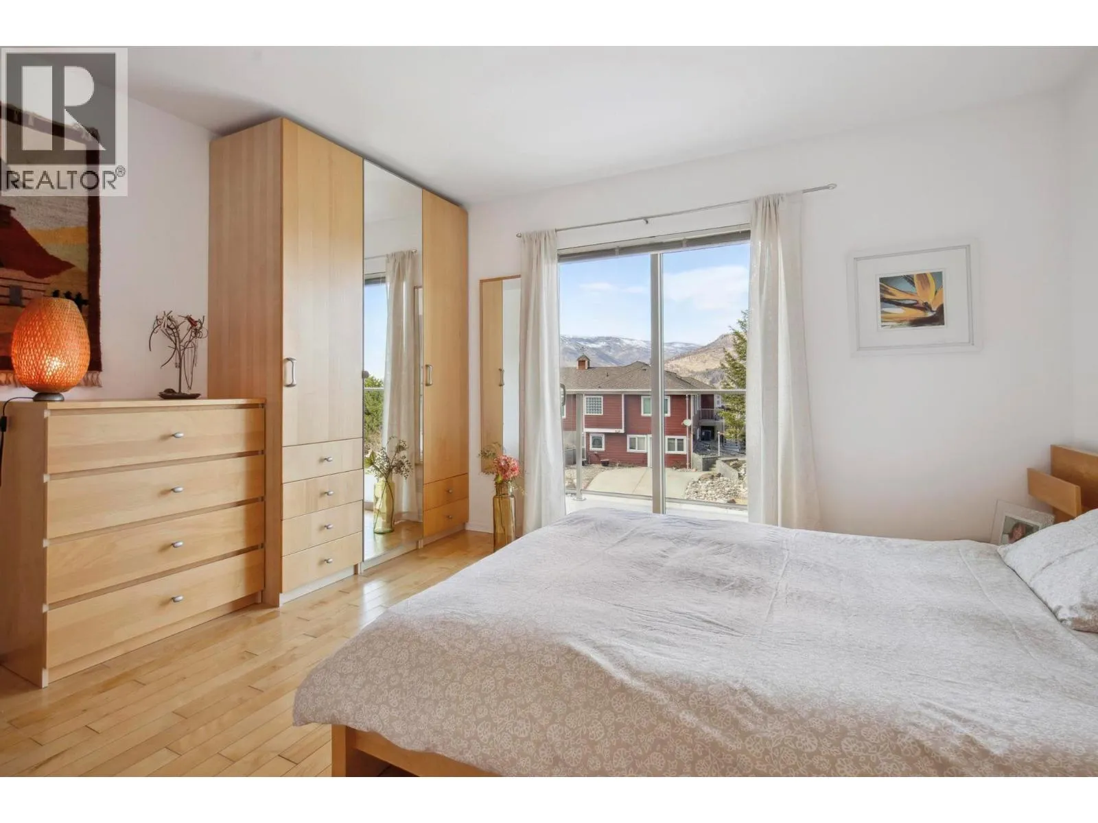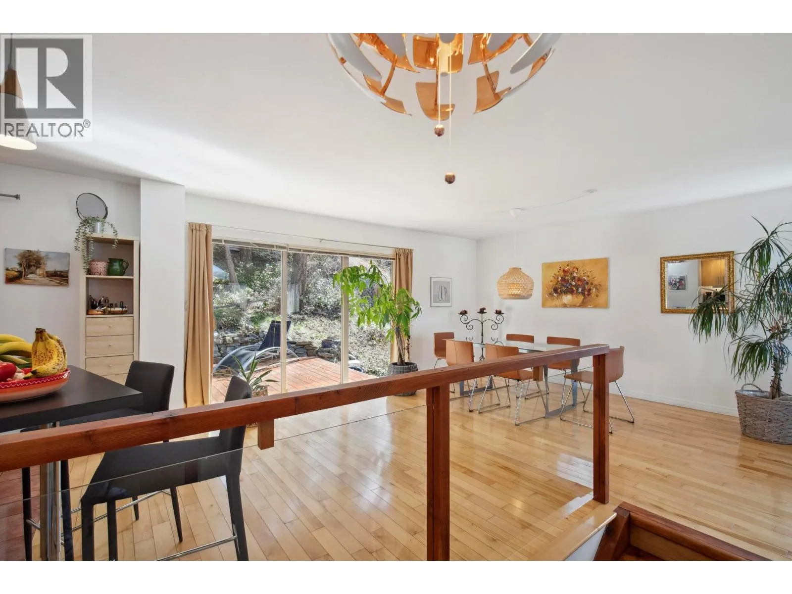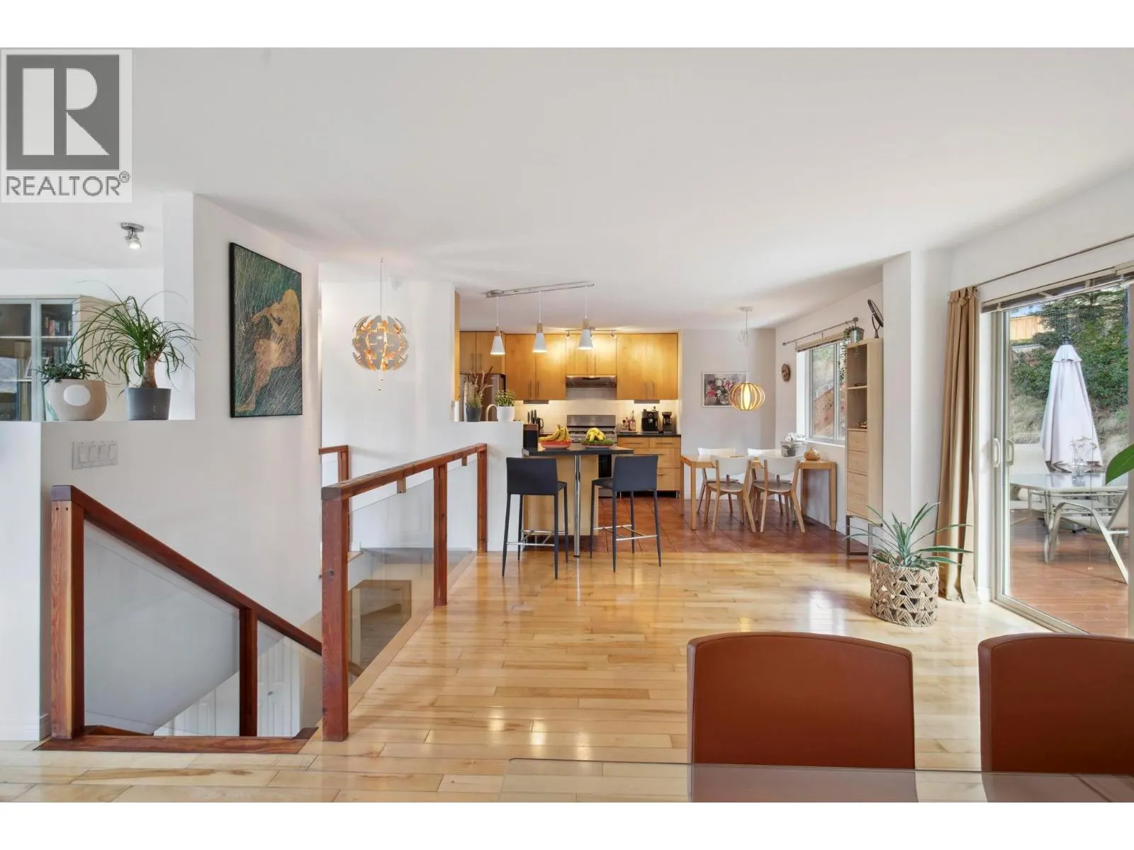 Located in the prestigious northern part of Magic Estates, this architecturally designed 4 bed 3 bath home offers gorgeous views of Okanagan Lake and the mountains. Designed to maximize natural light, it features oversized windows on all sides, bathing every room in daylight and offering stunning views from nearly every angle. With far more windows than a typical home, the design ensures a bright, open atmosphere throughout. Custom built with quality and longevity in mind, the home features a durable cement tile roof, offering fireproofing, exceptional thermal mass, and superior insulation for year-round comfort and energy efficiency. The spacious foyer leads to Douglas fir stairs with glass railings, opening to the upper level. Solid hardwood and ceramic tile floors provide timeless elegance. The living area boasts a cathedral ceiling, a gas stove on a stone feature wall, and panoramic lake and mountain views. A 180 sq. ft. covered balcony is perfect for relaxation. The kitchen offers ample counters, a gas range, and custom-built cabinetry for style and functionality. The dining room opens to a red cedar deck and tranquil low maintenance yard with mature trees. The lower level includes a bright office or studio with large windows, a spacious gym that can double as a theater, music room, or flex space, a 4th bed, a 3rd bath, and laundry. Offered for sale for the first time, this home reflects exceptional care and attention to detail, with easy access to Knox Mountain Park. (id:27476)